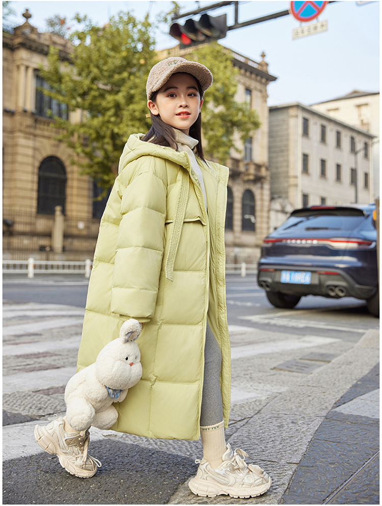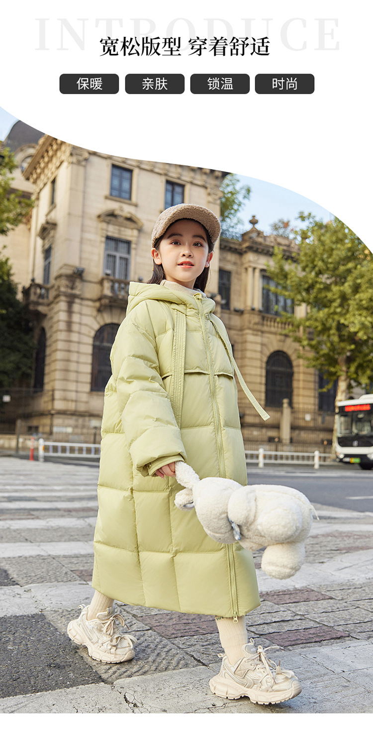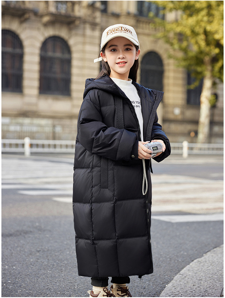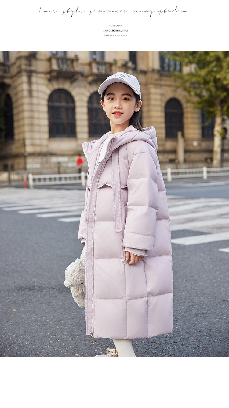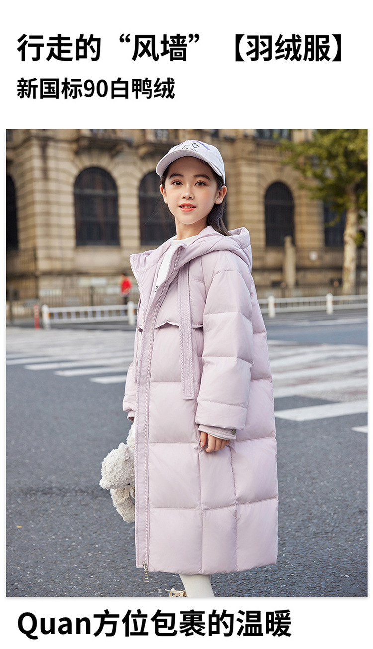 2024 осень и зима новый детский пуховик для девочек средней и длинной белой утки пух для девочек с капюшоном