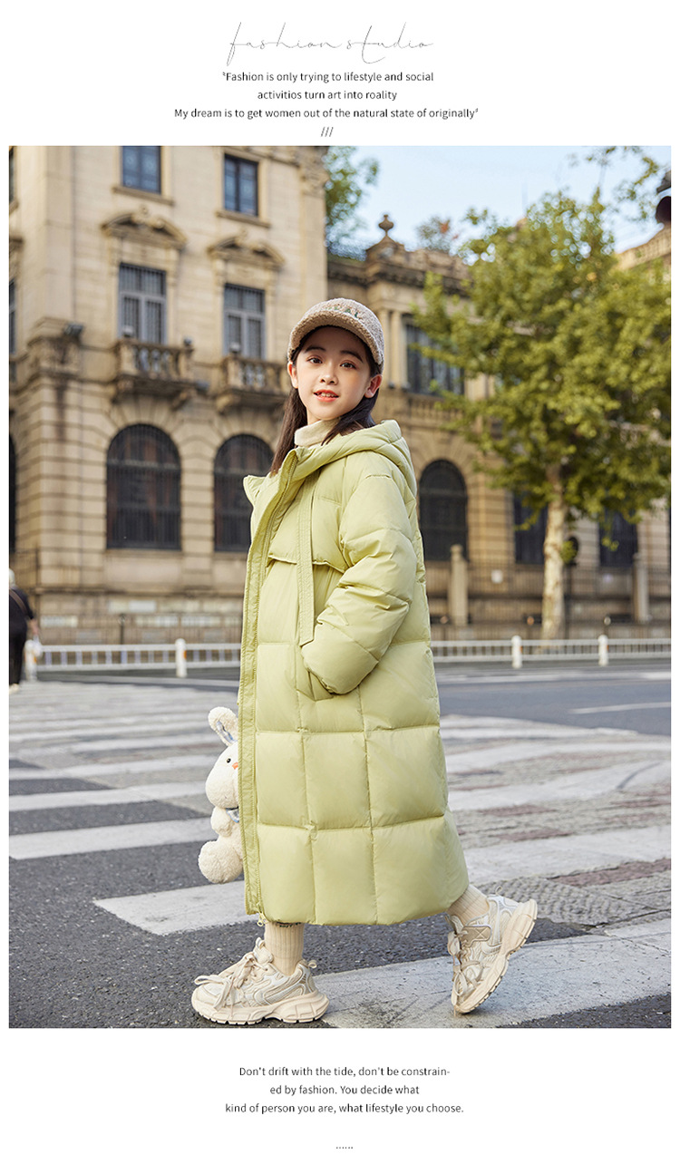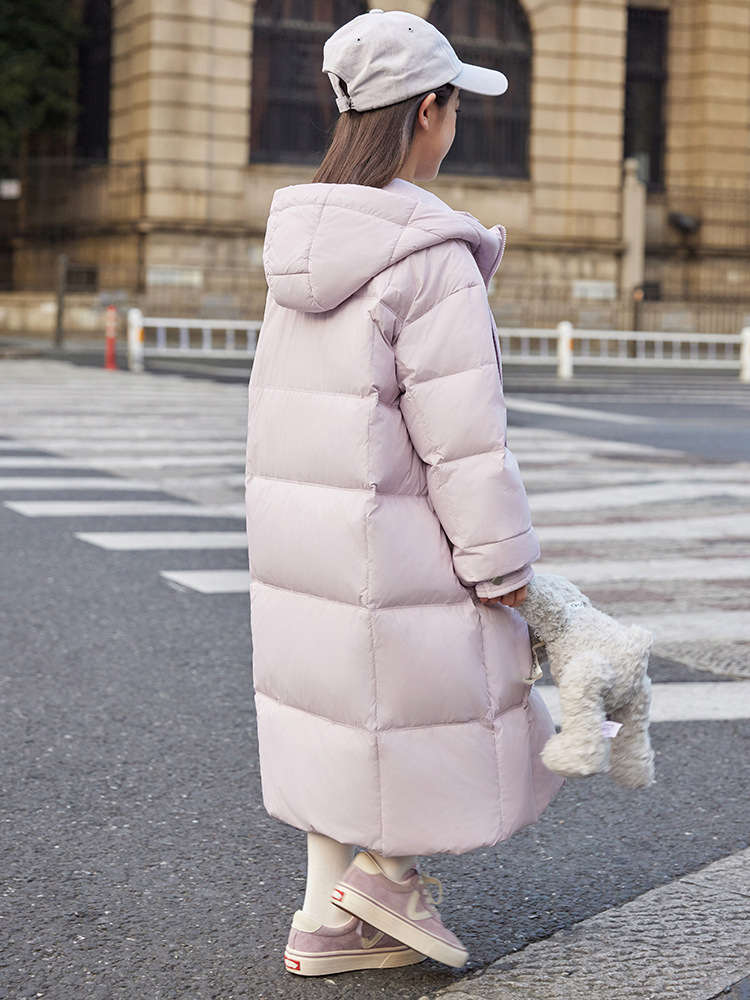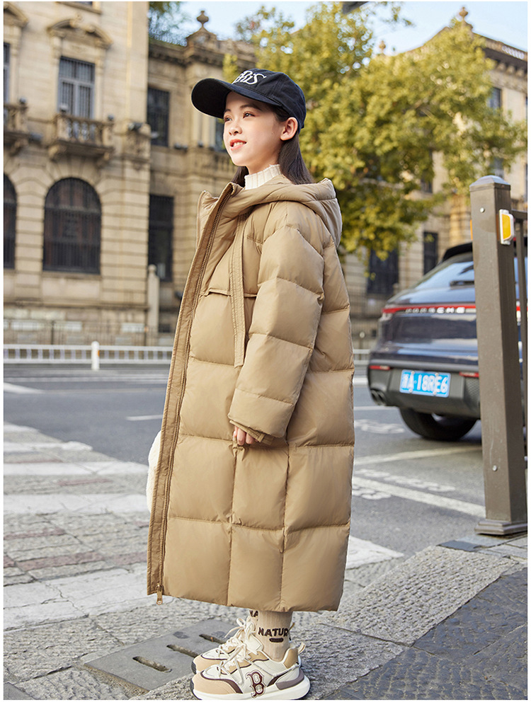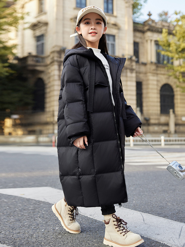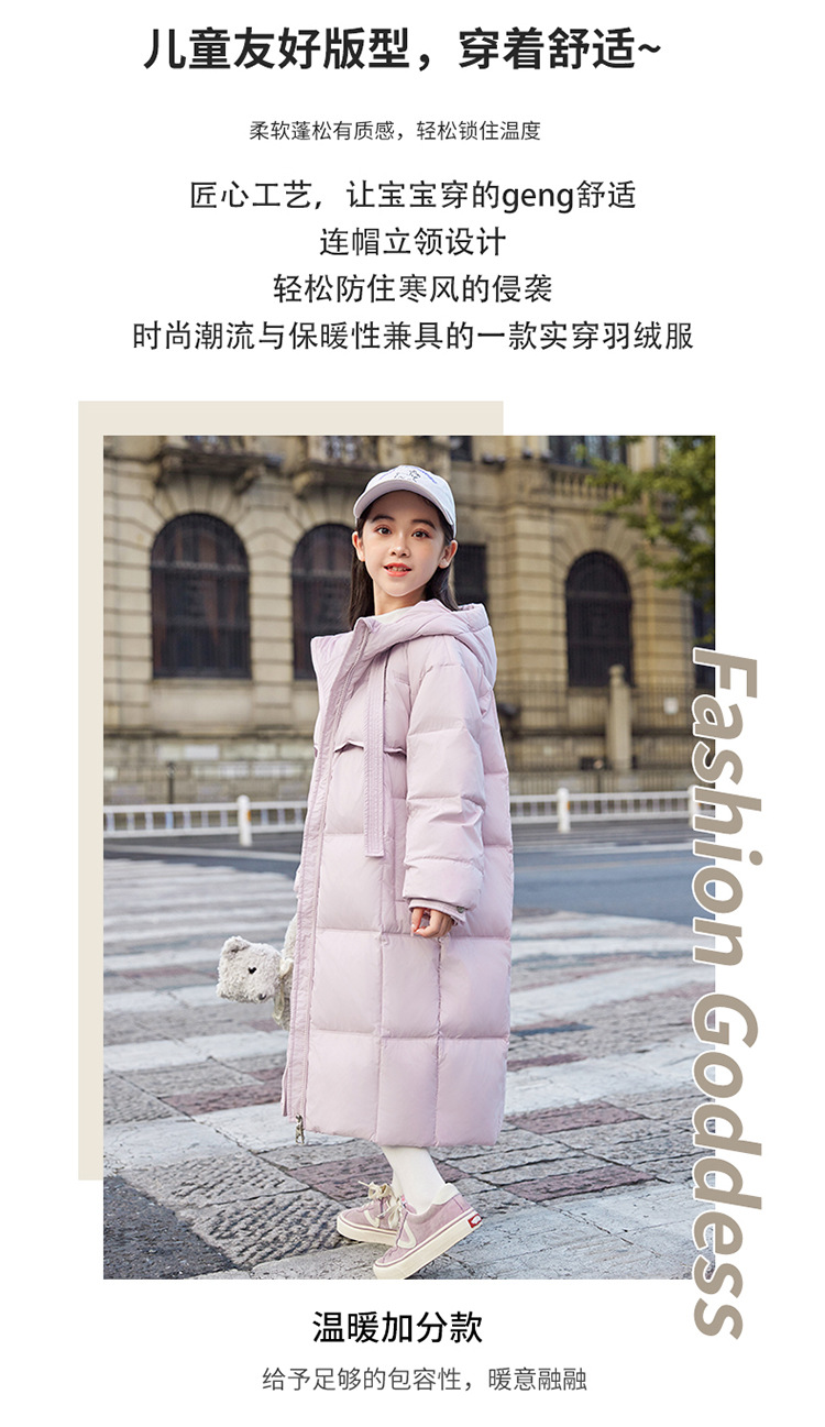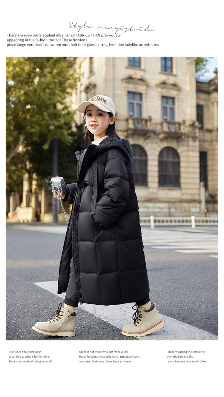 2024 осень и зима новый детский пуховик для девочек средней и длинной белой утки пух для девочек с капюшоном