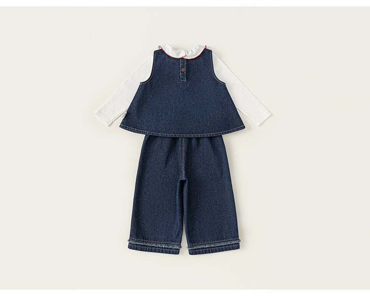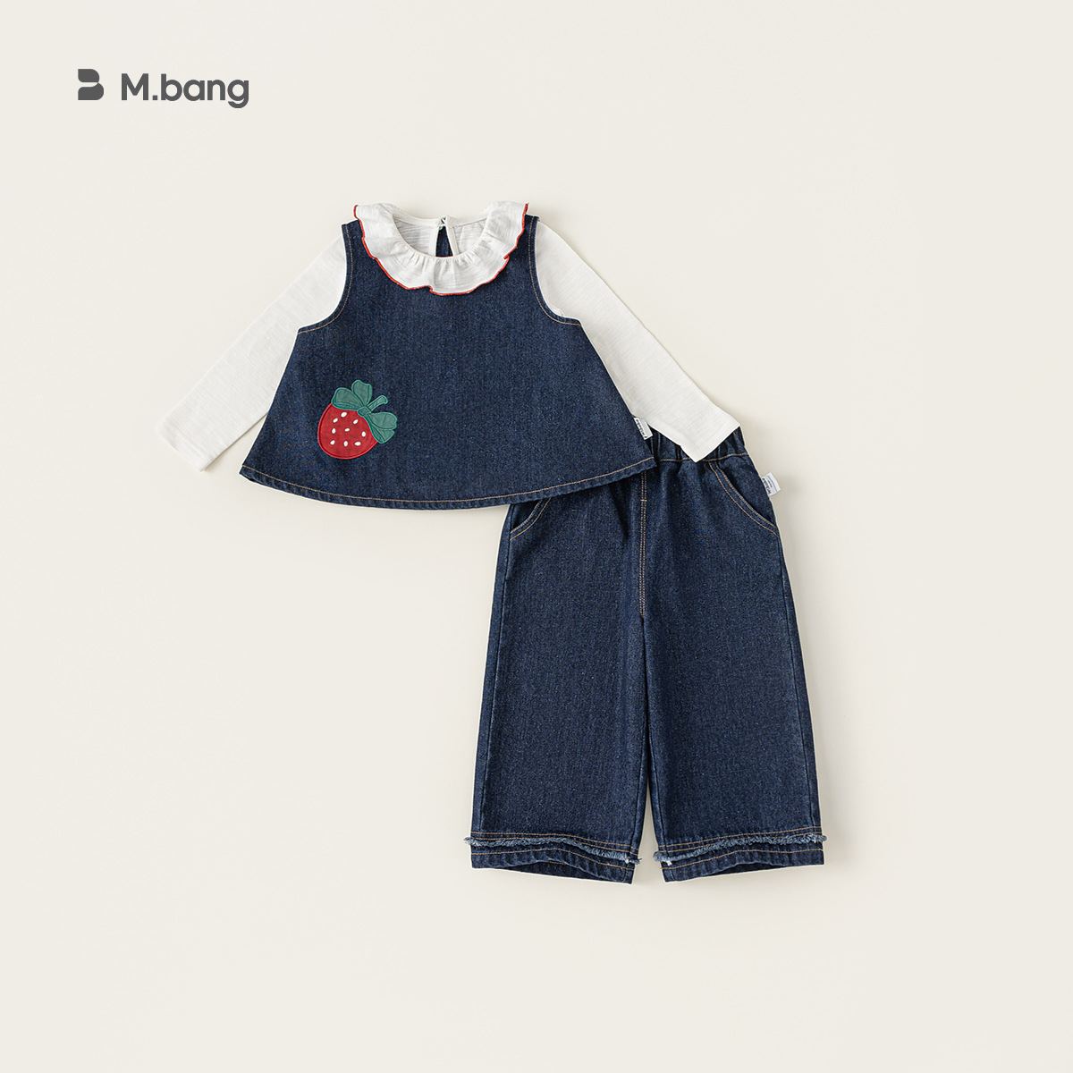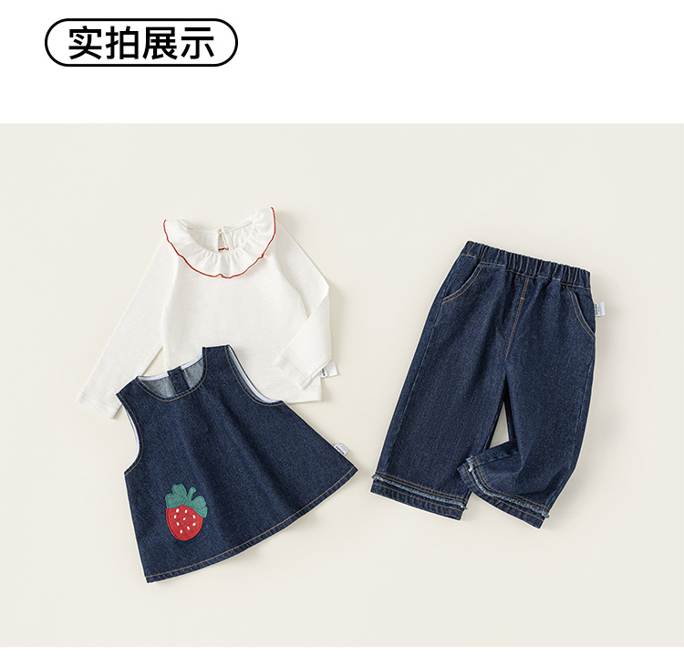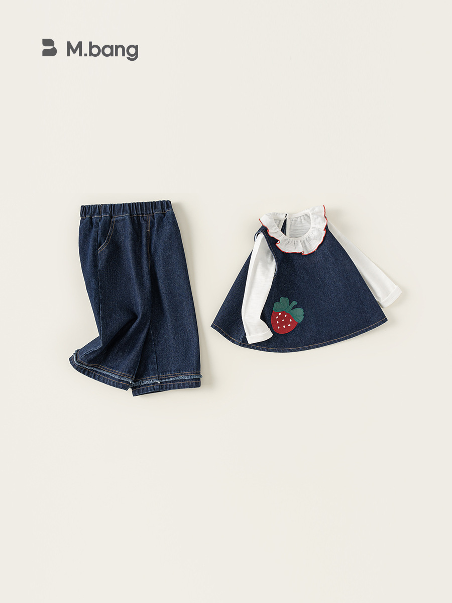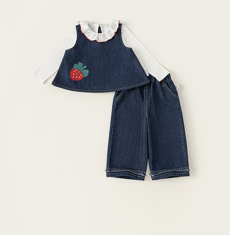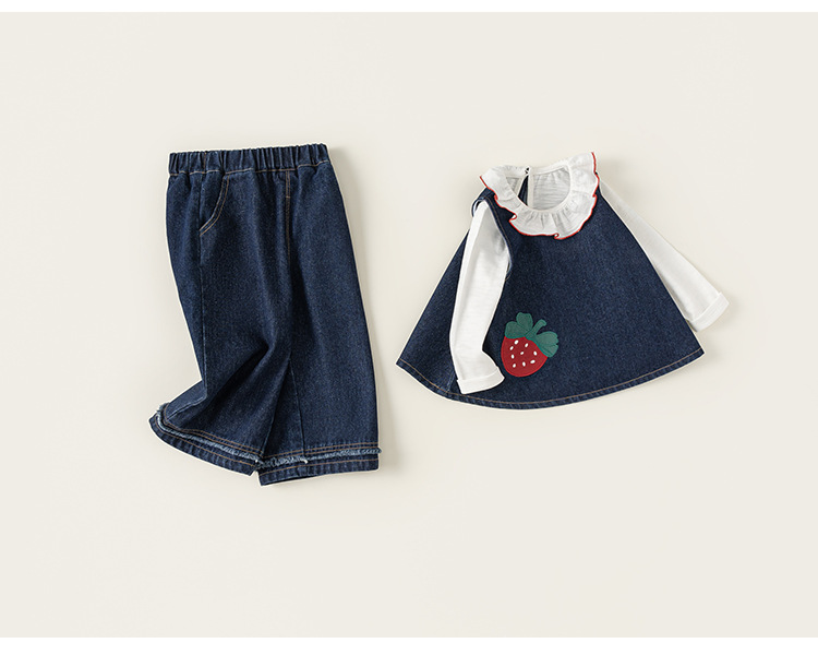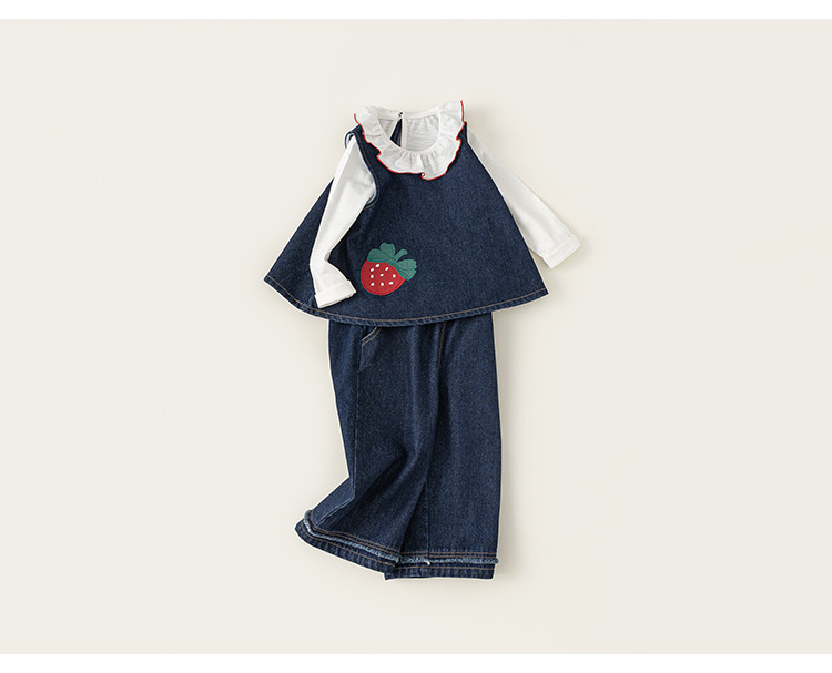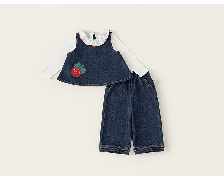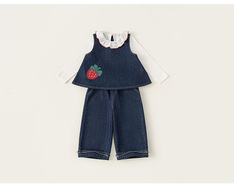 Детский костюм Bangxuan Sweet 2025 осень, джемпер с клубничным принтом, рубашка с воротником-стойкой, широкие брюки, комплект из трех предметов