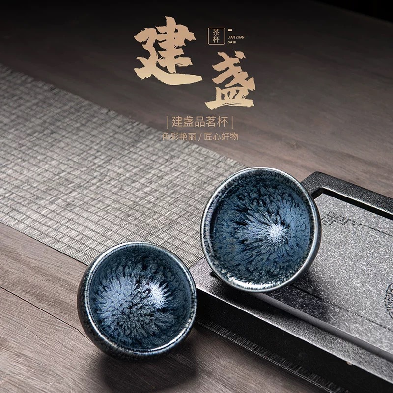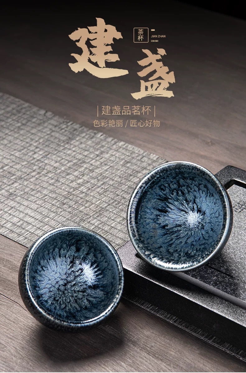 Чашка для чая Jianyang Jianzhan, оригинальная минеральная глазурь, бытовой комплект для медитации, сто цветов, синий единорог, одна чашка, оптовая продажа, ручная работа