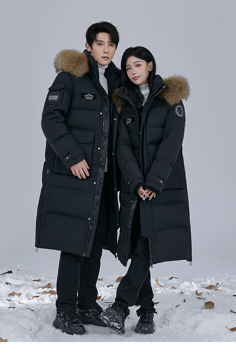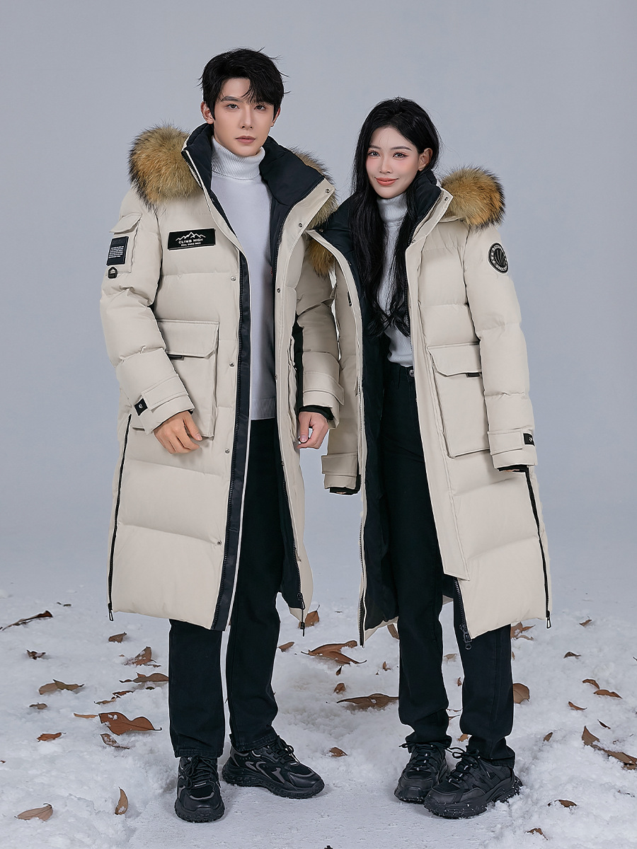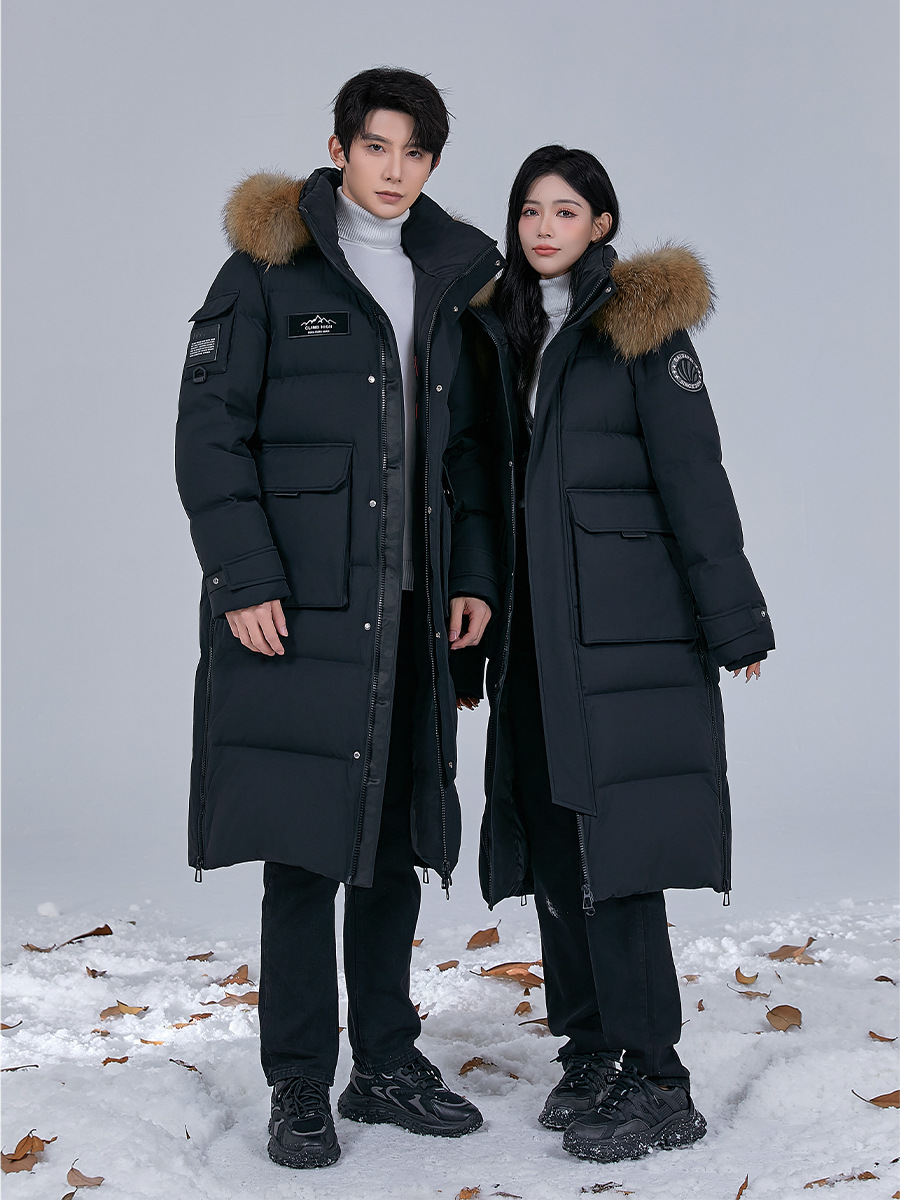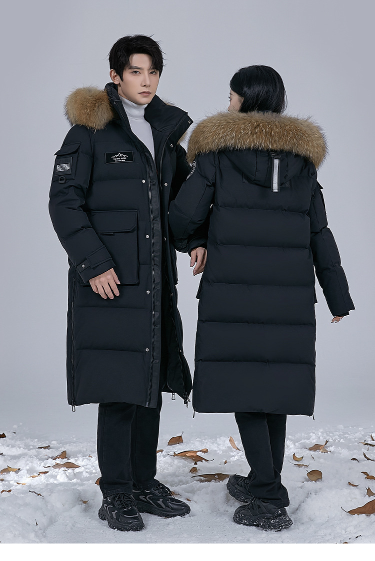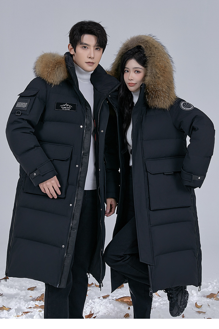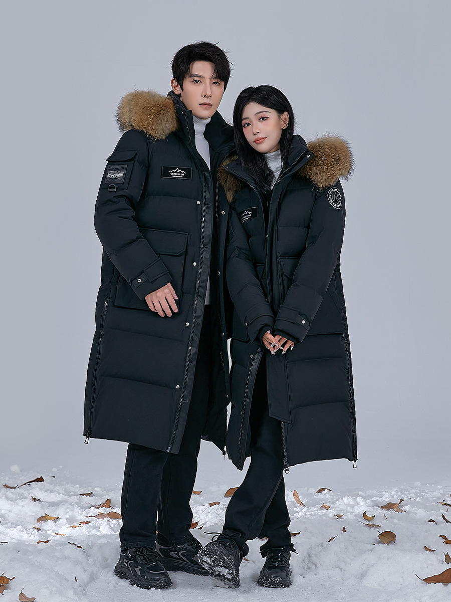 Новая серия 2025: Утепленный пуховик для экстремально холодной погоды, удлиненный, выше колена, для мужчин и женщин, с воротником из меха енота, для путешествий в северо-восточную часть страны.