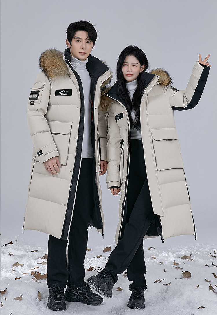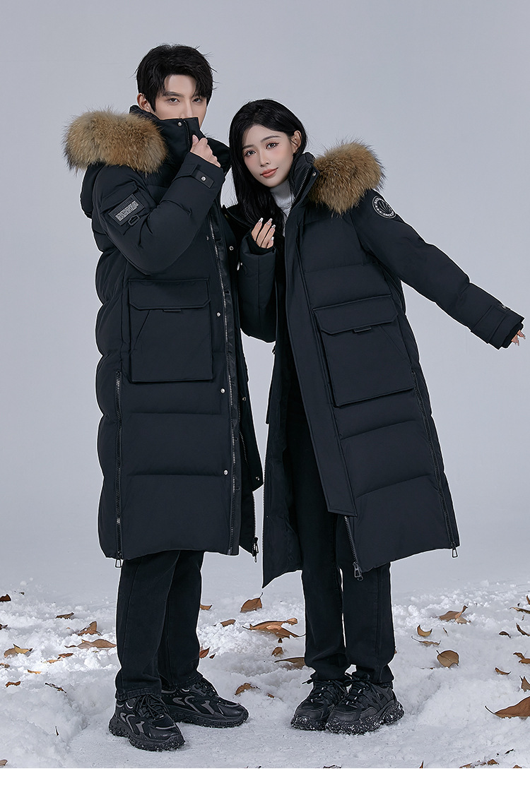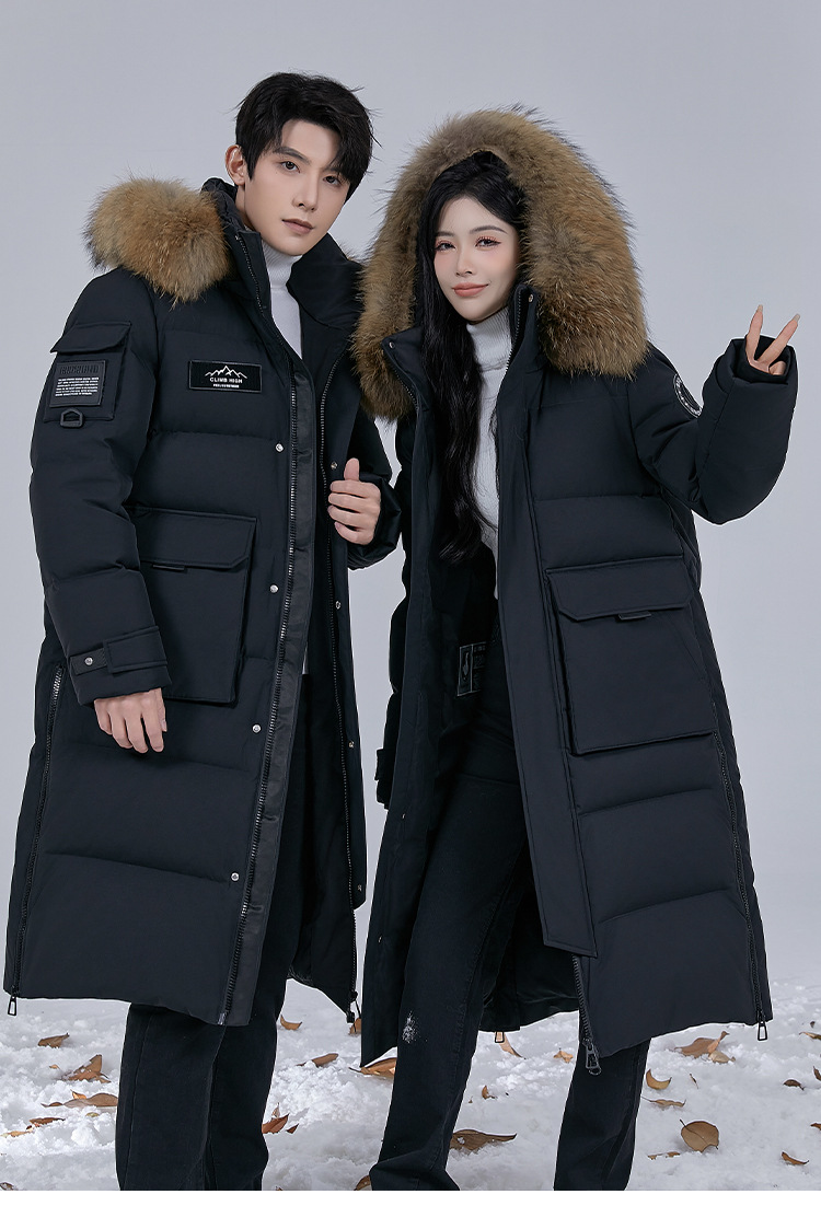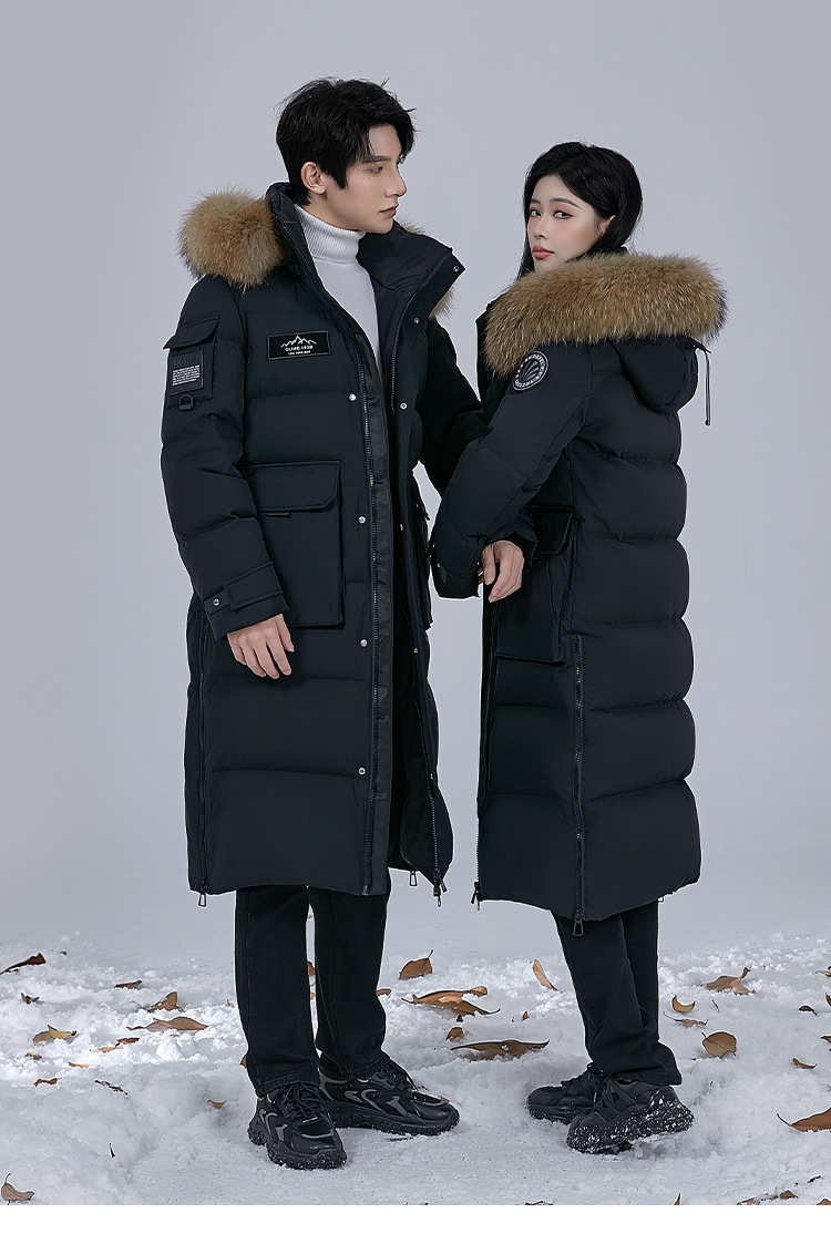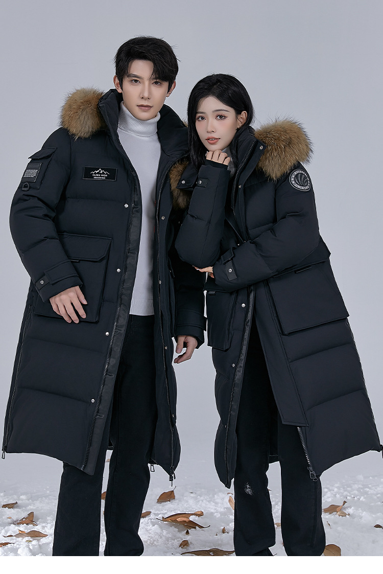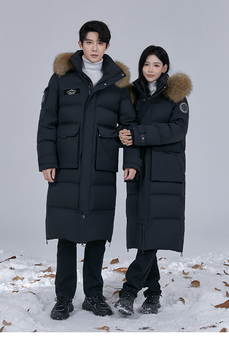 Новая серия 2025: Утепленный пуховик для экстремально холодной погоды, удлиненный, выше колена, для мужчин и женщин, с воротником из меха енота, для путешествий в северо-восточную часть страны.