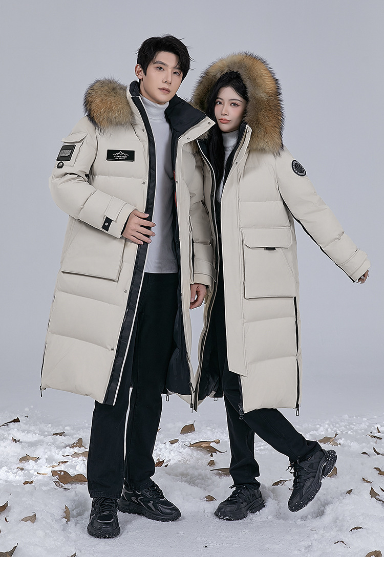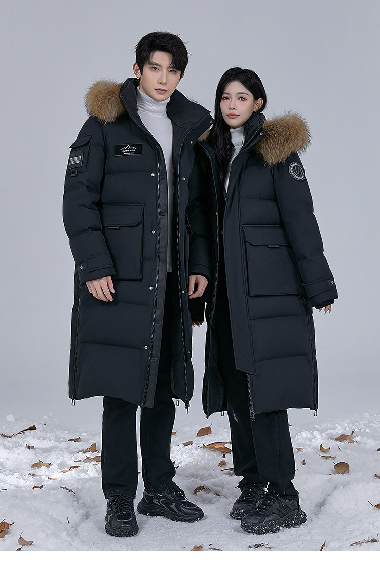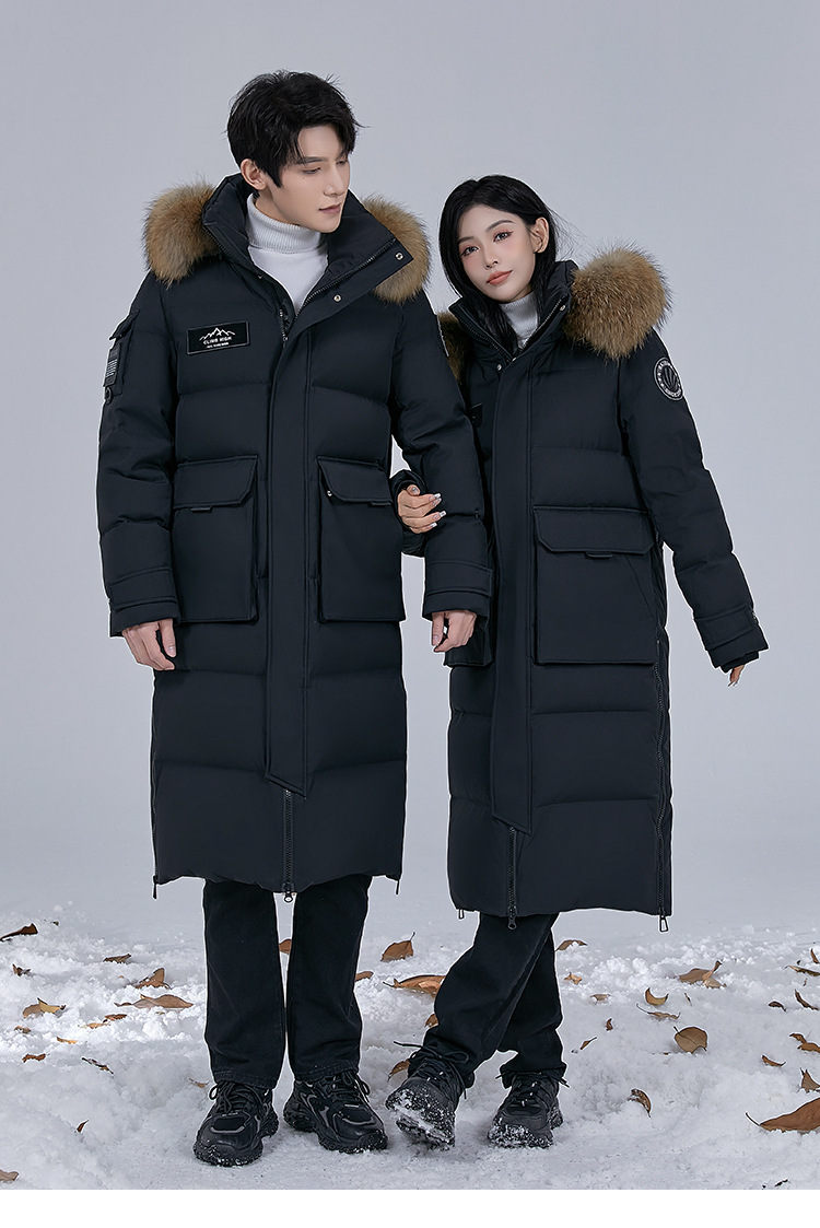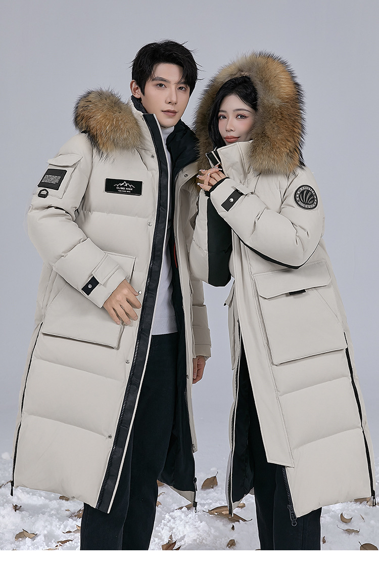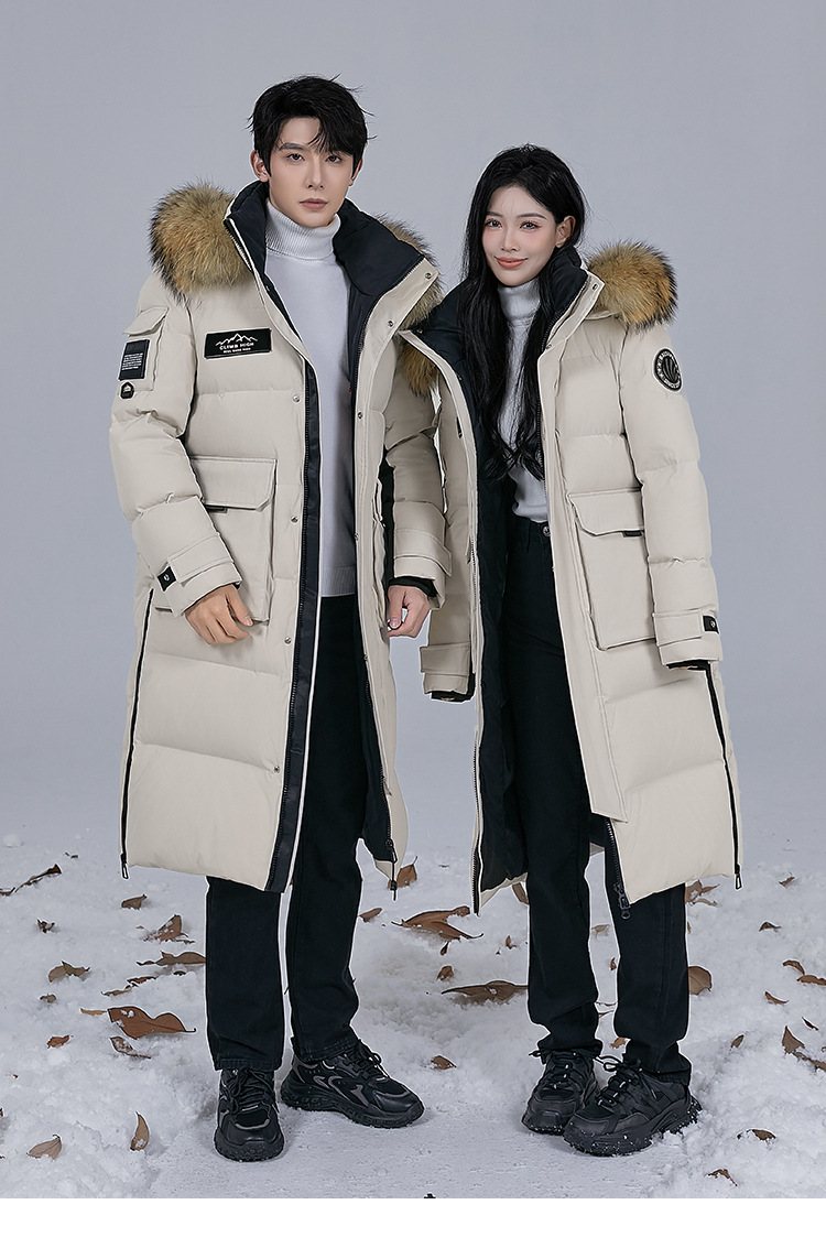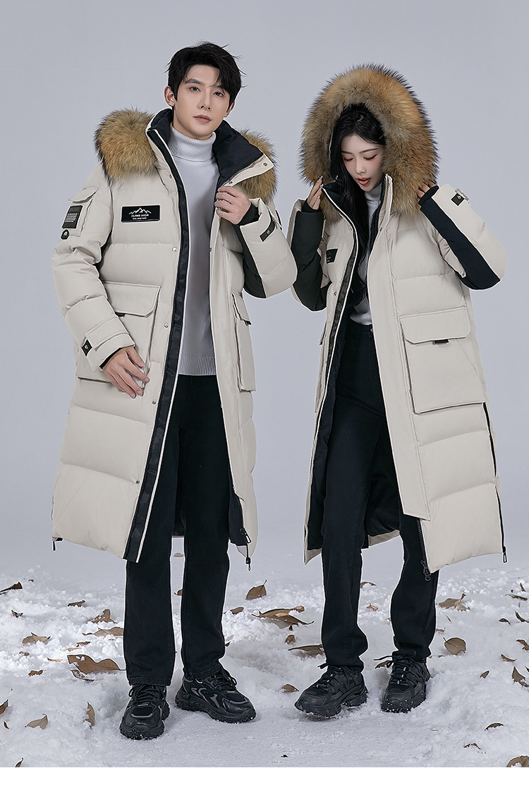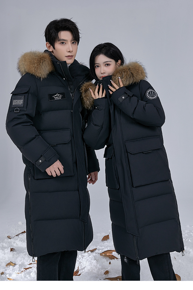 Новая серия 2025: Утепленный пуховик для экстремально холодной погоды, удлиненный, выше колена, для мужчин и женщин, с воротником из меха енота, для путешествий в северо-восточную часть страны.