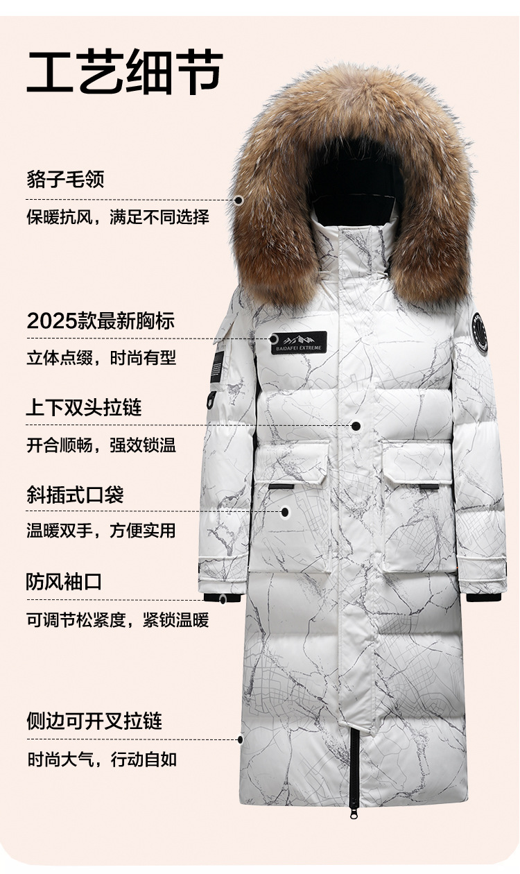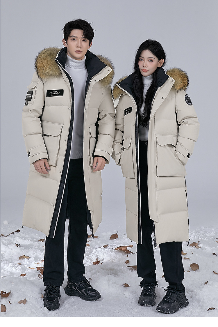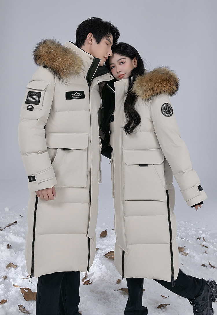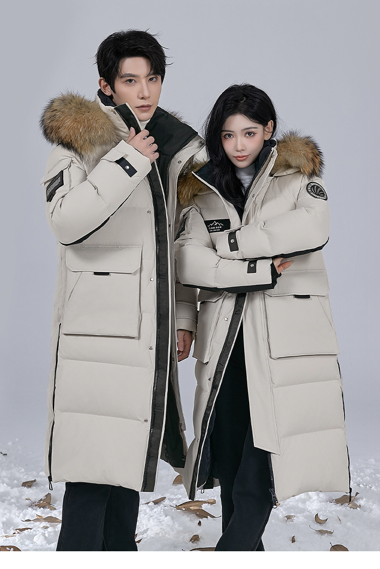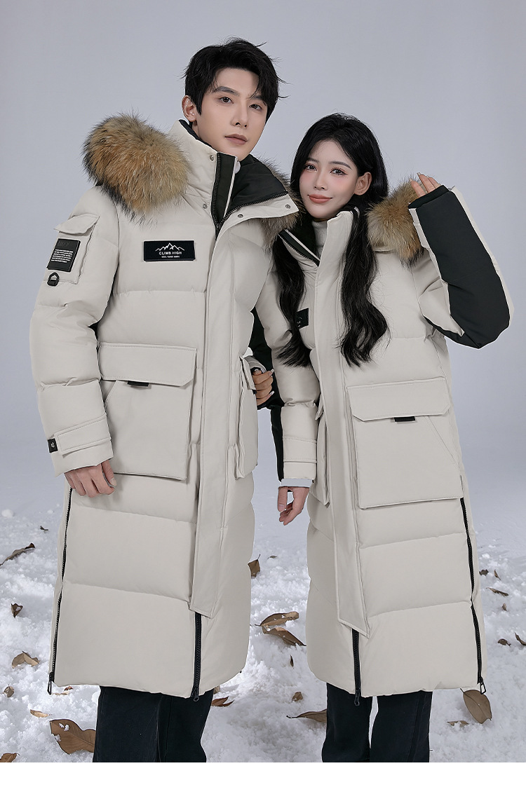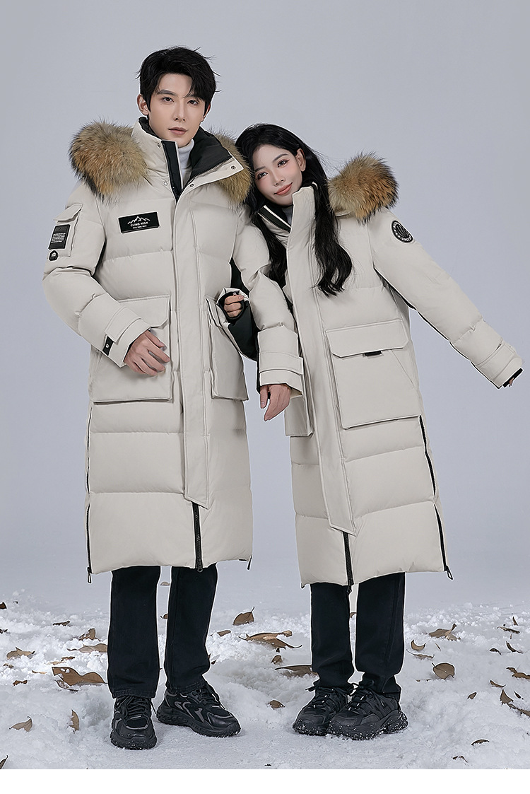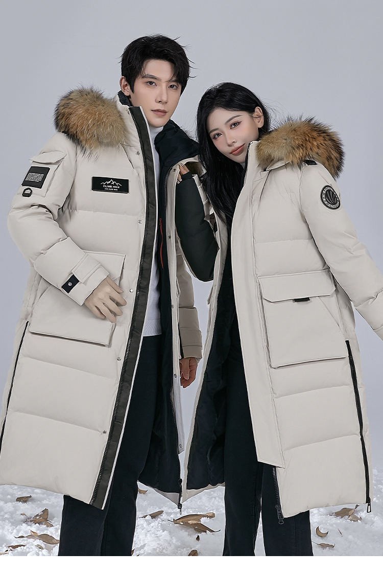 Новая серия 2025: Утепленный пуховик для экстремально холодной погоды, удлиненный, выше колена, для мужчин и женщин, с воротником из меха енота, для путешествий в северо-восточную часть страны.