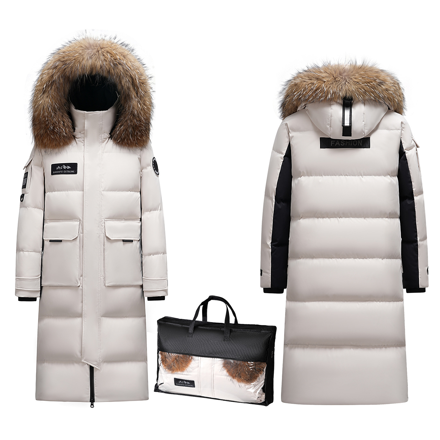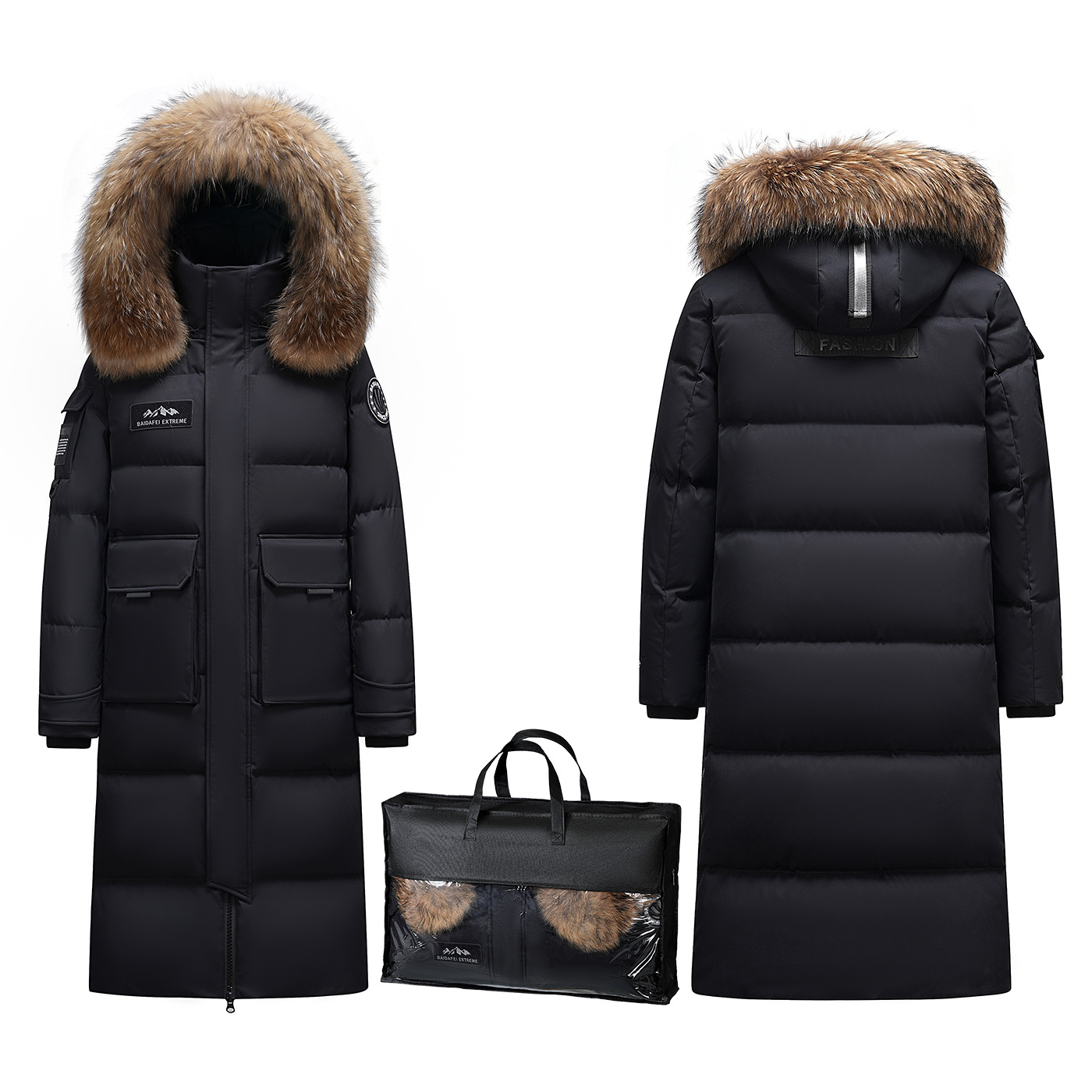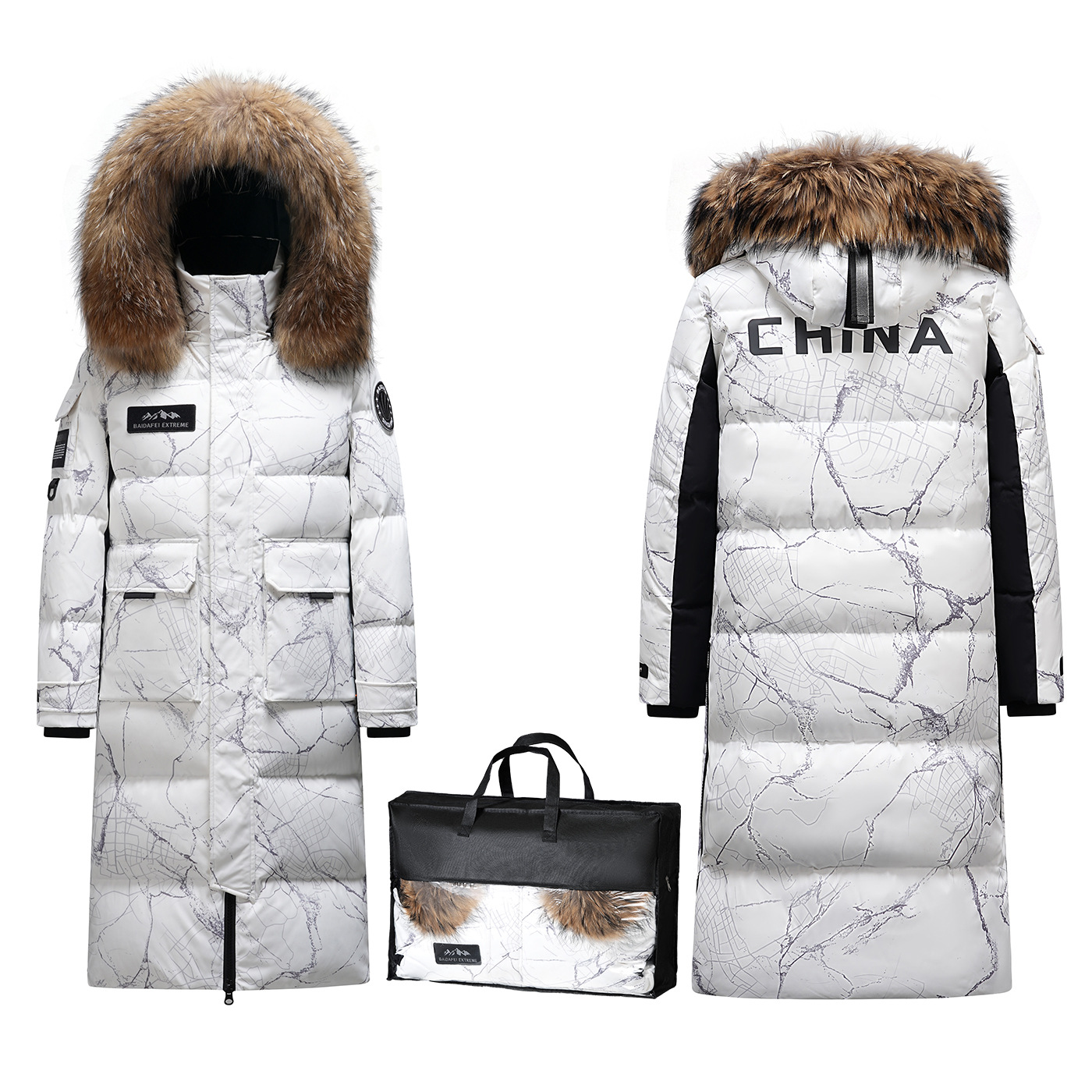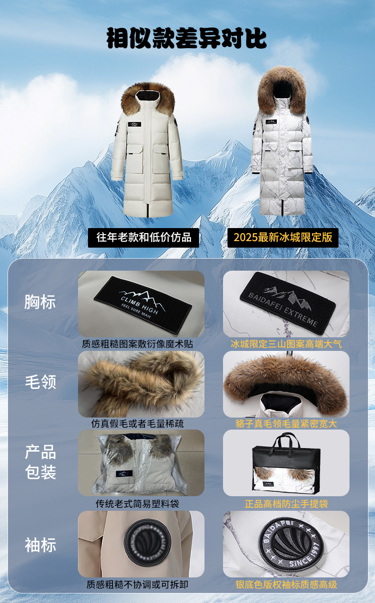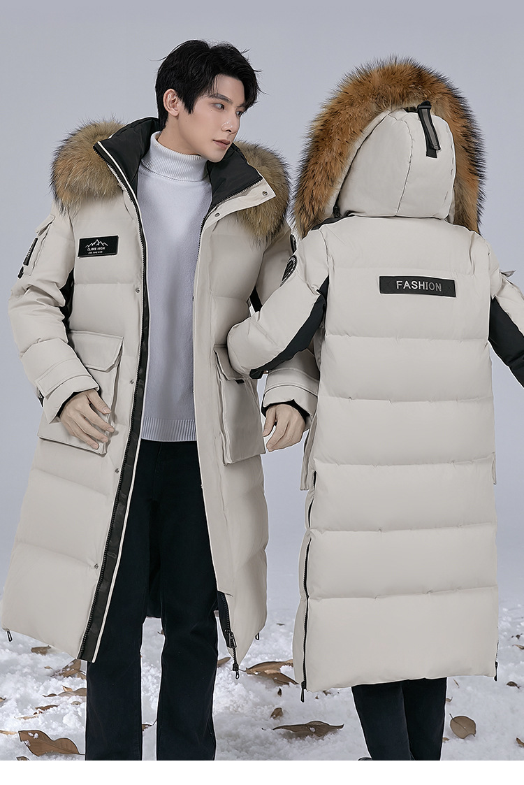 Новая серия 2025: Утепленный пуховик для экстремально холодной погоды, удлиненный, выше колена, для мужчин и женщин, с воротником из меха енота, для путешествий в северо-восточную часть страны.