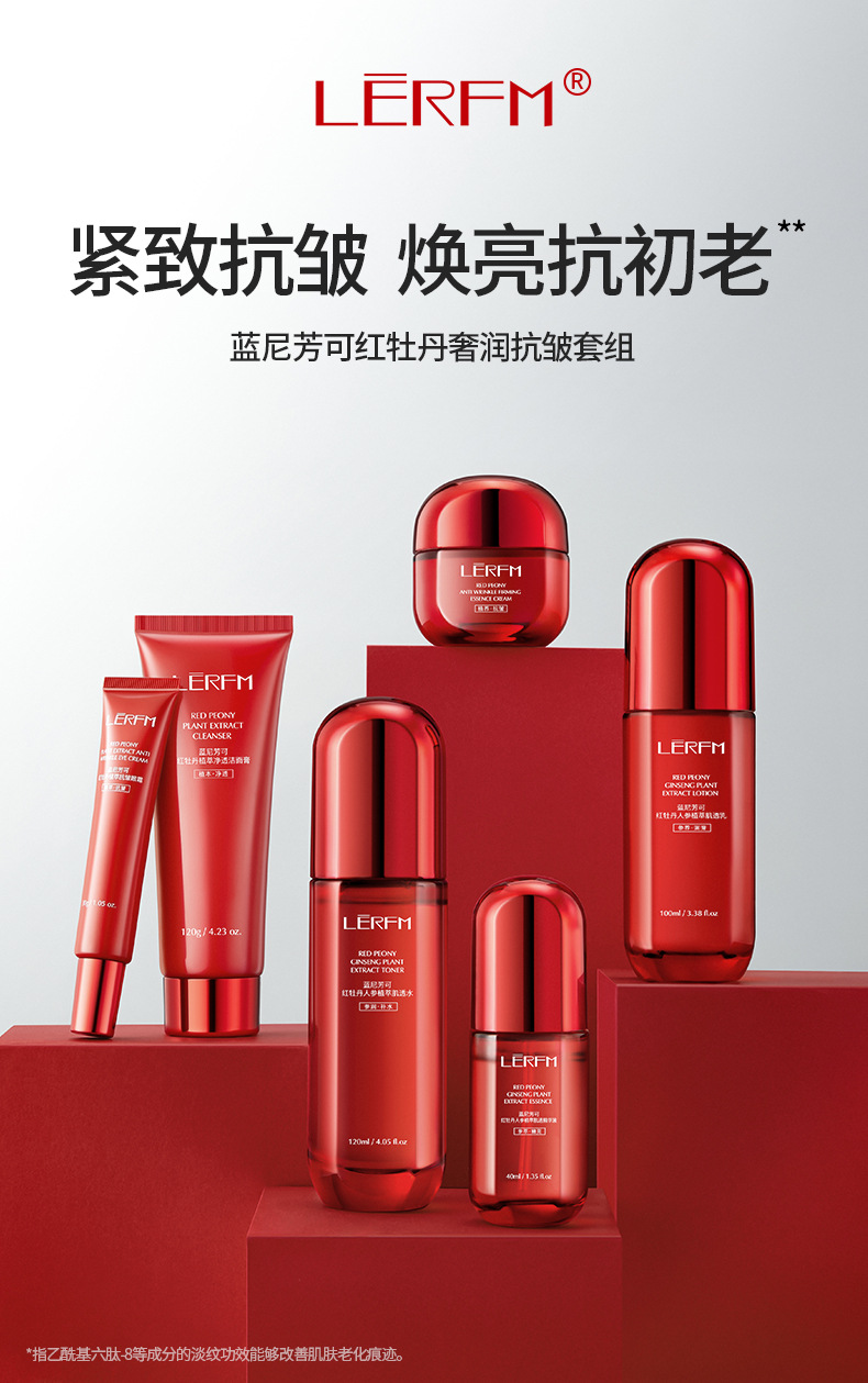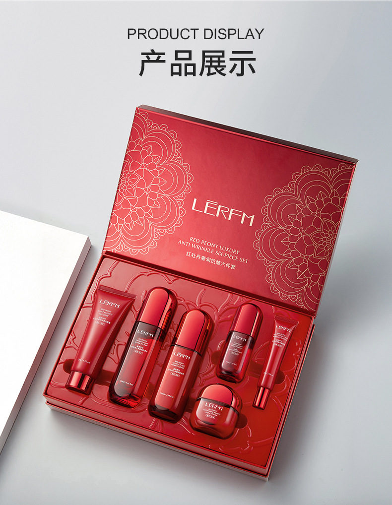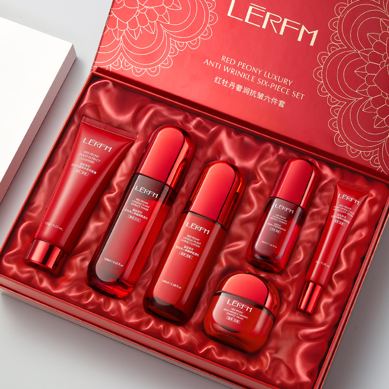 Популярный набор из шести предметов Lanifangke Red Peony Luxurious против морщин, цена контролируется на всех платформах, включая Douyin и Pinduoduo.