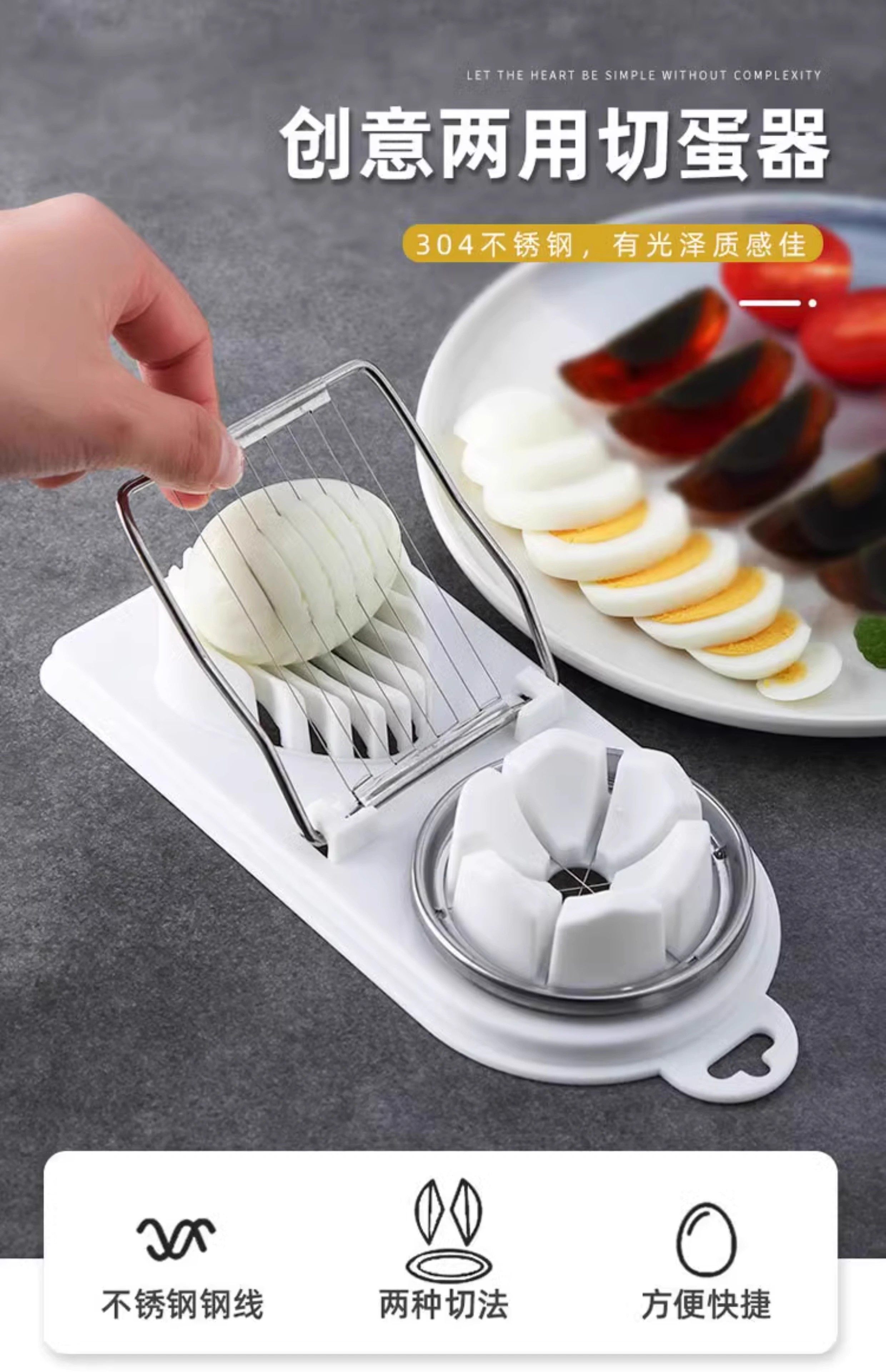 Многофункциональный яичный резчик 304 из нержавеющей стали ручной сосновый ломтик яиц для резки яиц два в одном