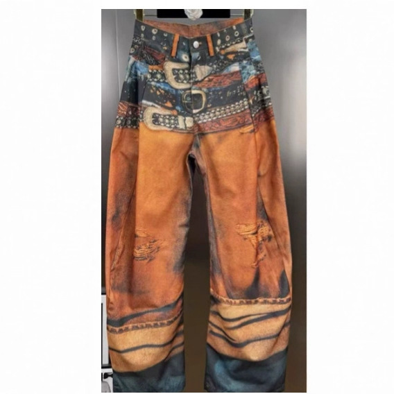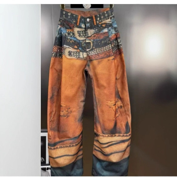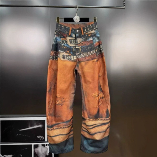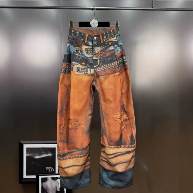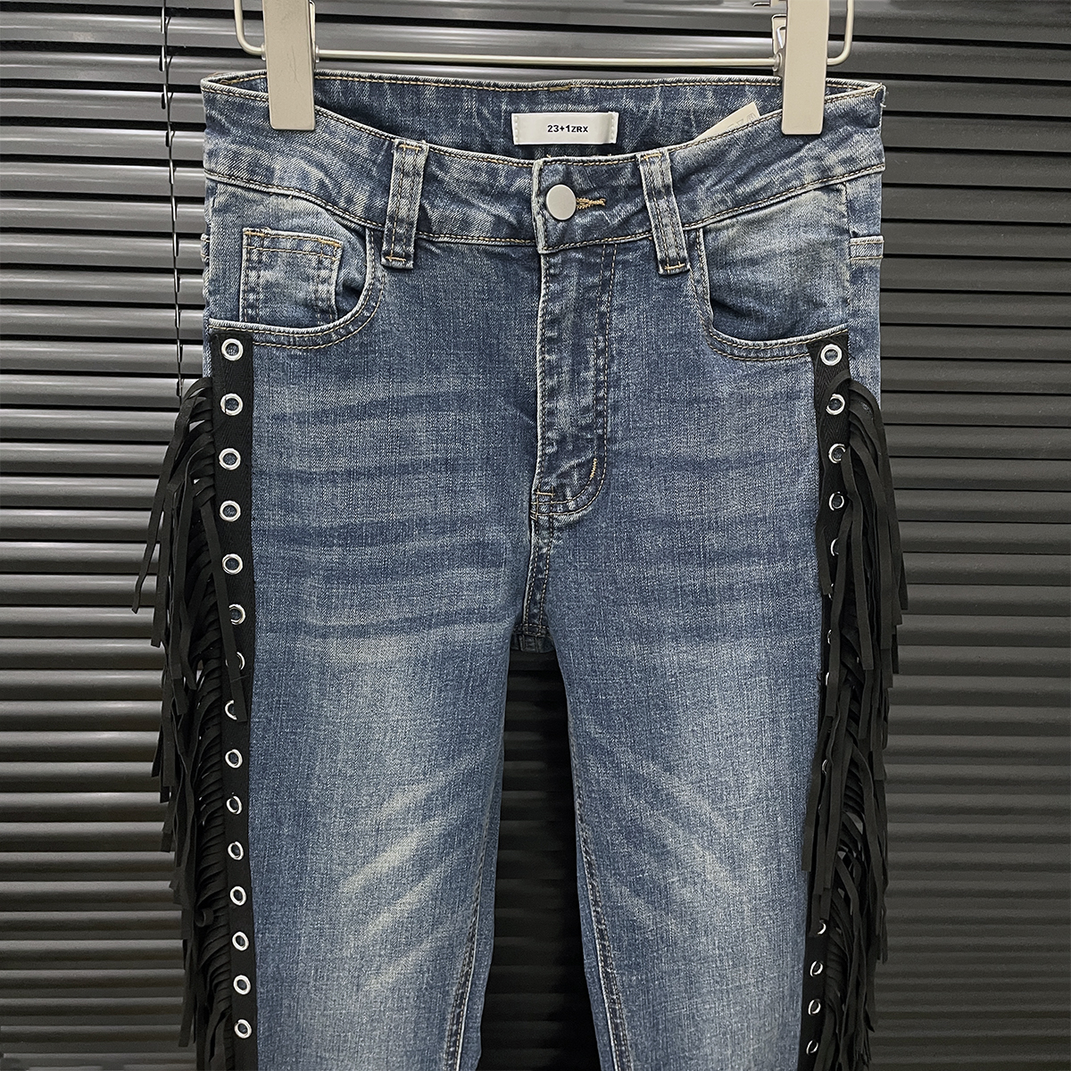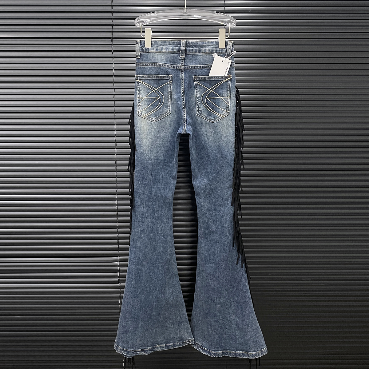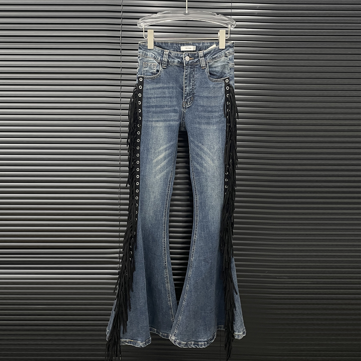 Женские джинсы с индивидуальным дизайном, асимметричные, с бахромой, расклешенные, нишевая мода, ретро, повседневные брюки