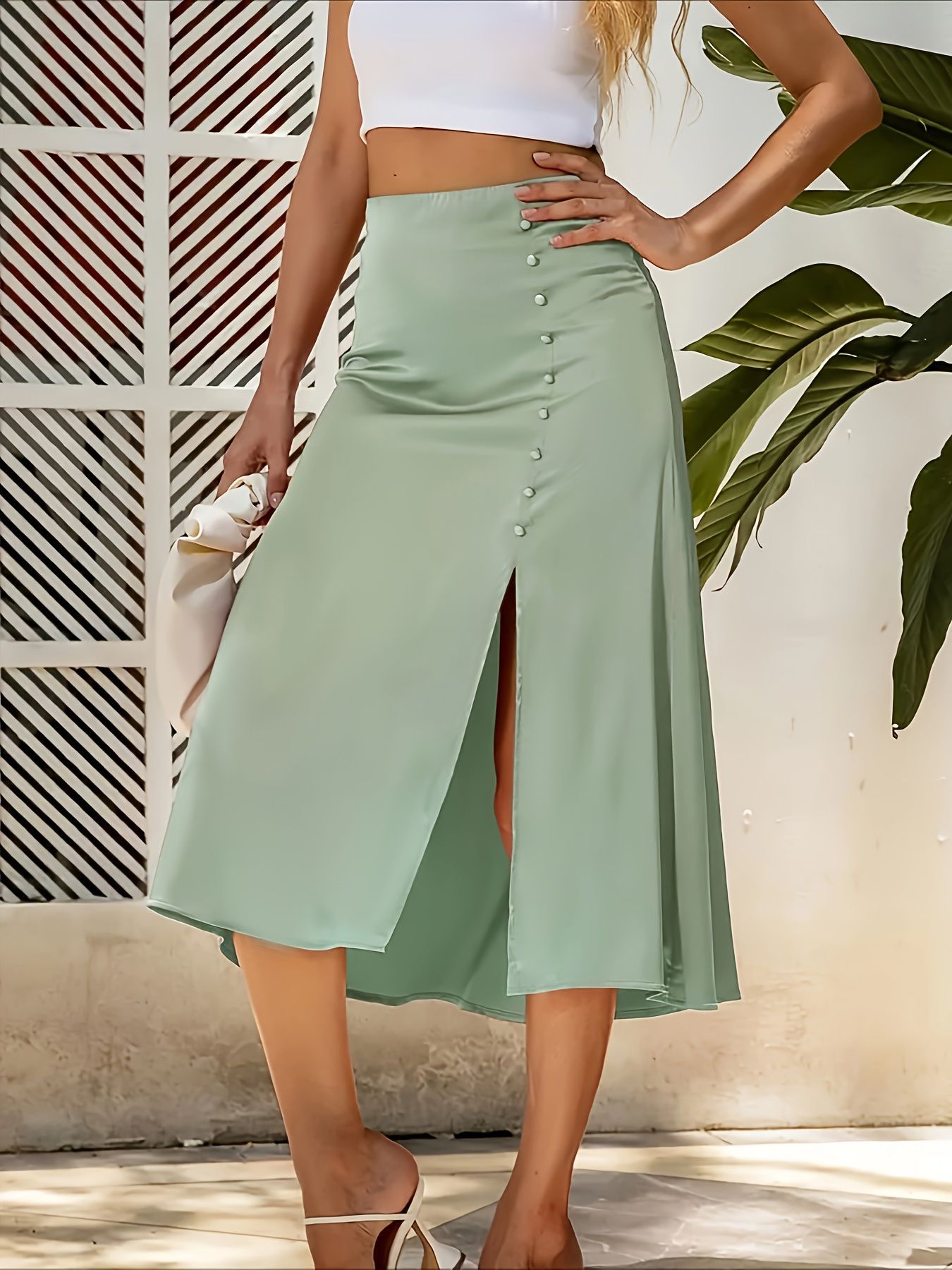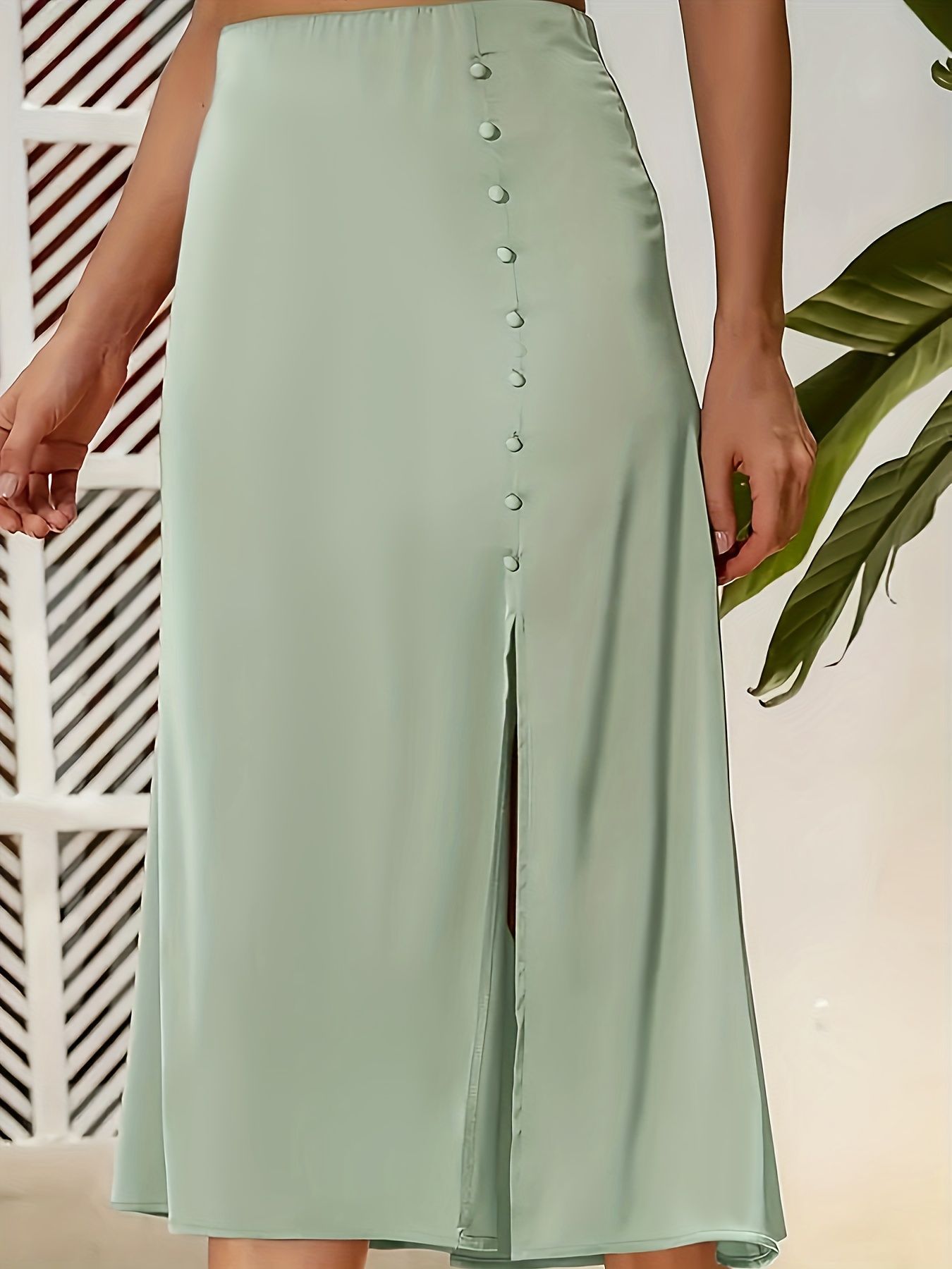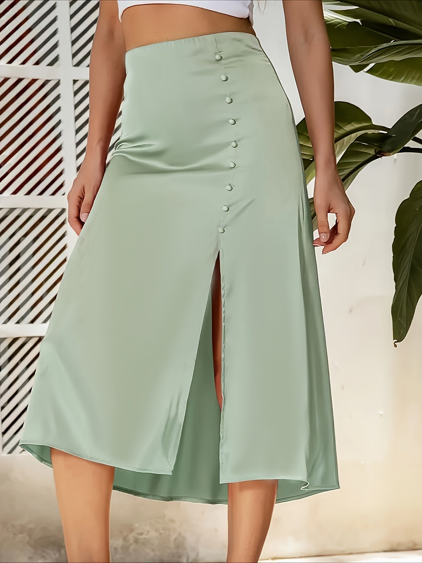 Amazon трансграничная европейская и американская внешняя торговля летом сплошной цвет простой повседневный темперамент с высокой талией с открытой вилкой женская юбка