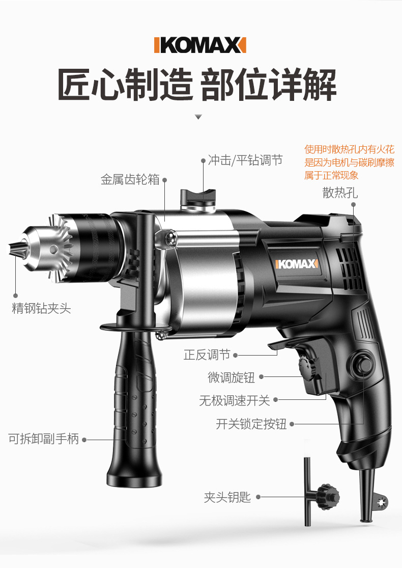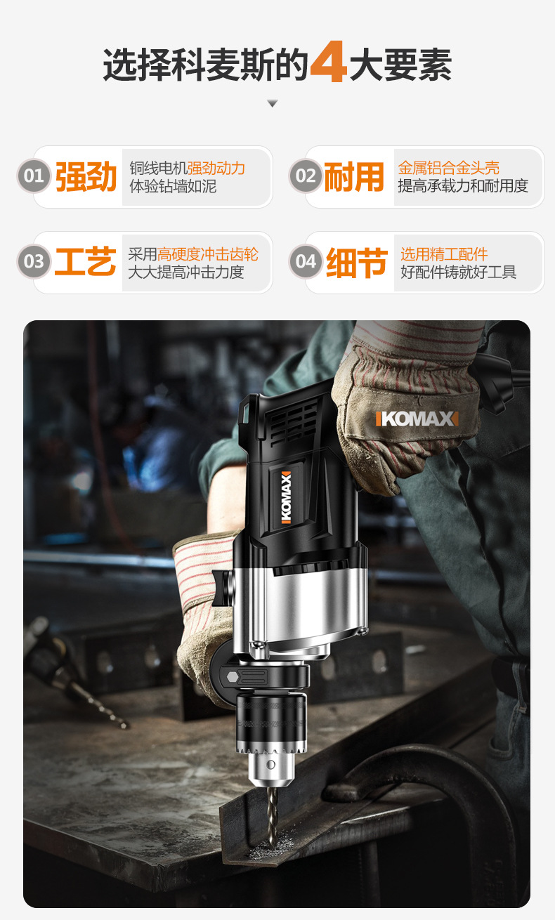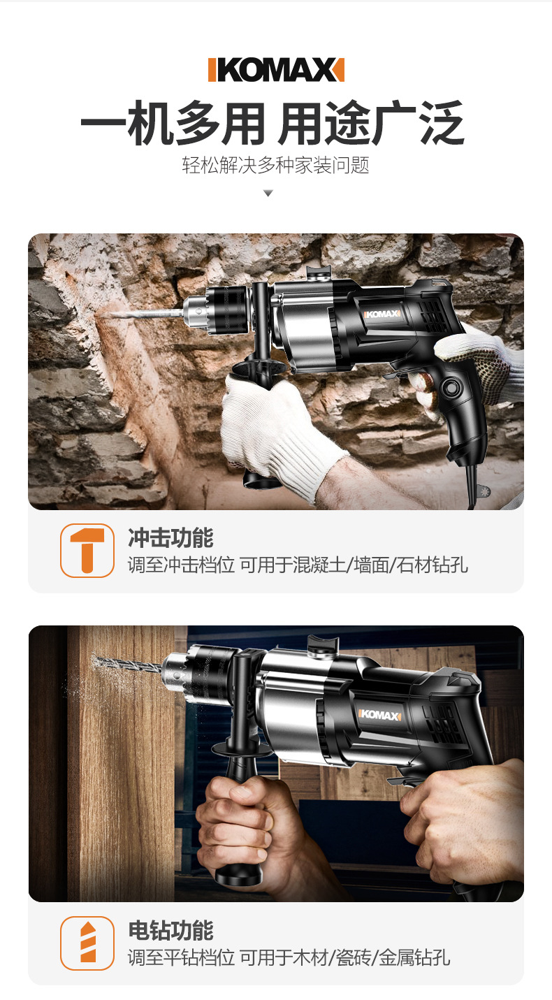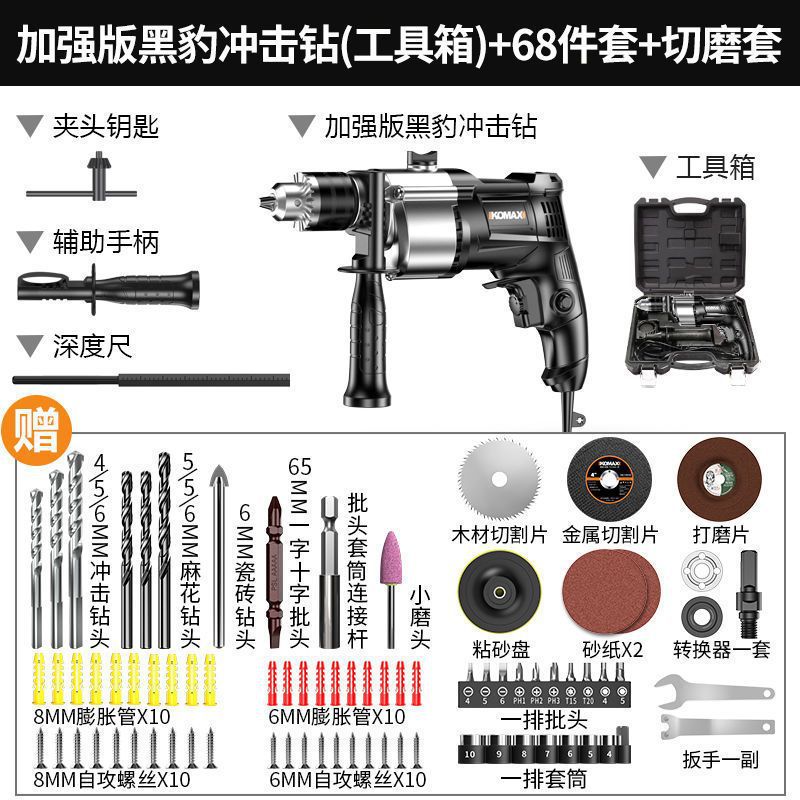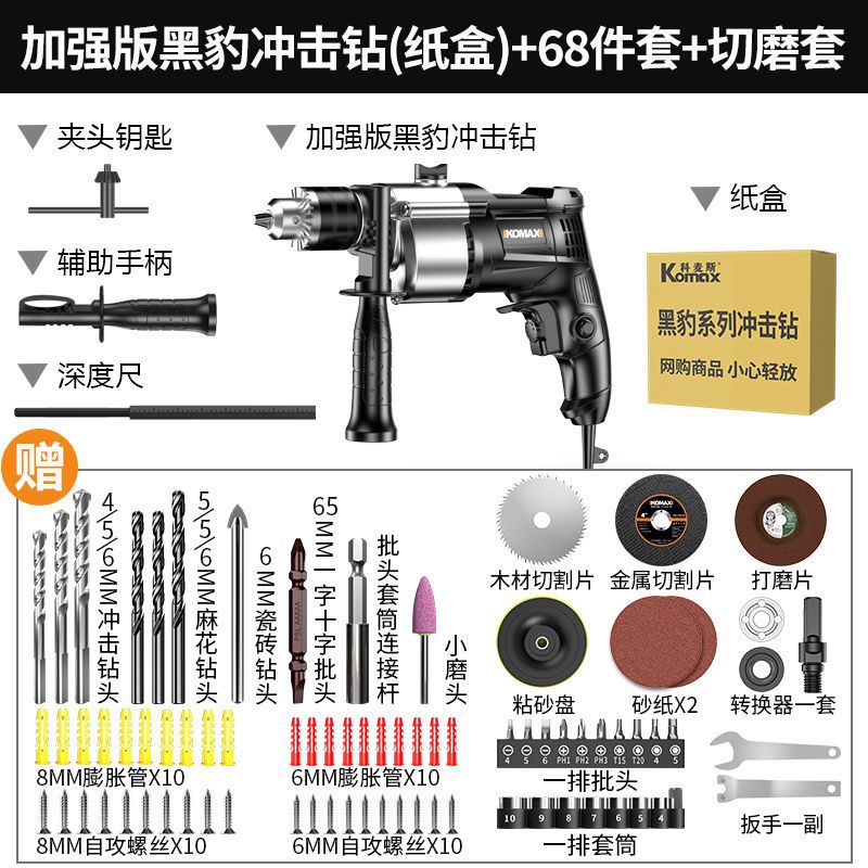 Ударная дрель, многофункциональная ручная электрическая дрель, проводная электрическая отвертка для домашнего использования, пистолетная электрическая дрель 220 В, небольшой электрический молоток.