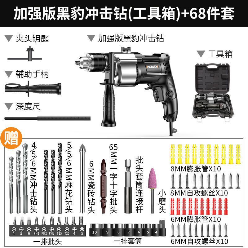 Стандартная версия ударной дрели Black Panther (бумажная коробка); Стандартная версия ударной дрели Black Panther (бумажная коробка) + набор из 68 предметов.; Стандартная версия ударной дрели Black Panther (инструментный ящик) + набор из 68 предметов.; Улучшенная версия ударной дрели Black Panther (бумажная коробка) + набор из 68 предметов.; Расширенная версия ударной дрели Black Panther (бумажная коробка) + набор из 68 предметов + шлифовальная втулка; Расширенная версия ударной дрели Black Panther (инструментная коробка) + набор из 68 предметов.; Усовершенствованная версия ударной дрели Black Panther (коробка для инструментов) + набор из 68 предметов + шлифовальная втулка