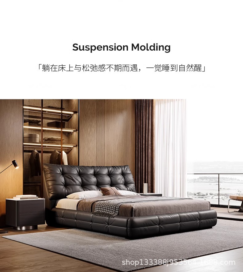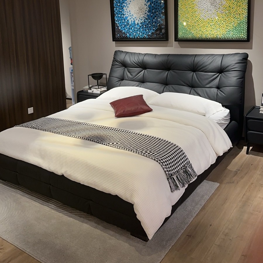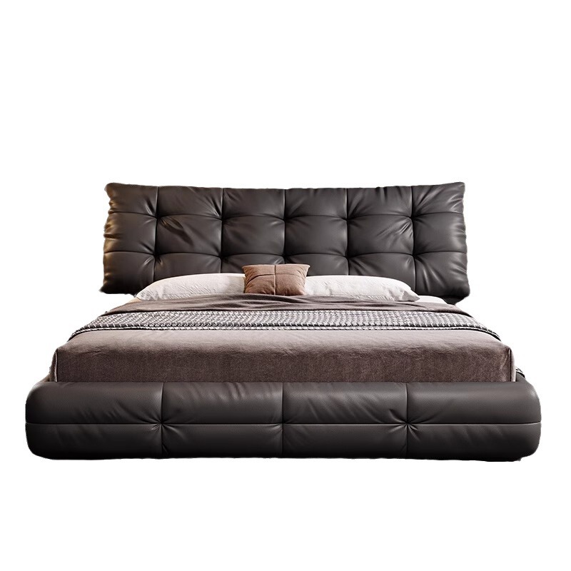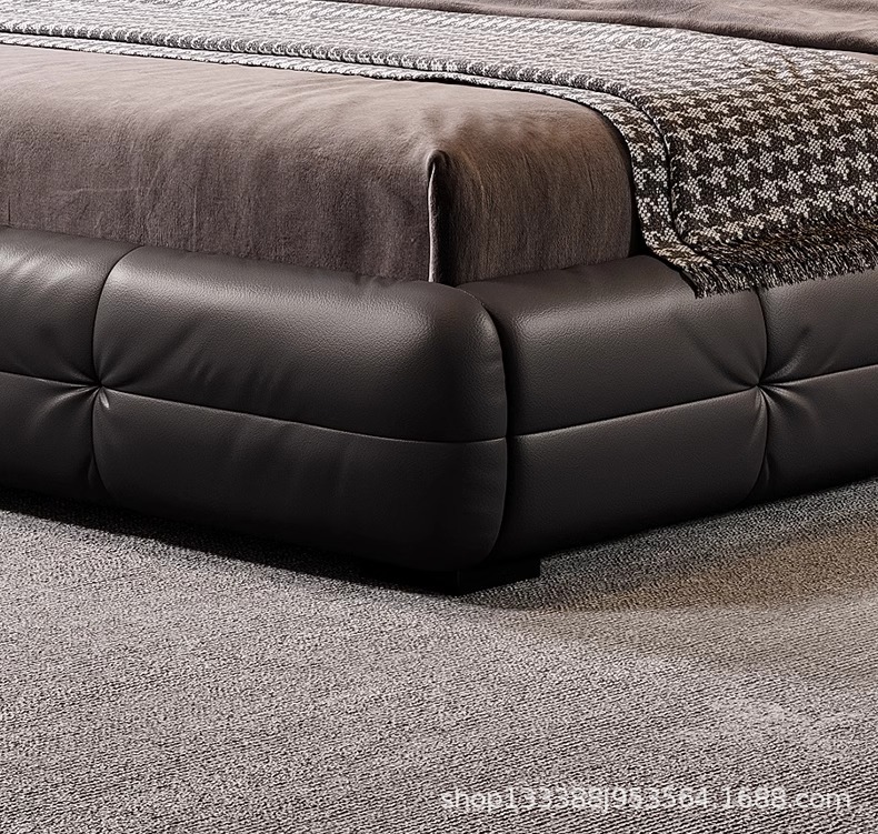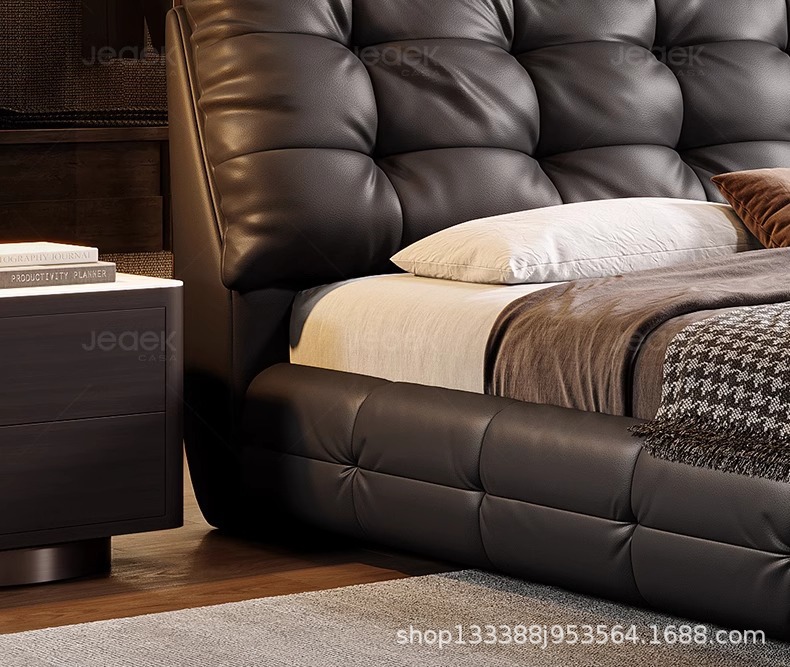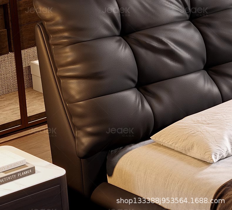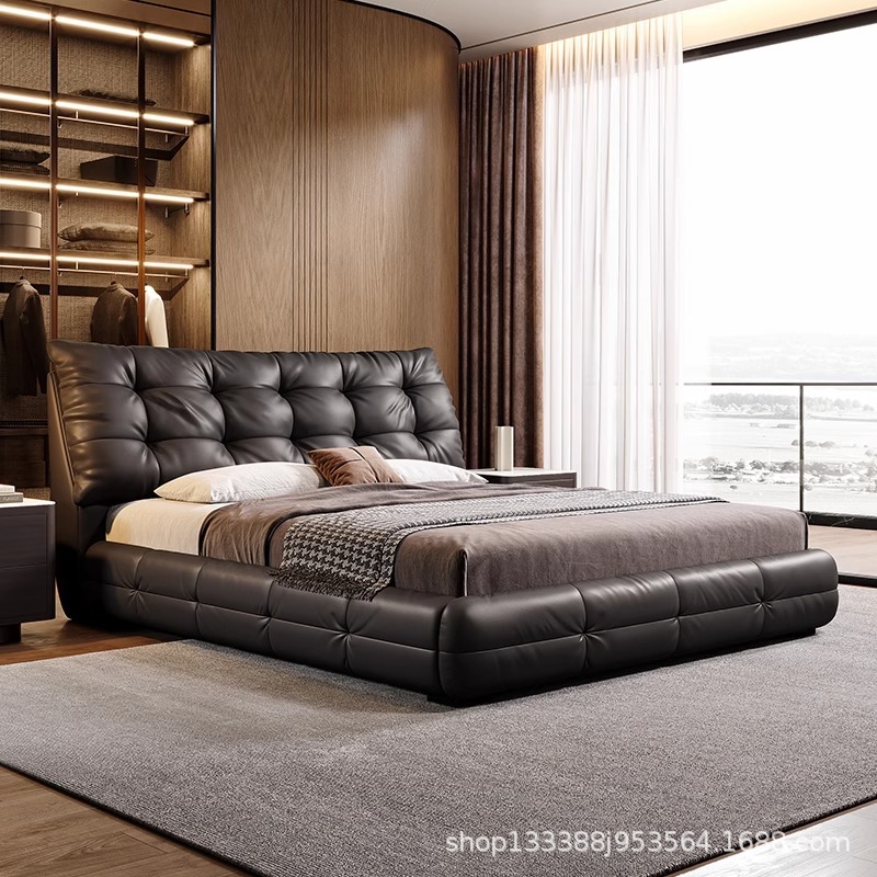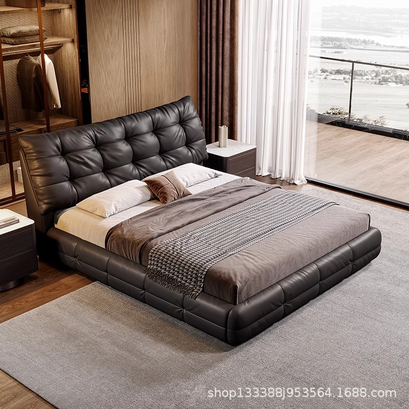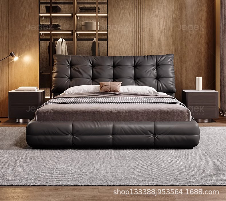 Jeaek итальянская минималистская кожаная кровать в главной спальне черная встроенная кровать 1,8 метра, атмосферная мягкая кровать, двойная свадебная кровать