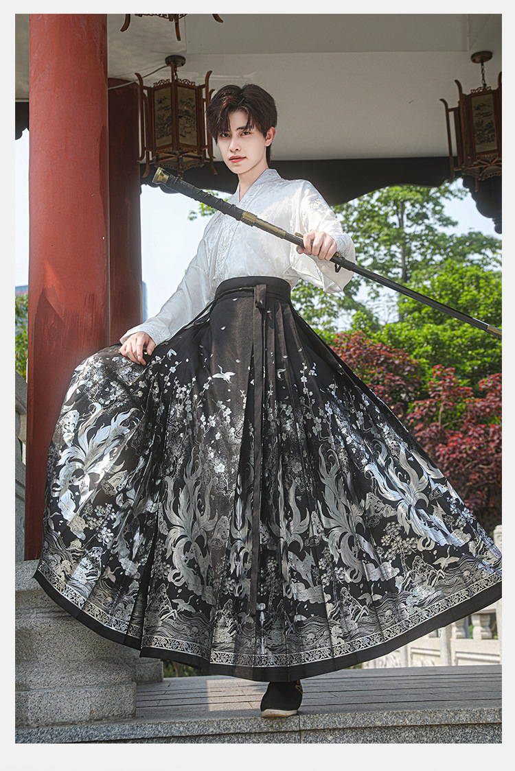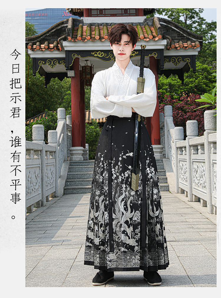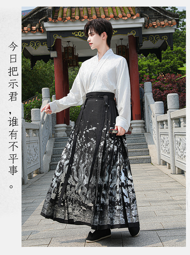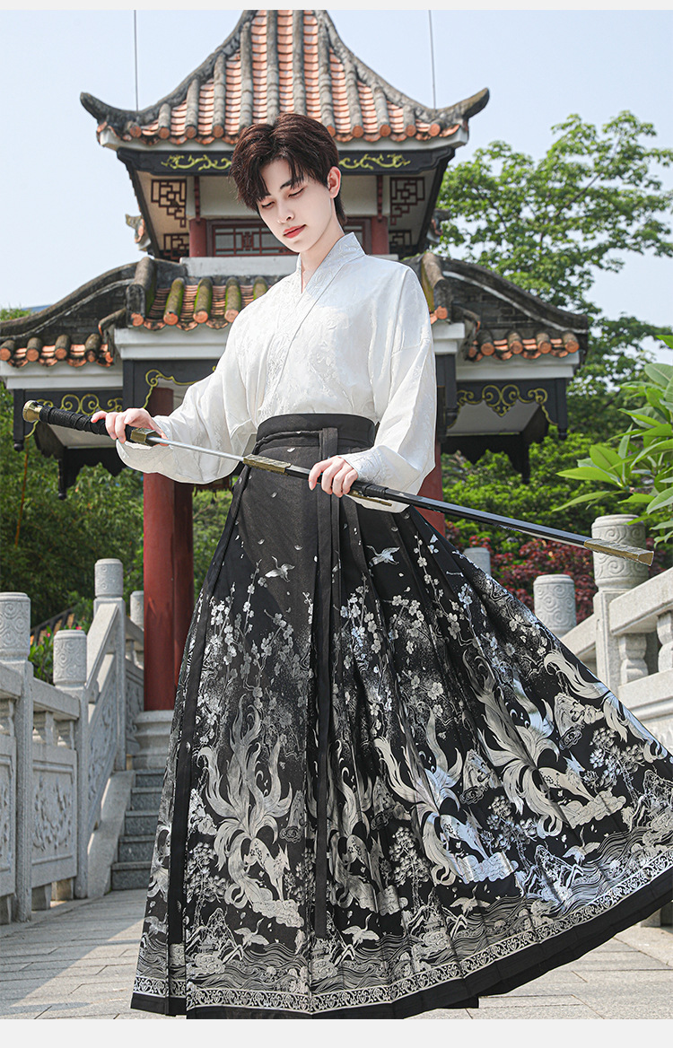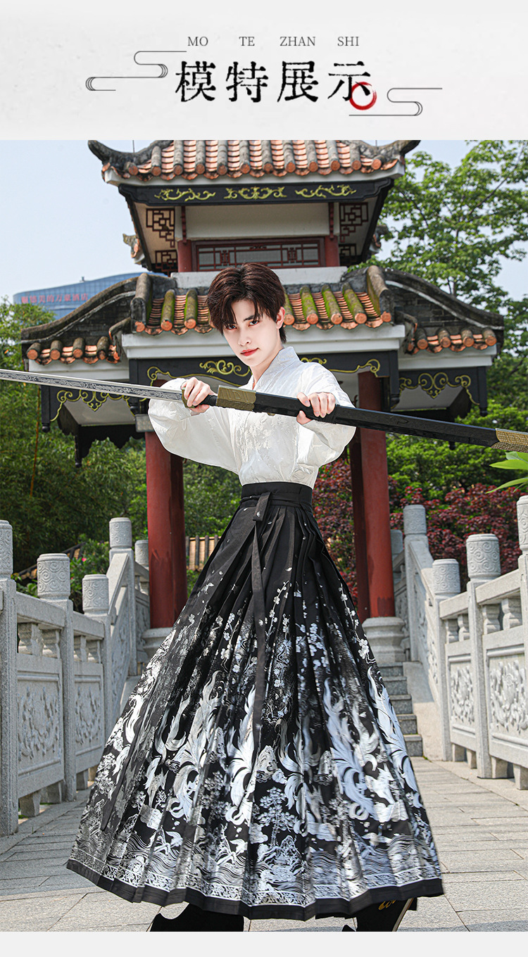 *** Летняя новая китайская мужская одежда Hanfu Guофэн вышитая жаккардовая ткань с рукавами самолета блузка с позолотой конская юбка