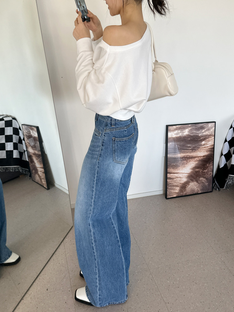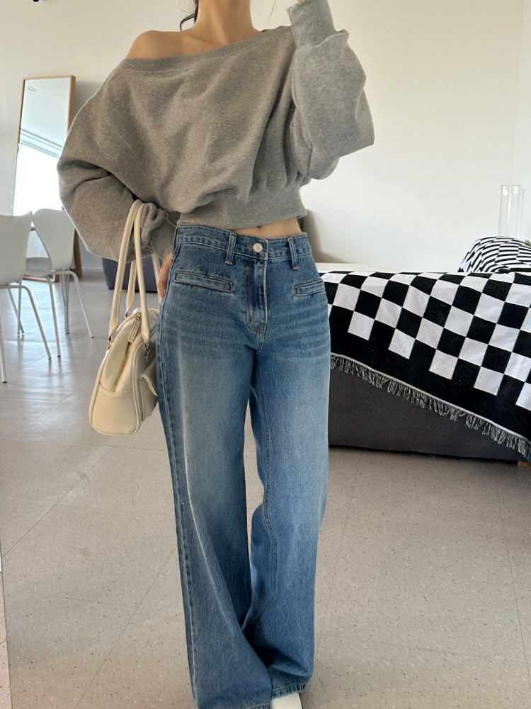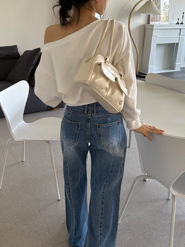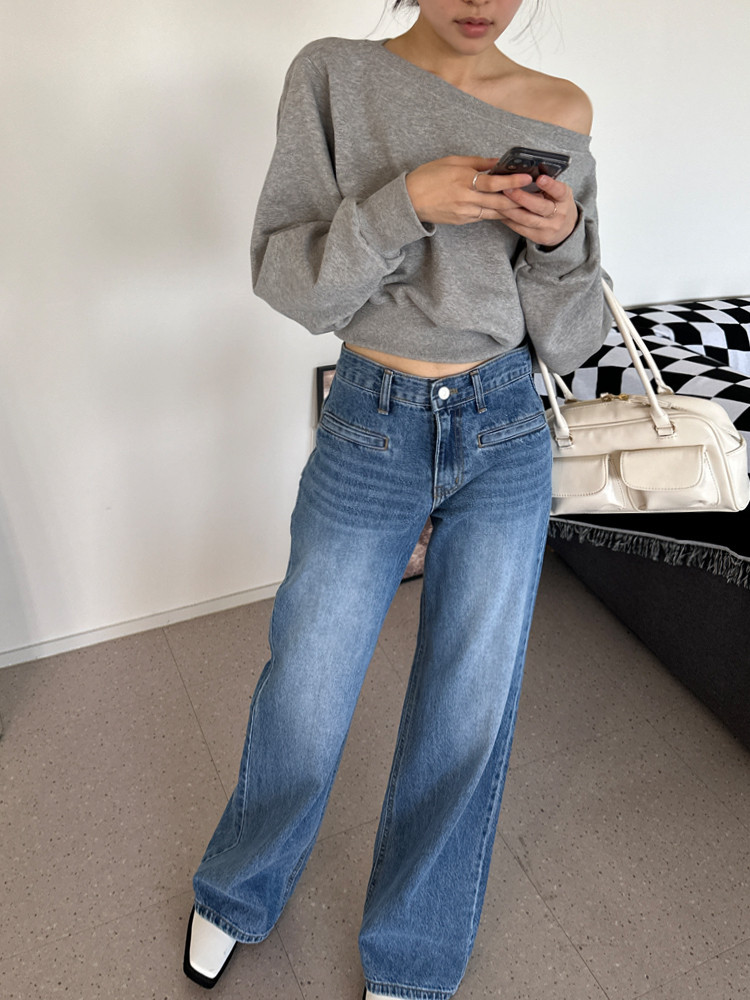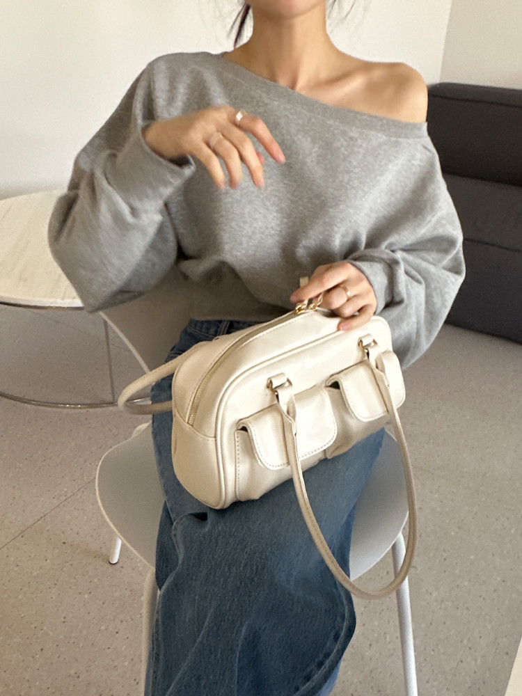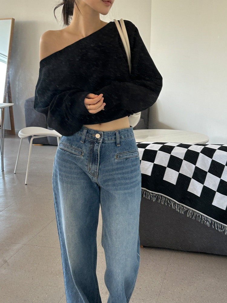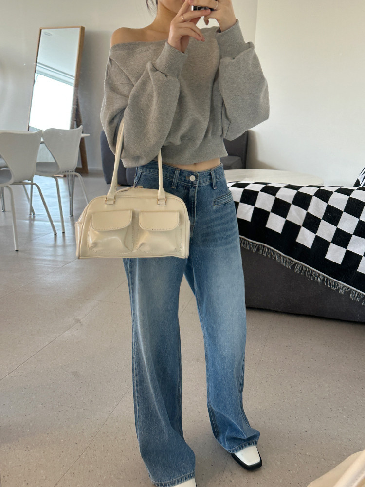 Корейский шикарный осенний свитшот с асимметричным косым воротником, открытыми плечами, универсальный, короткий, однотонный, с длинными рукавами, для женщин