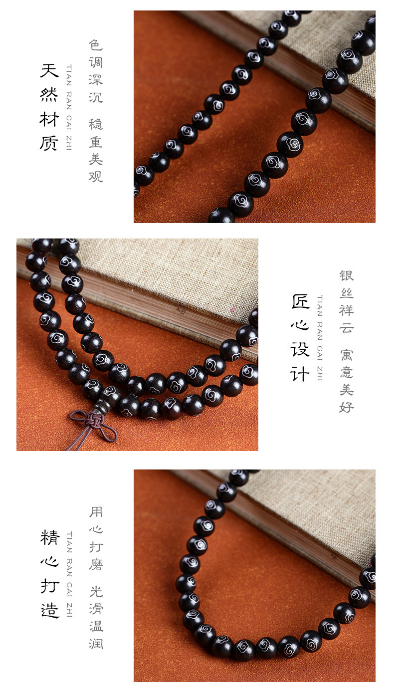 Черное сандаловое дерево инкрустировано серебряным шелком Сянюнь разбросаны бусы Кровавые бусы