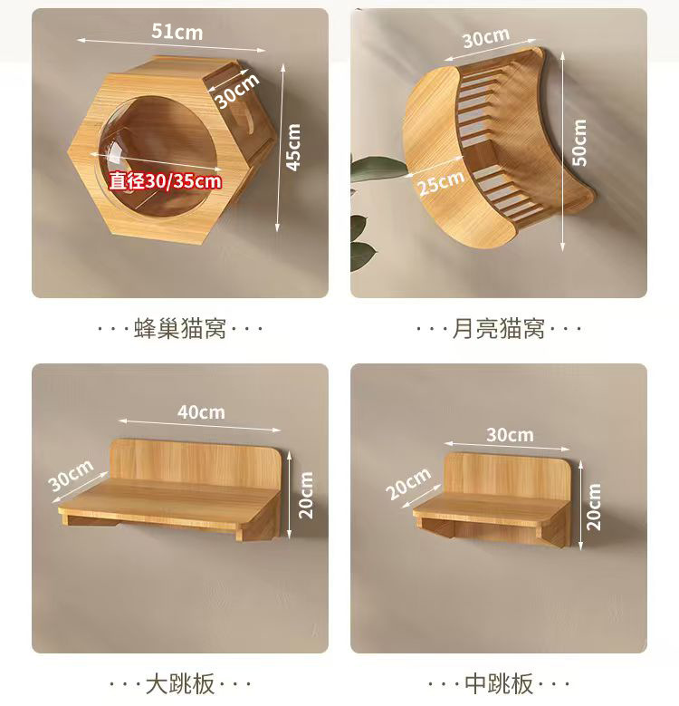 Настенная альпинистская колонна вертикального типа (пластина с кошачьей головой, круглая пластина случайная); средняя лестница; Четырехэтажная твердая лестница; маленькая трамплина; средний трамплин; большой трамплин; Настенная альпинистская колонна в горизонтальном стиле; угловая трамплин; Двухэтажная маленькая лестница; маленькая лестница; столбик для трамплина; полукруглая трамплин; трехэтажная платформа для дайвинга; кошачье гнездо; Коридор для кошек-маленький; голова кошки кошачий гнездо; небольшое дверное кошачье гнездо; кошачье гнездо на ногах; Кошачий домик-маленький; большая лестница; платформа для прыжков через забор; Космическая капсула диаметром 30; луна кошачье гнездо; кошачья галерея; Диаметр космической капсулы 35; Трехэтажная маленькая лестница; 4-х слойная трапециевидная трамплин; Кошачий домик-Большой + Большая прыгающая платформа; Котячий домик-большой; Платформа для прыжков с вертикальной лазейкой; дворец в небе; воздушный коридор; Сотовое кошачье гнездо диаметром 30; Сотовое кошачье гнездо диаметром 35; Котячий домик маленький + большой коридор; Кошачий домик-маленький + большая прыгающая платформа