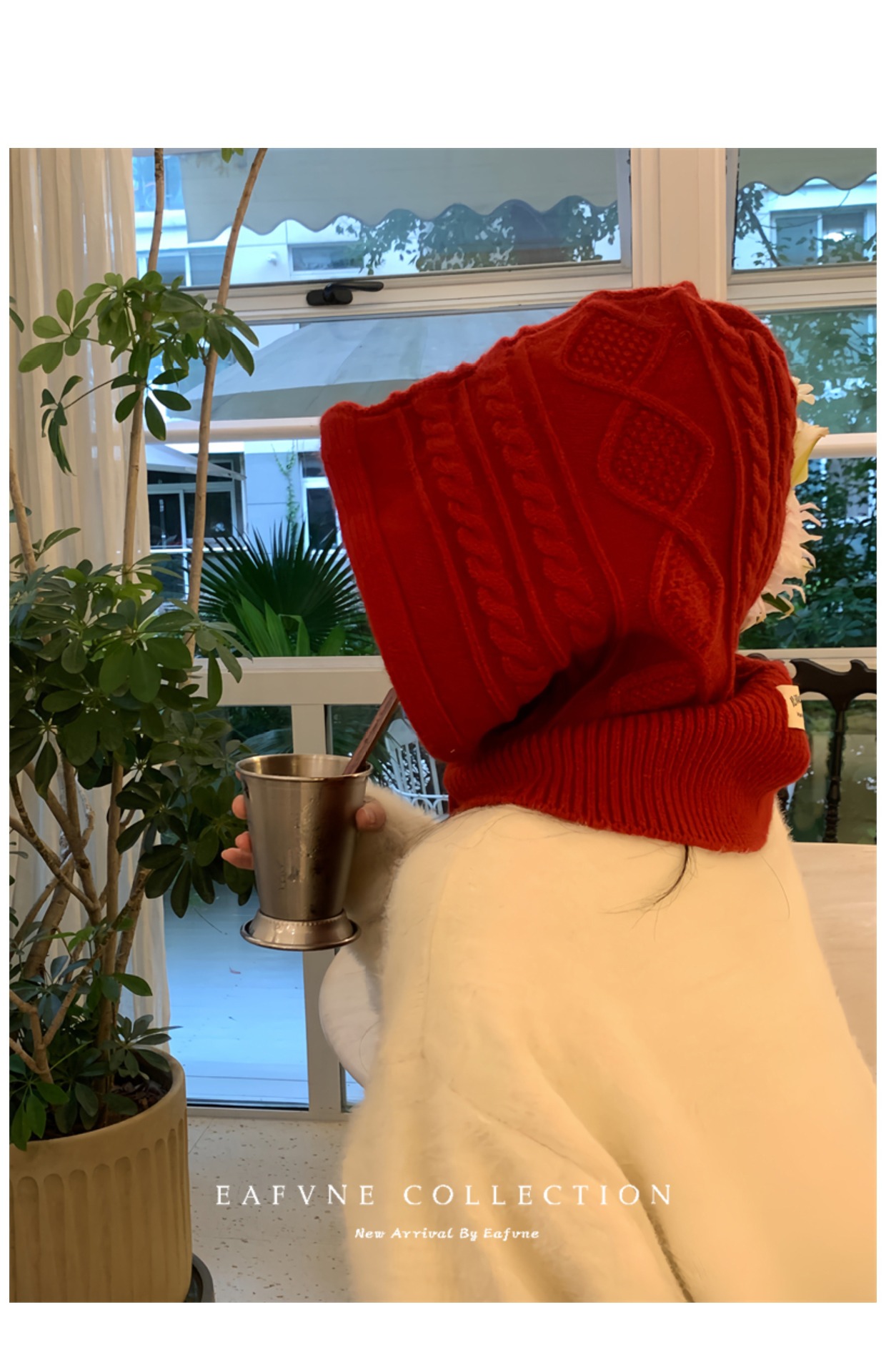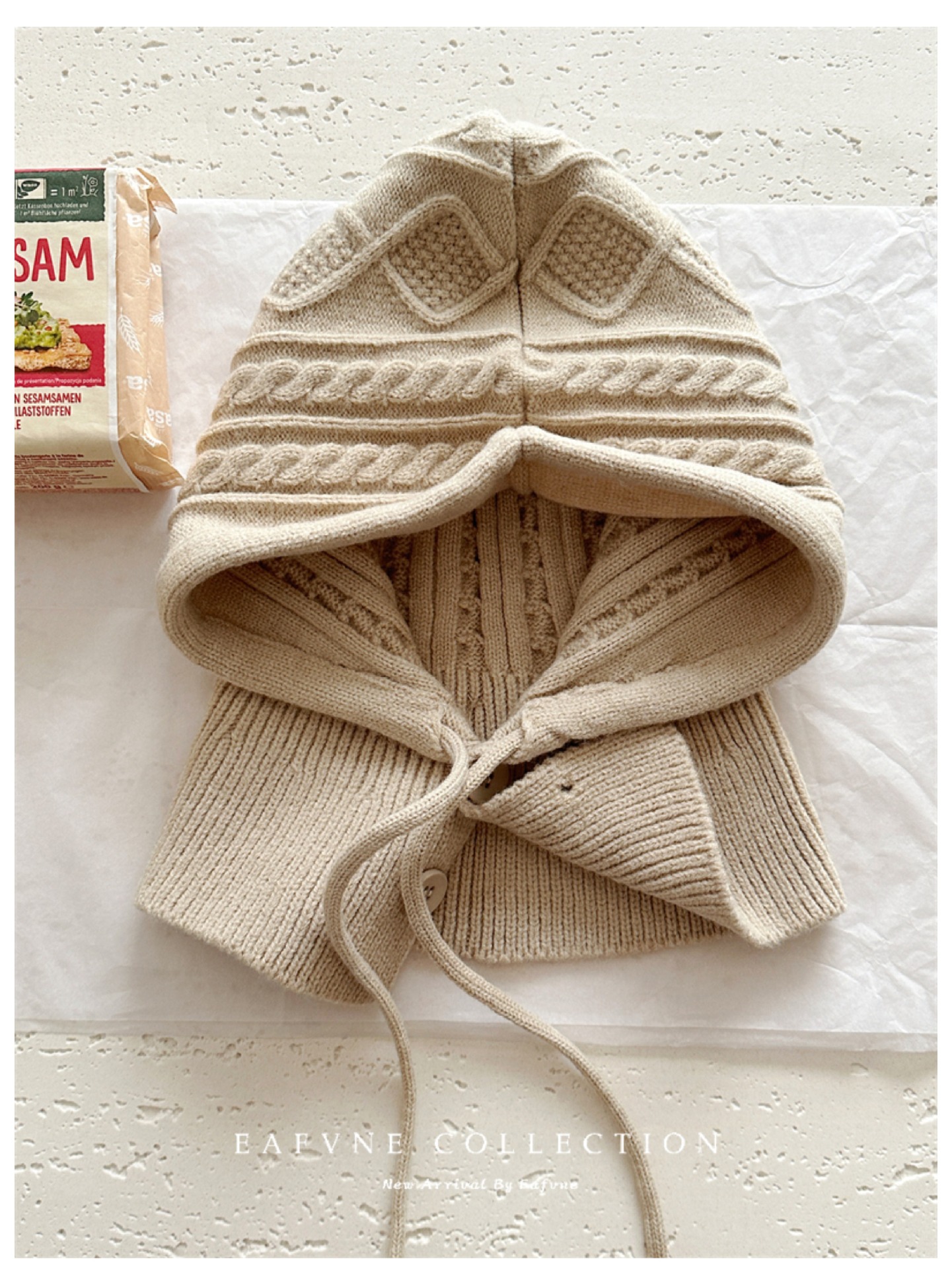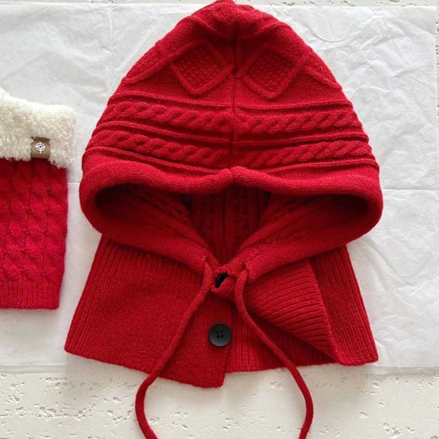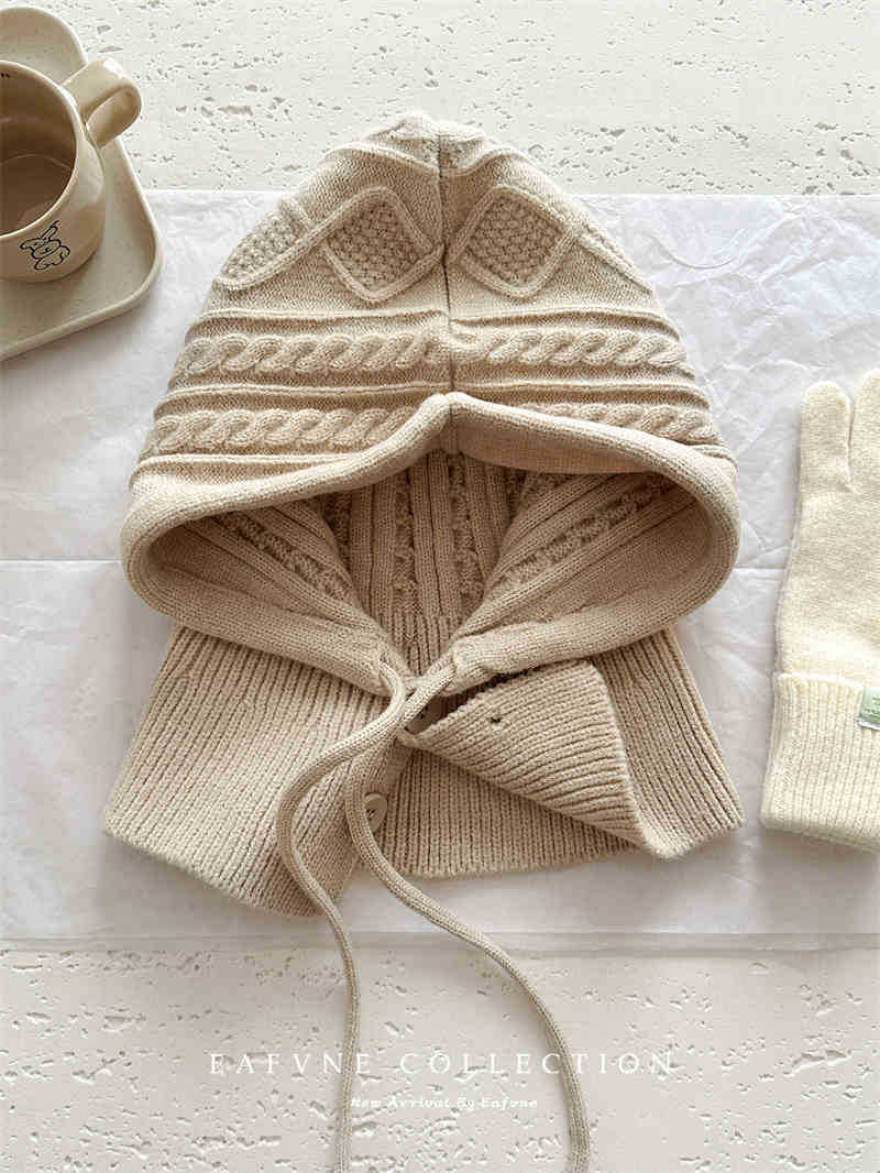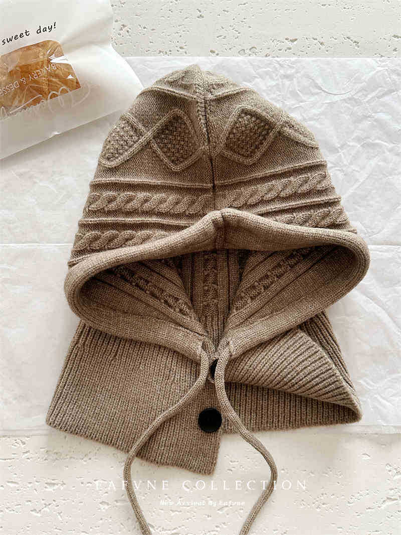 Шапка-балаклава для женщин, зимняя теплая шапка со встроенным шарфом, головной убор, защита ушей, шерстяная шапка, вязаная шапка для больших размеров головы