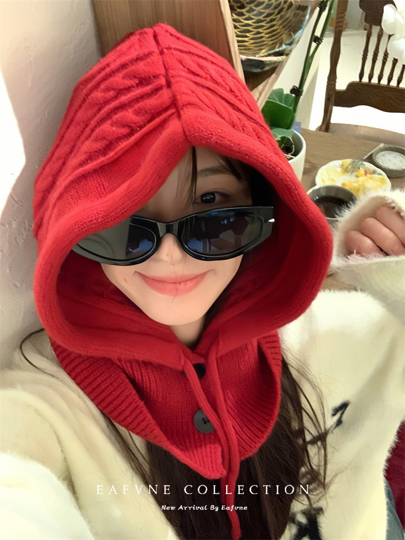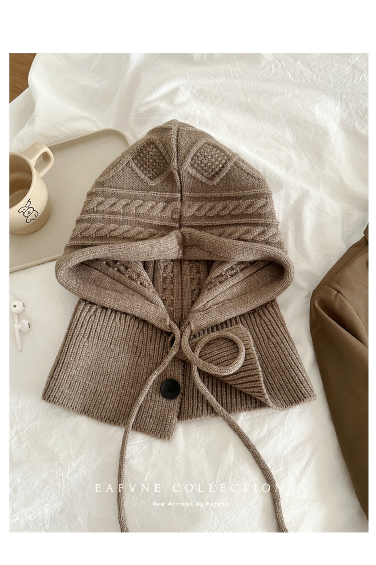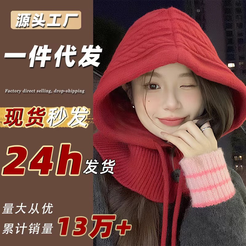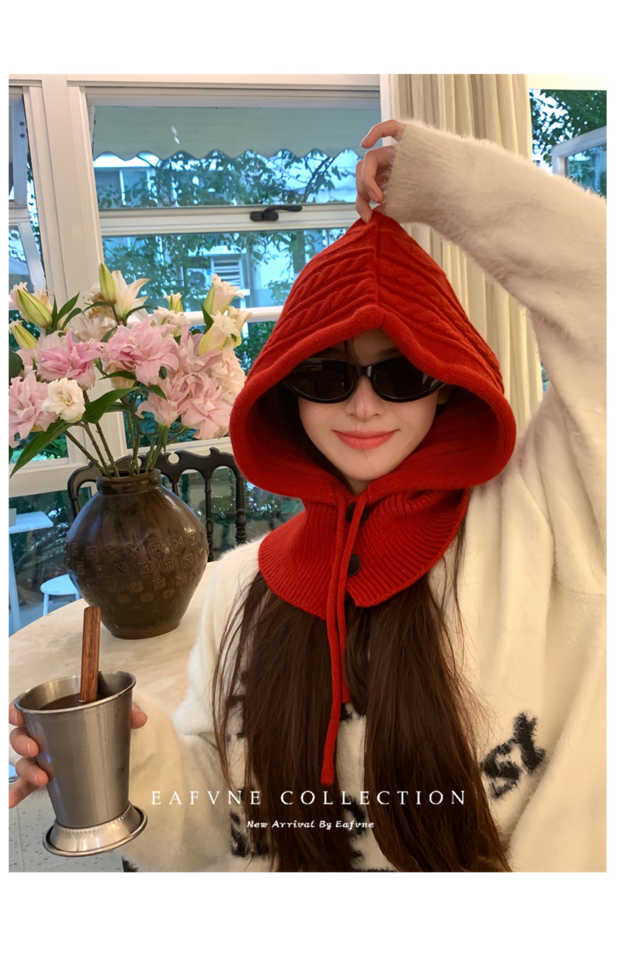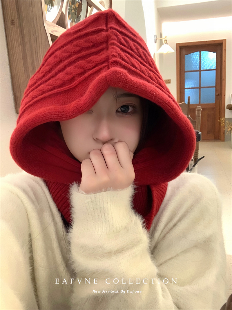 Шапка-балаклава для женщин, зимняя теплая шапка со встроенным шарфом, головной убор, защита ушей, шерстяная шапка, вязаная шапка для больших размеров головы