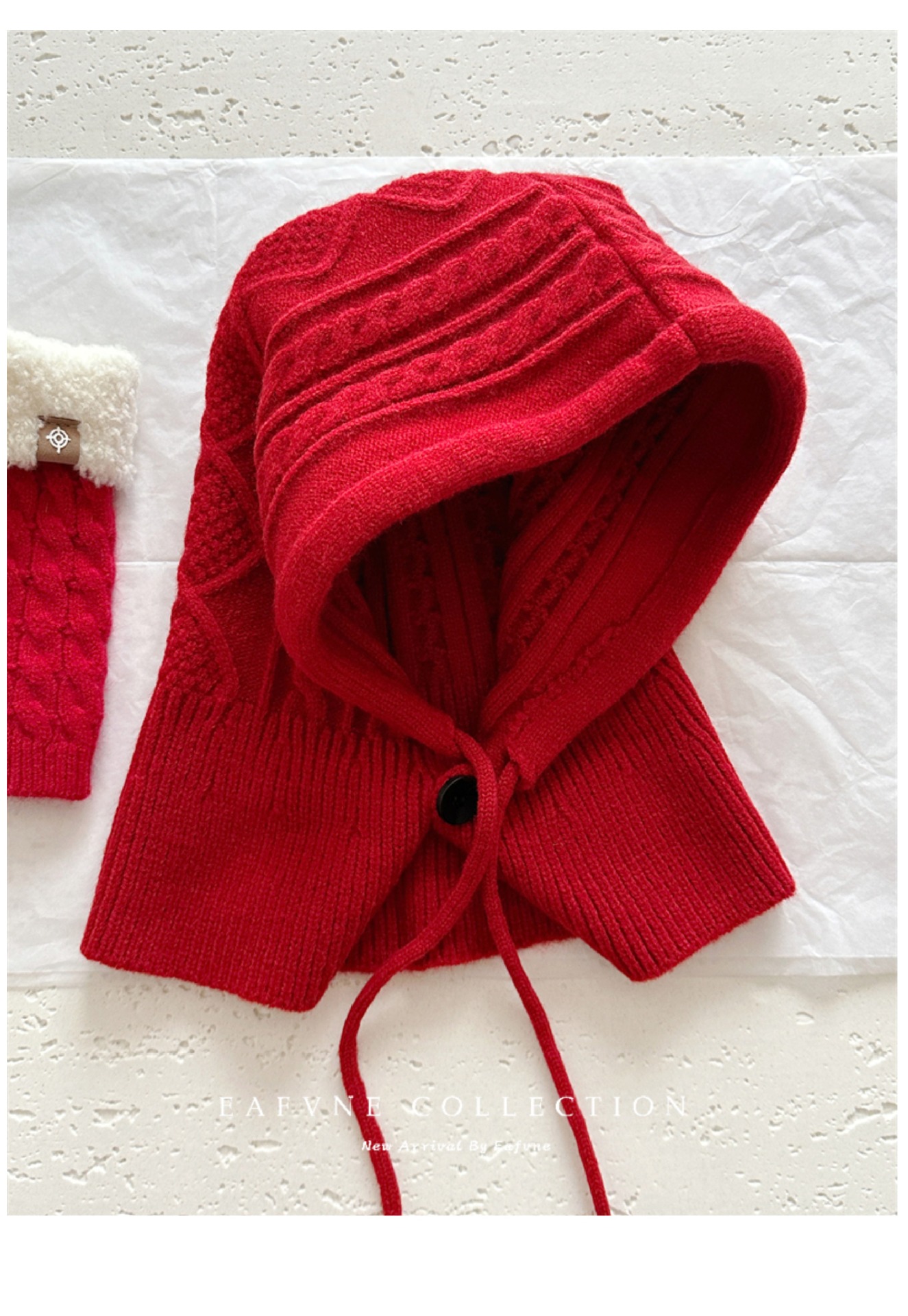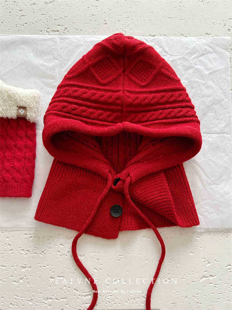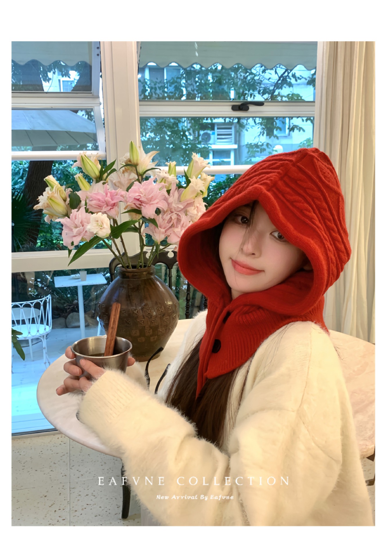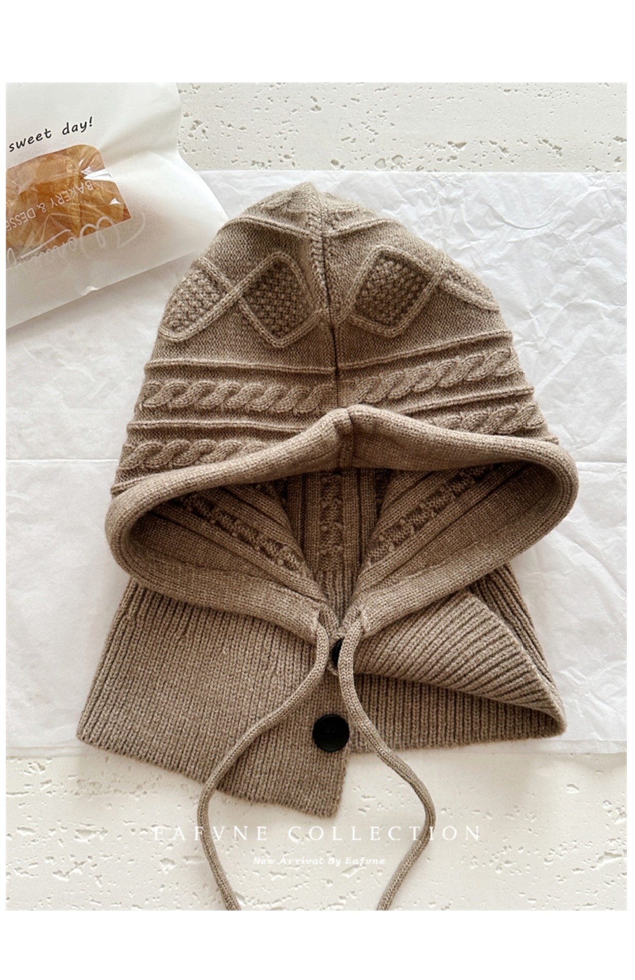 Шапка-балаклава для женщин, зимняя теплая шапка со встроенным шарфом, головной убор, защита ушей, шерстяная шапка, вязаная шапка для больших размеров головы