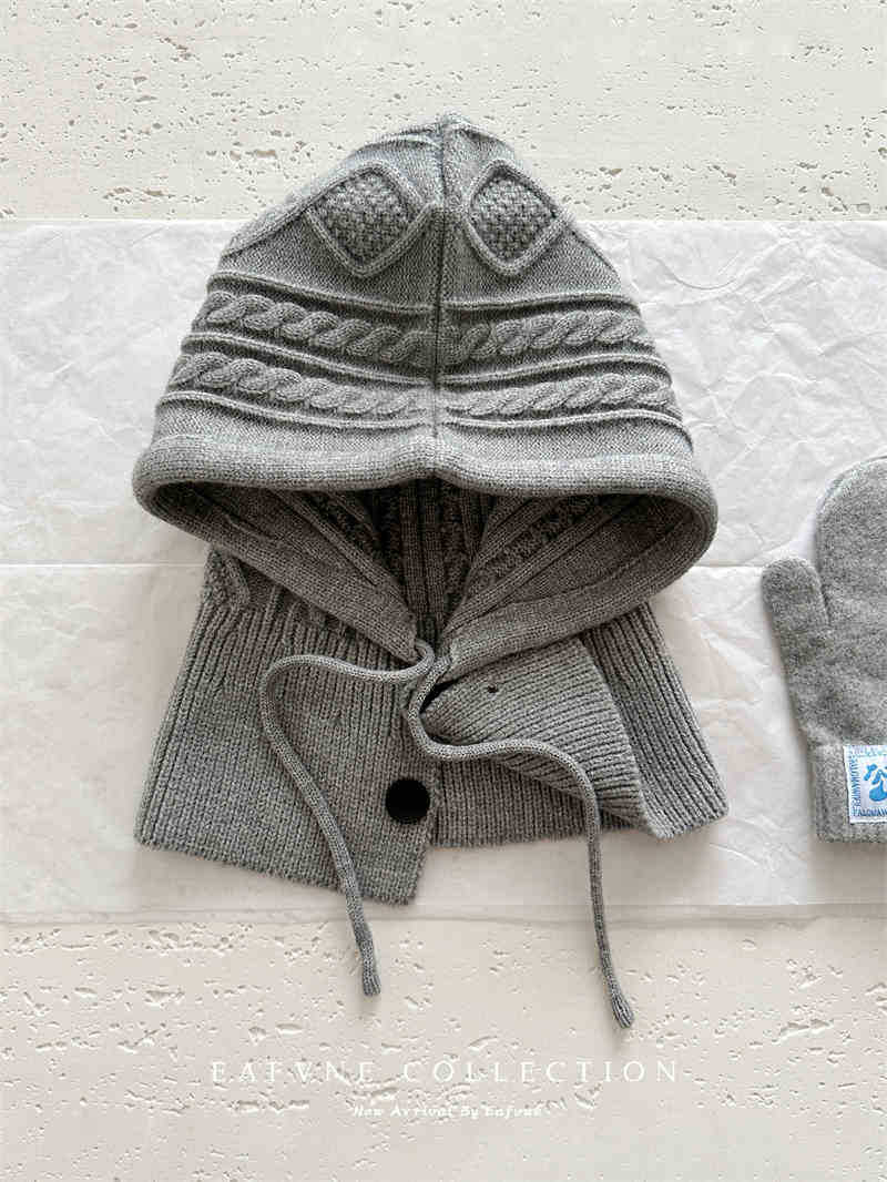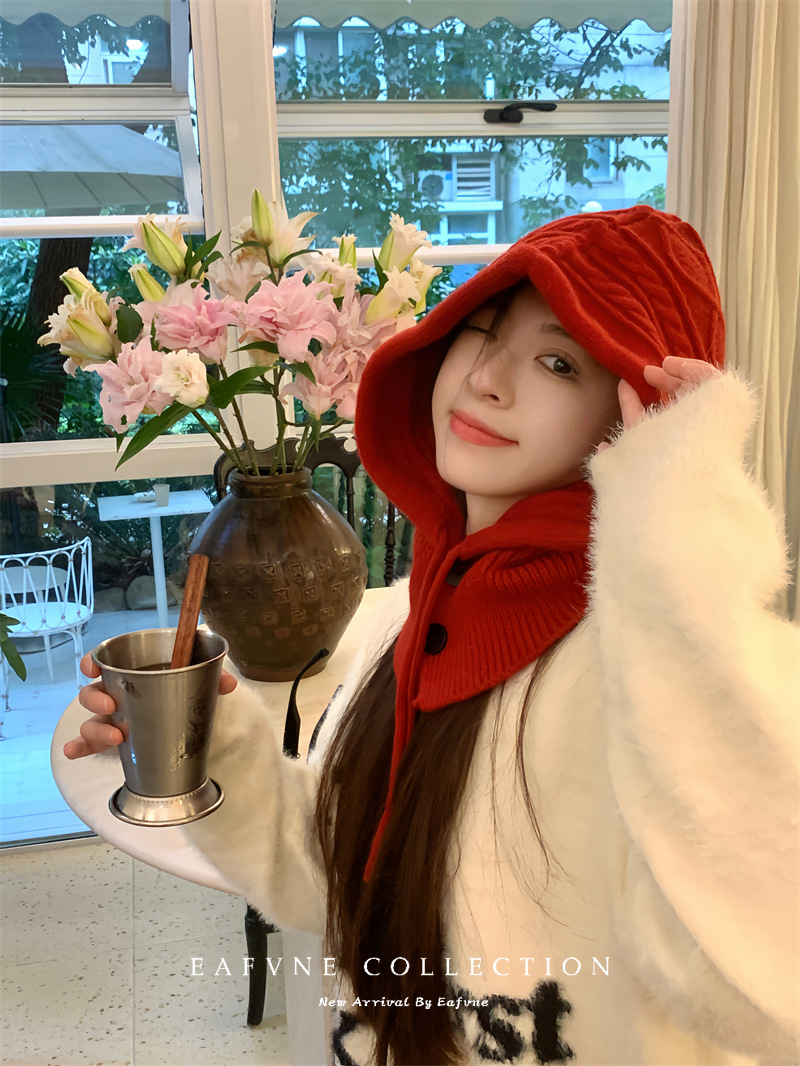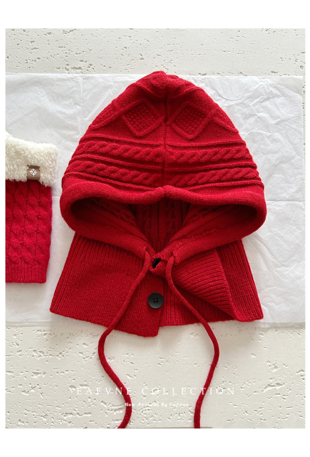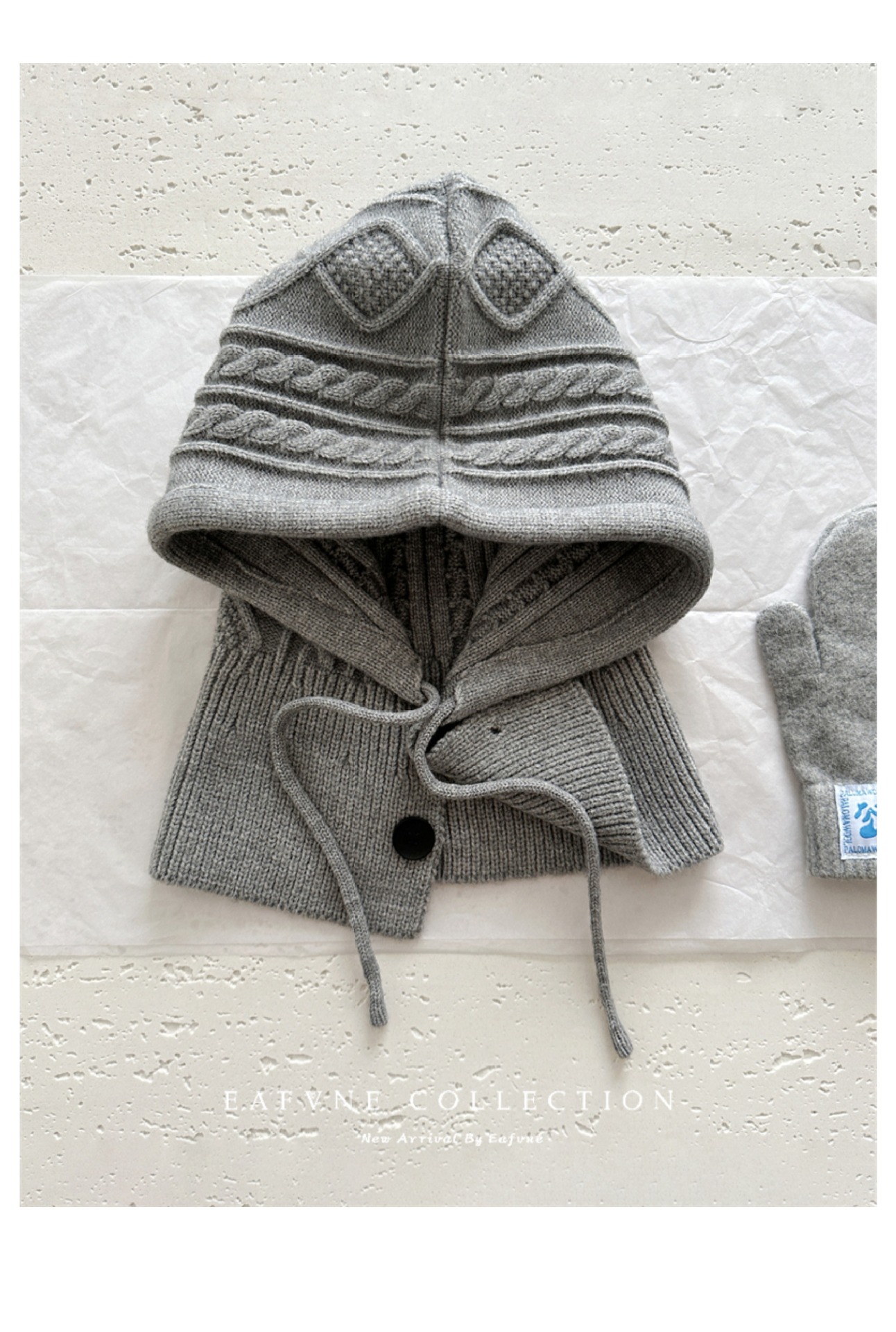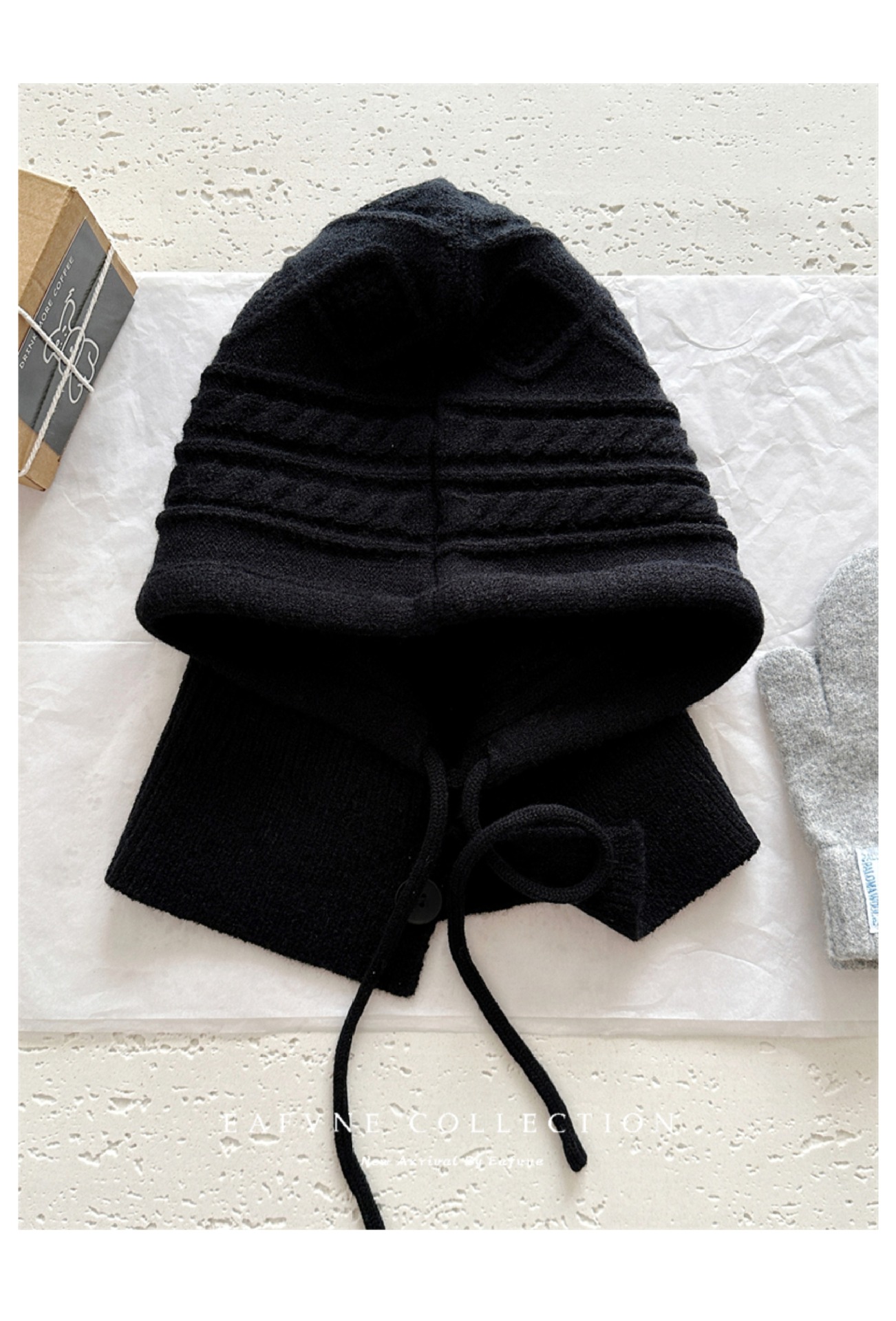 Шапка-балаклава для женщин, зимняя теплая шапка со встроенным шарфом, головной убор, защита ушей, шерстяная шапка, вязаная шапка для больших размеров головы