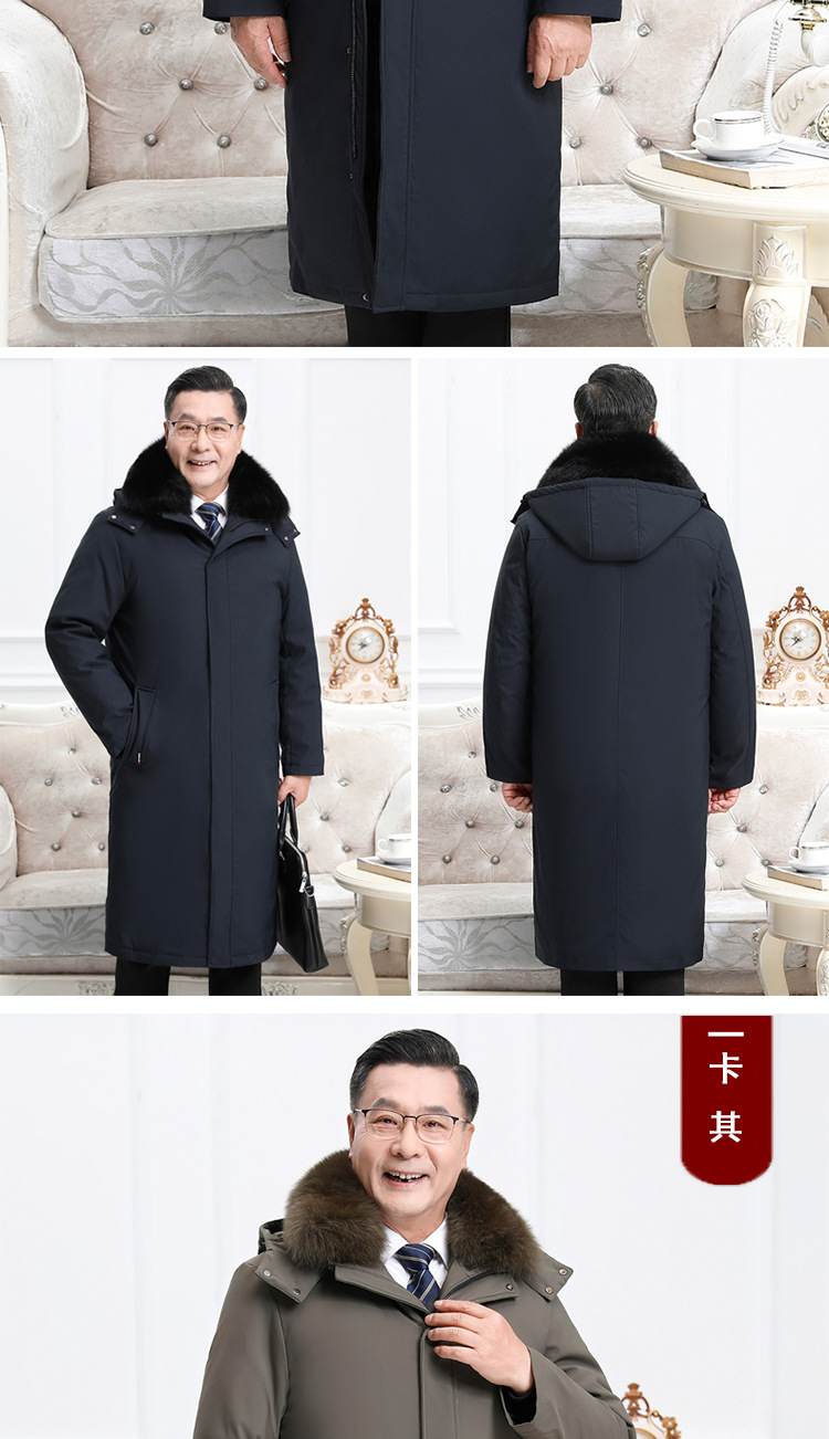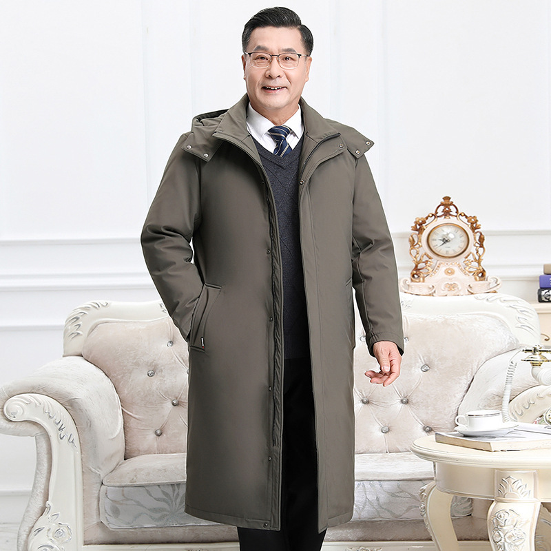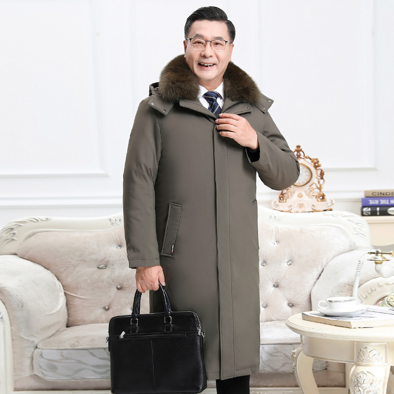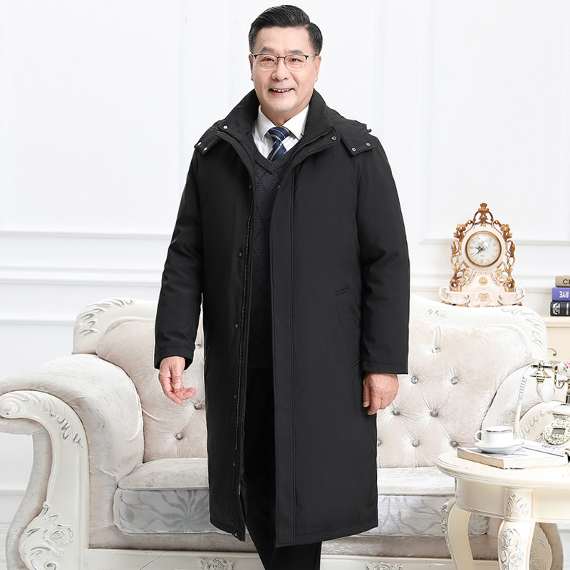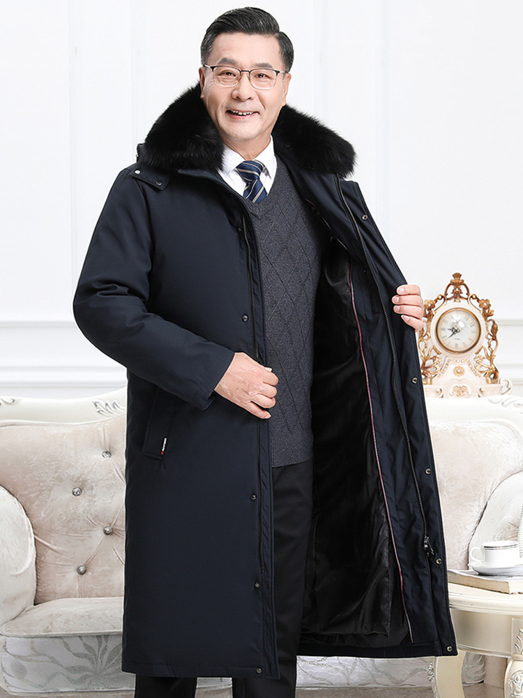 Съемный пуховик большого размера для среднего и пожилого возраста, мужская длинная одежда для папы, утолщенная зимняя одежда выше колена с живым лицом, дедушка