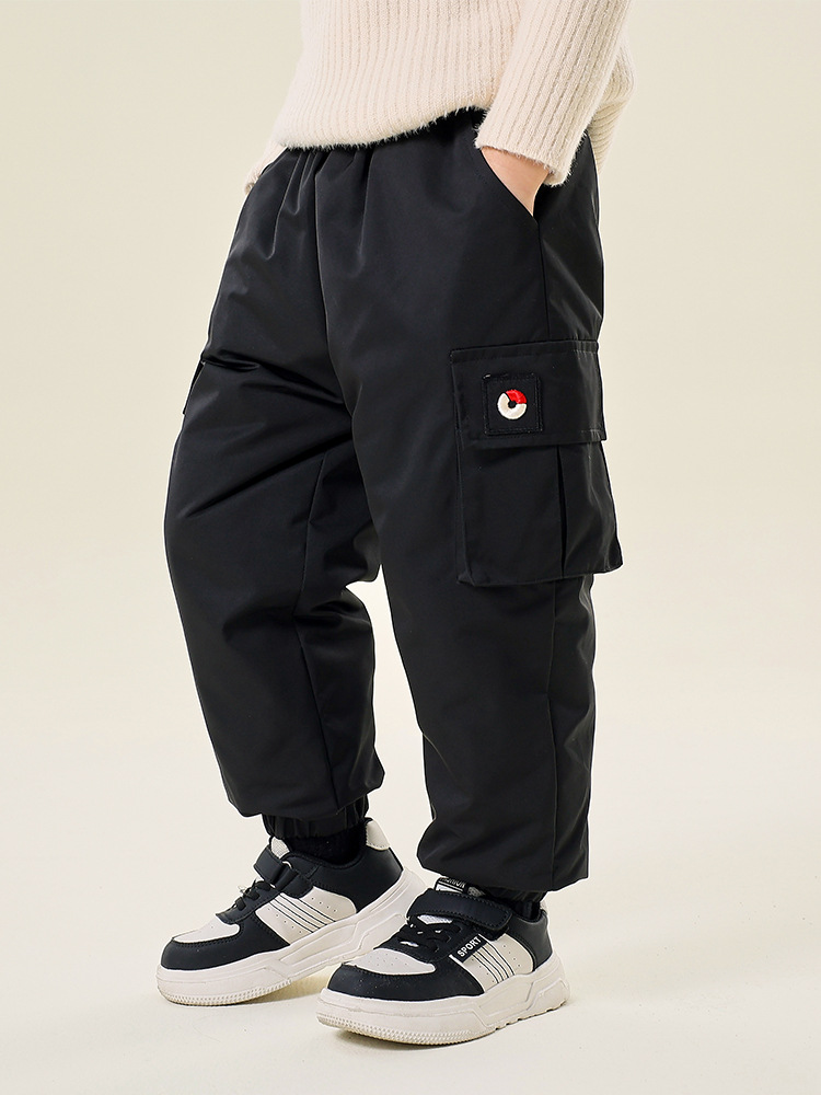 Трехслойные детские пуховые штаны 2025 года, новая зимняя модель для мальчиков и девочек, утепленная верхняя одежда для малышей, лыжные штаны с утиным пухом для Северо-Востока.