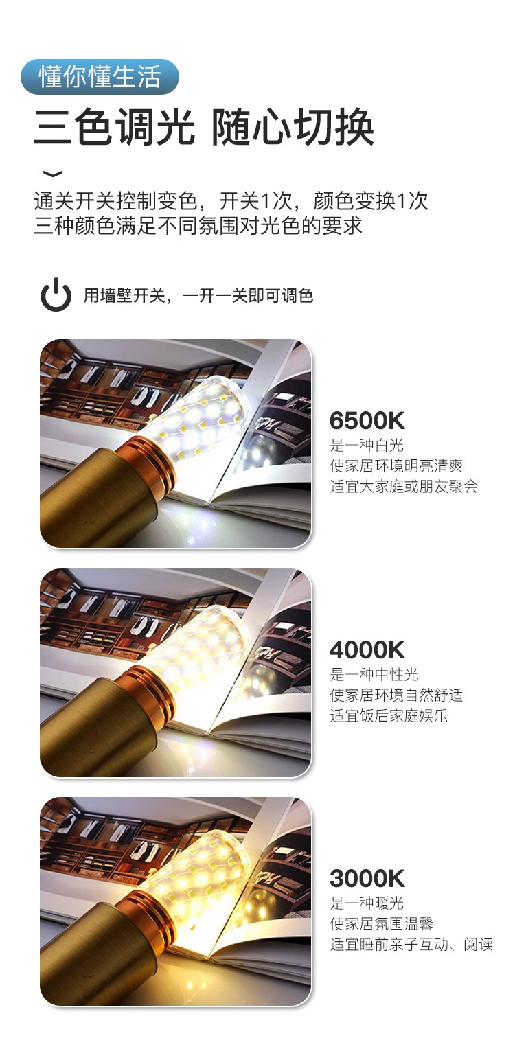 белый свет; теплый свет; нейтральный свет; Трехцветное затемнение [белый свет/теплый свет/нейтральный свет]