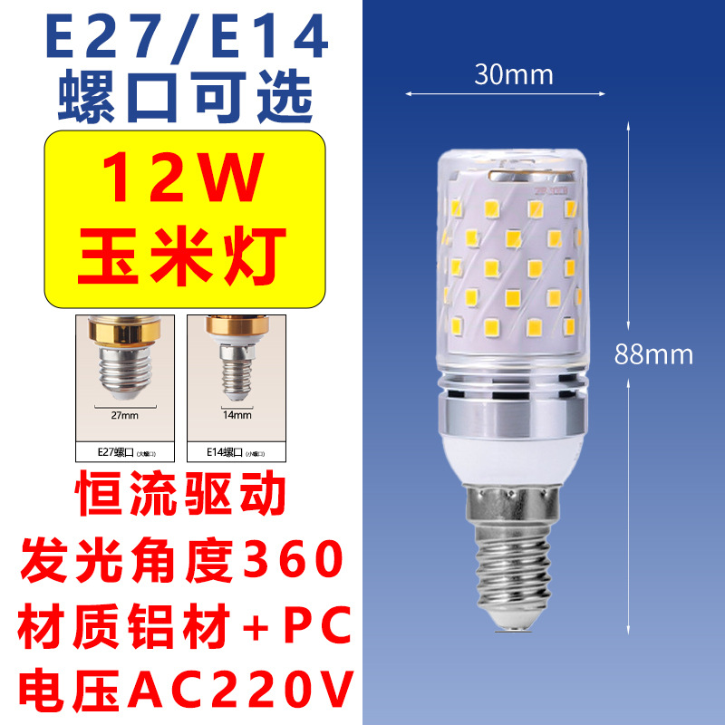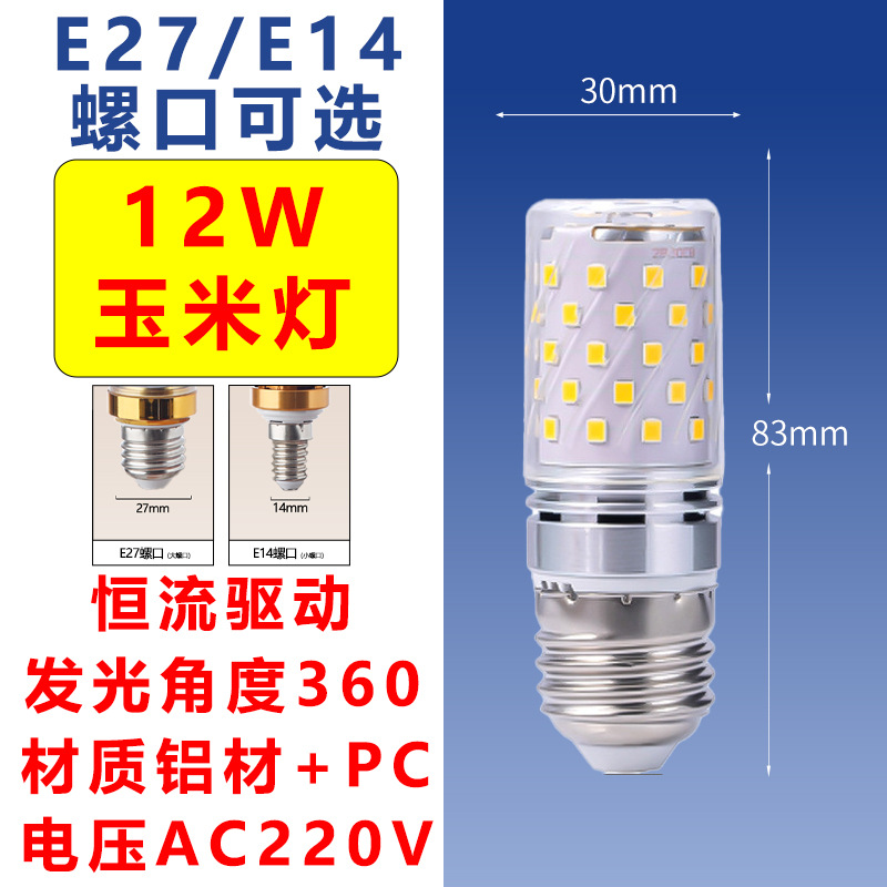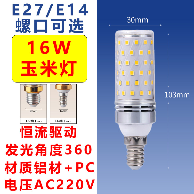 Светодиодная лампа-кукуруза E27/E14 с винтовым цоколем, без мерцания, энергосберегающая, 12-16 Вт, многоцветная, белый свет, чип Sanan
