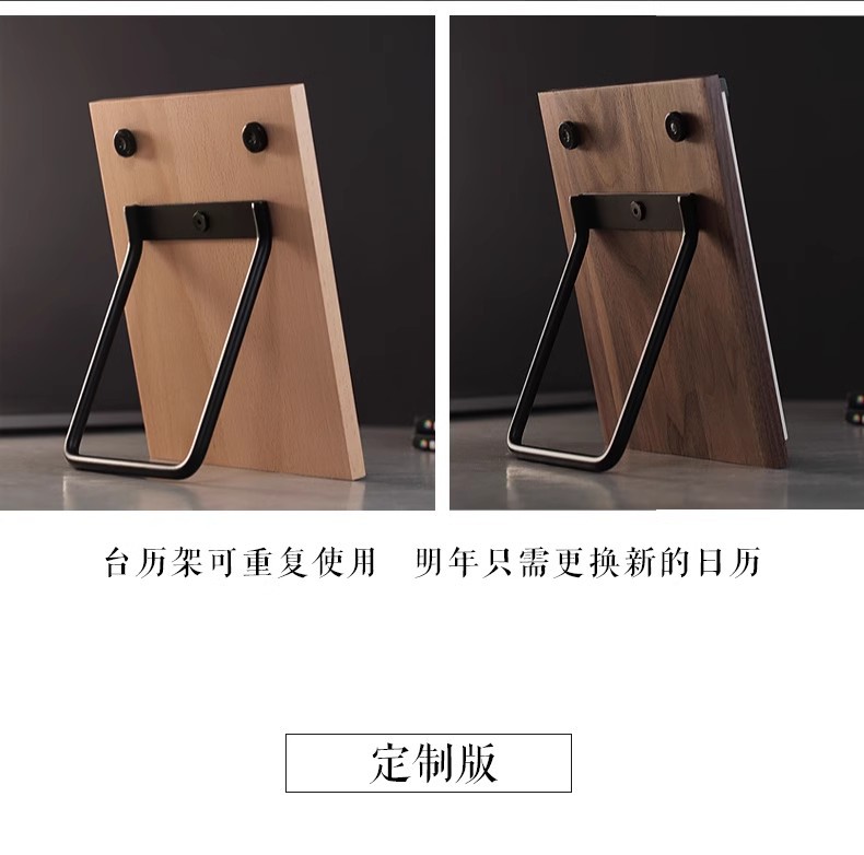 关于发货:默认台历木板和铁架和内页分开打包发货,如需要配装好发货须单独定制包装盒,可单独定制内页,单面14一套,双面16一套(默认炫彩艺术特种纸),量大优惠,详情请咨询客服 支持打样