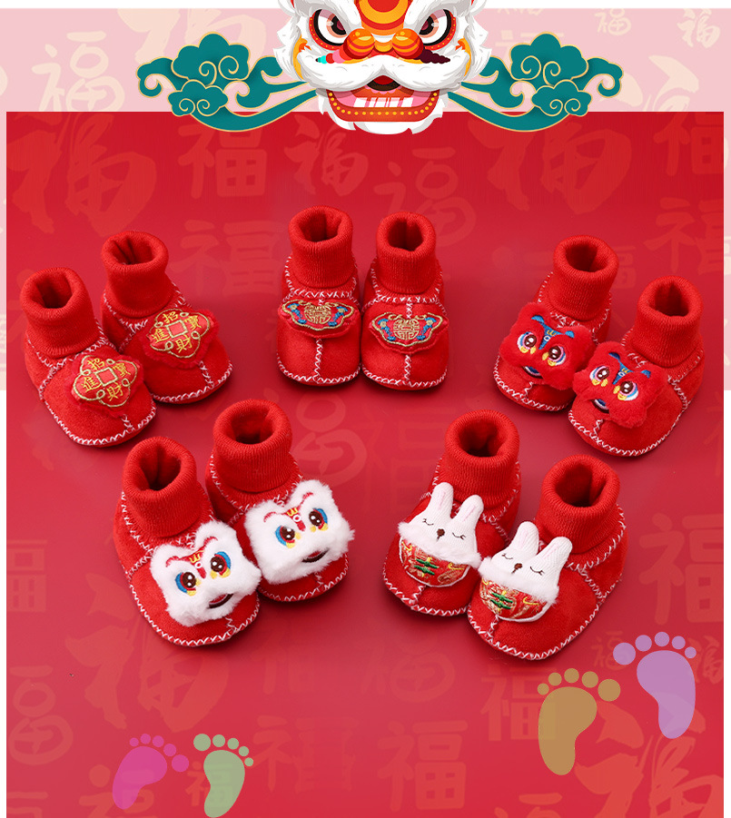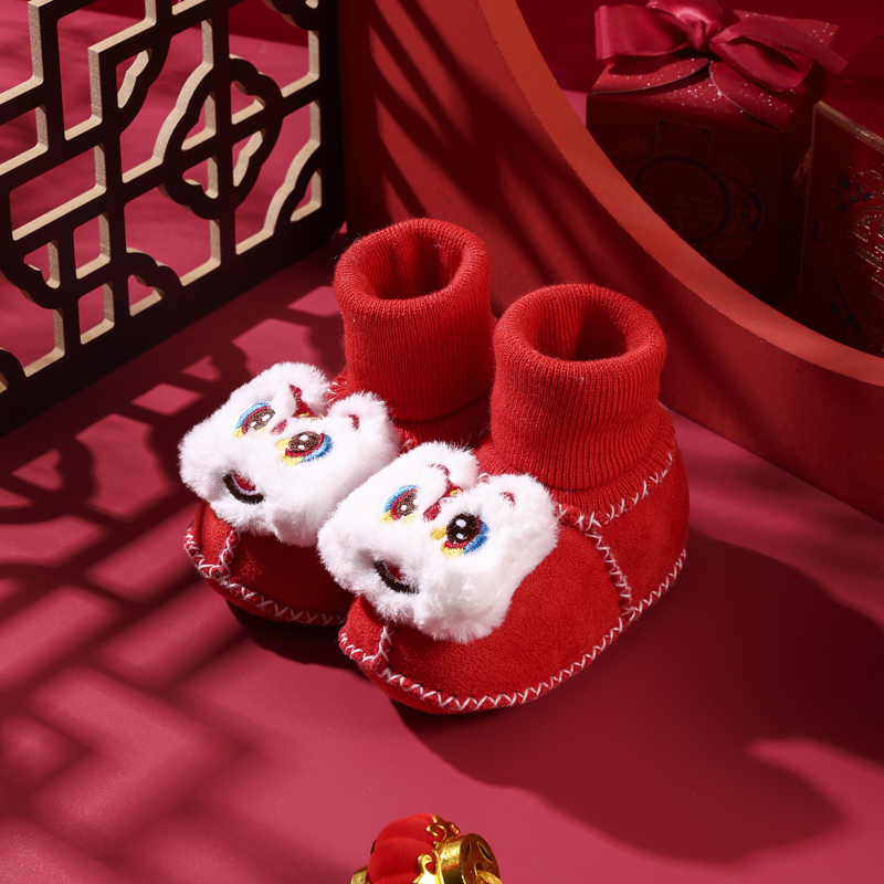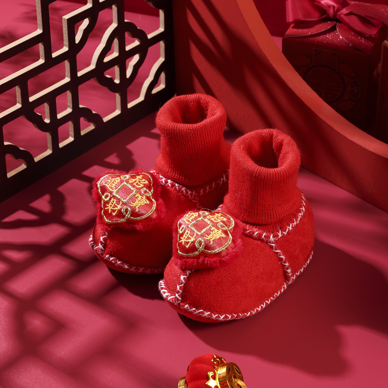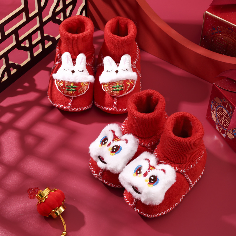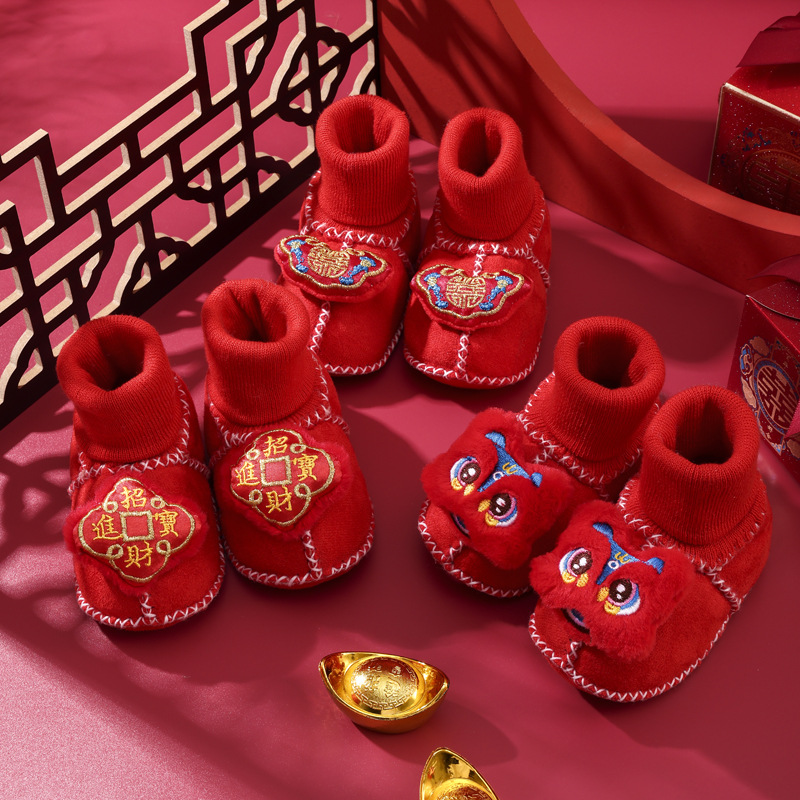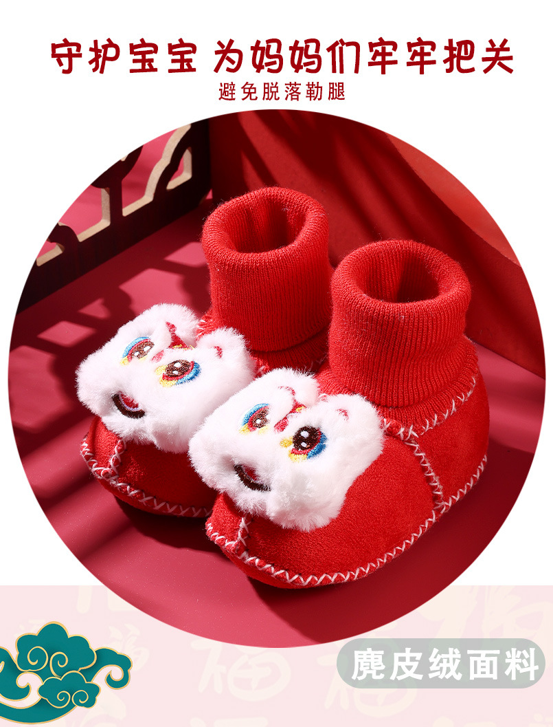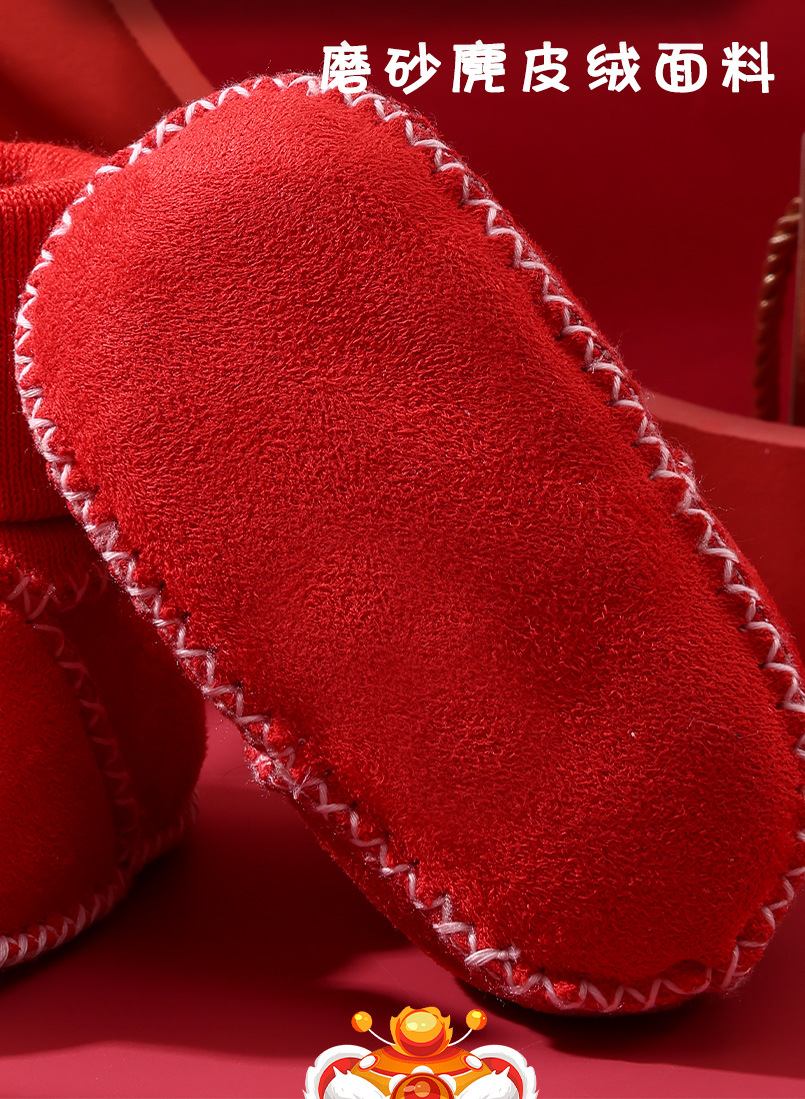 Осень и зима утолщение теплая детская хлопчатобумажная обувь новорожденный чехол для ног красный новогодняя обувь для полнолуния