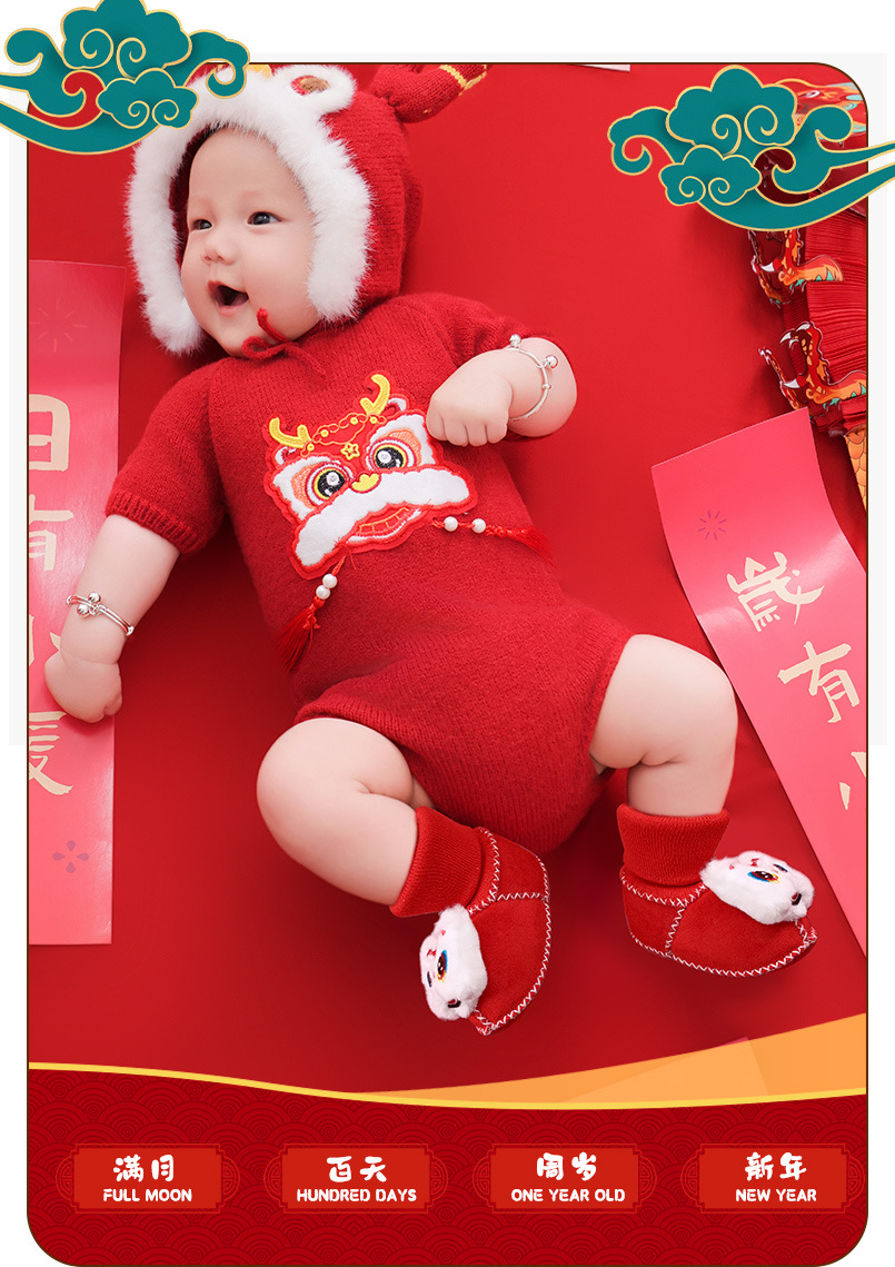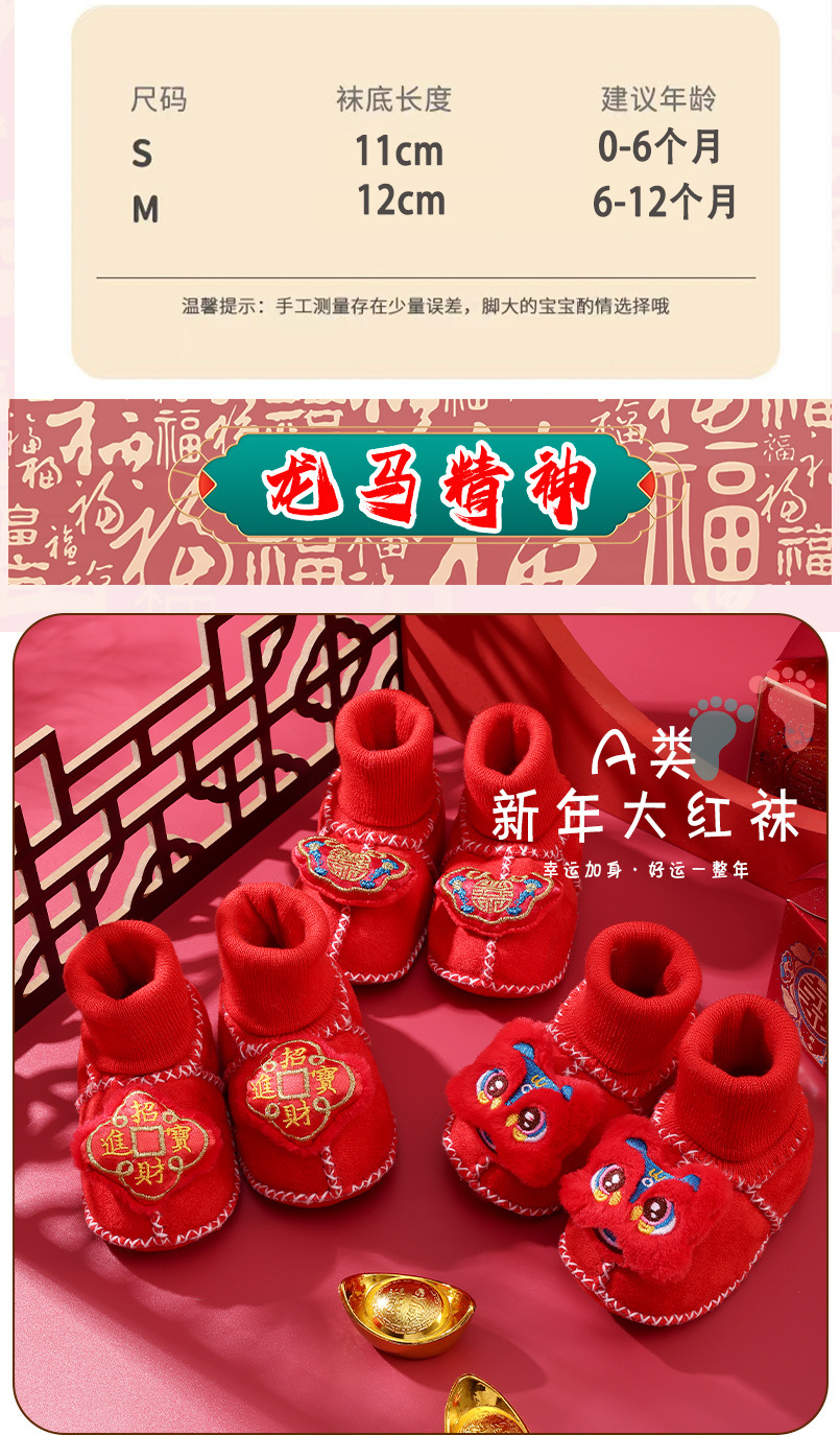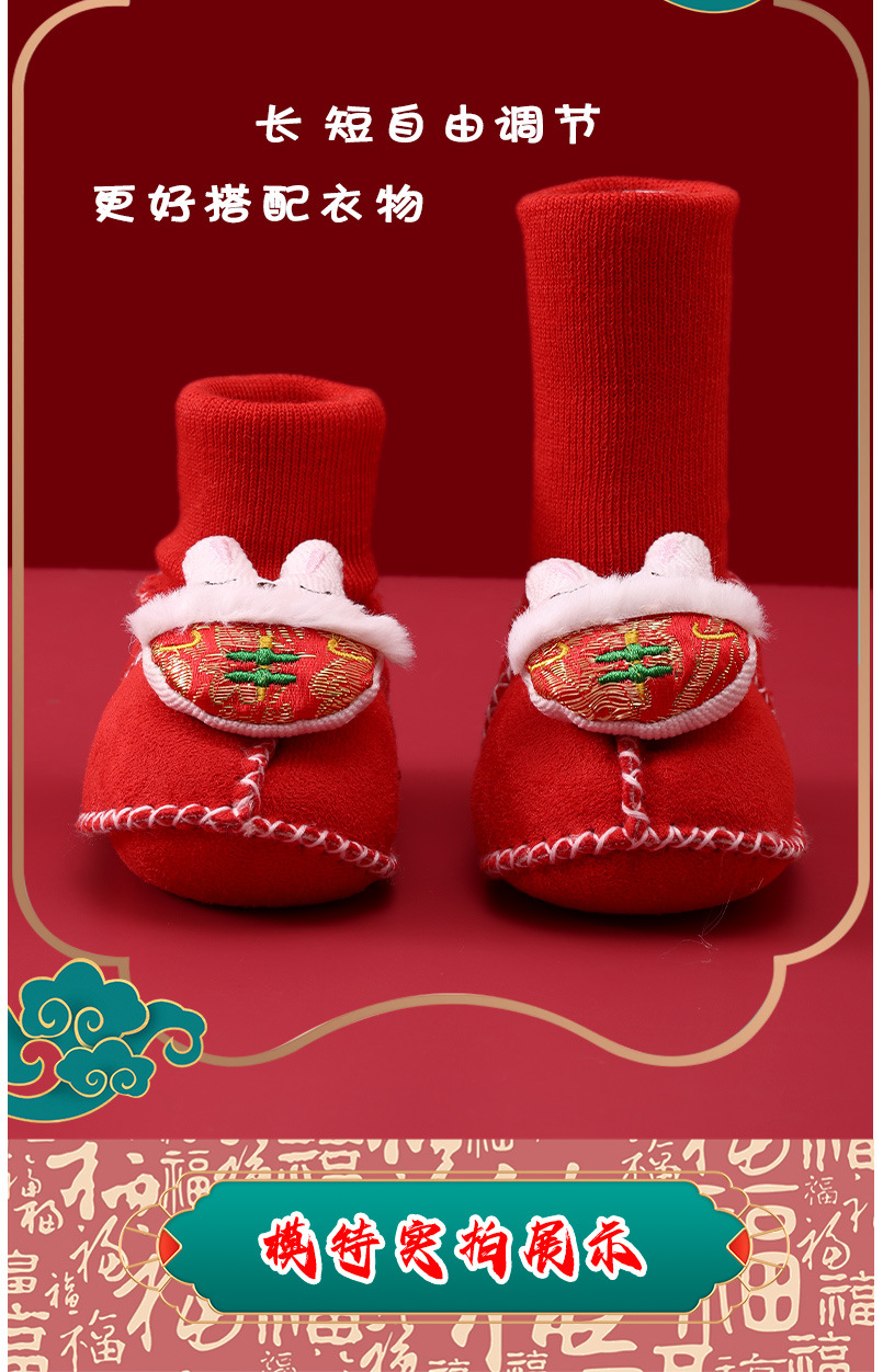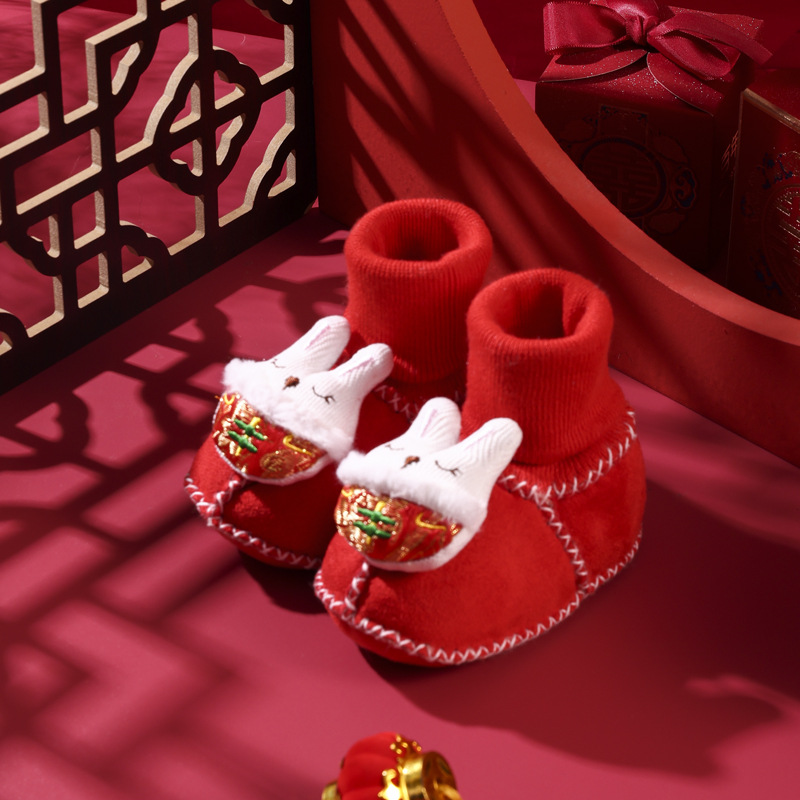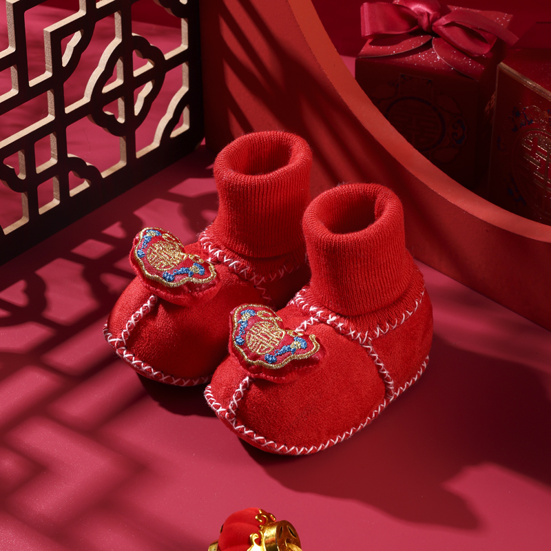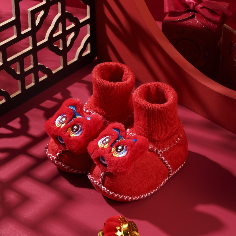 Осень и зима утолщение теплая детская хлопчатобумажная обувь новорожденный чехол для ног красный новогодняя обувь для полнолуния