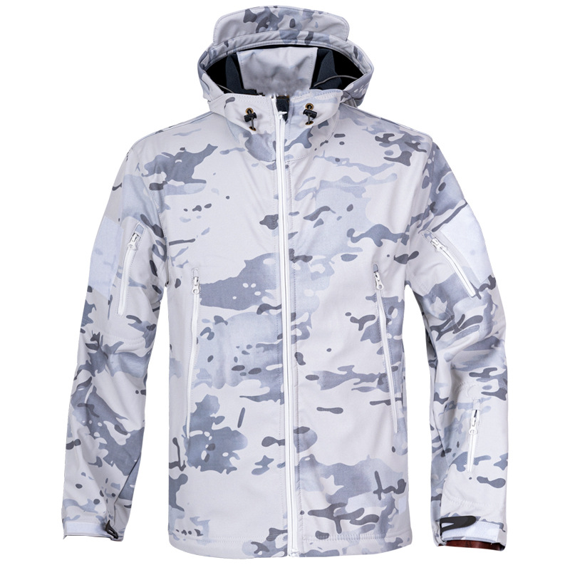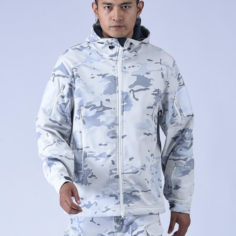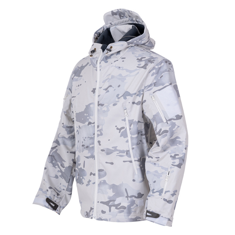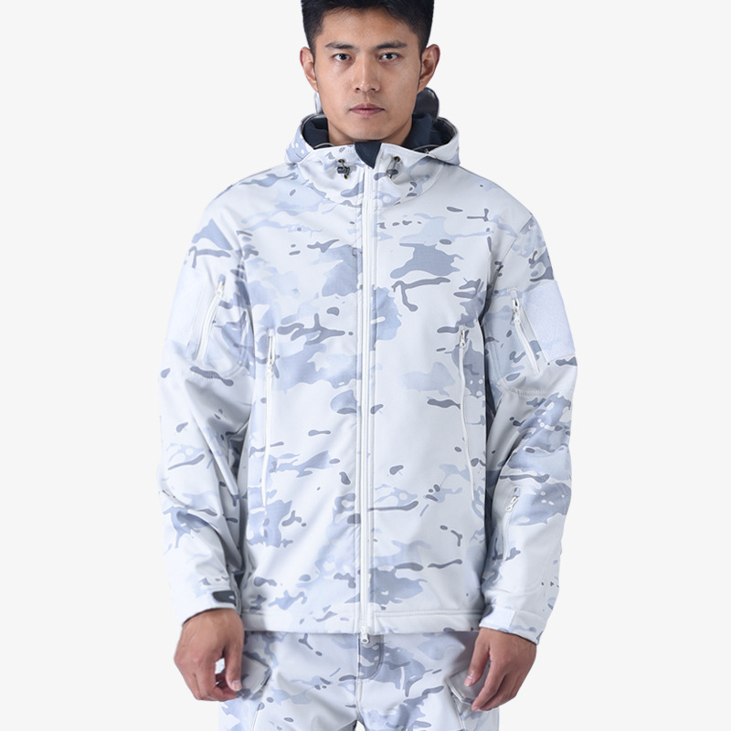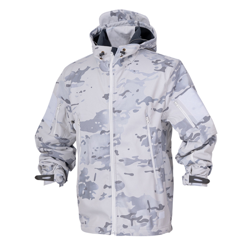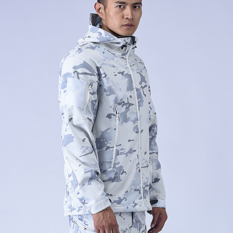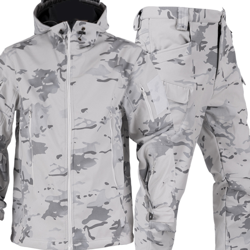 Снежный камуфляж Штурмовые штаны Трансграничная акула шкура тактическая куртка плюс бархат утолщенные подмышки молнии