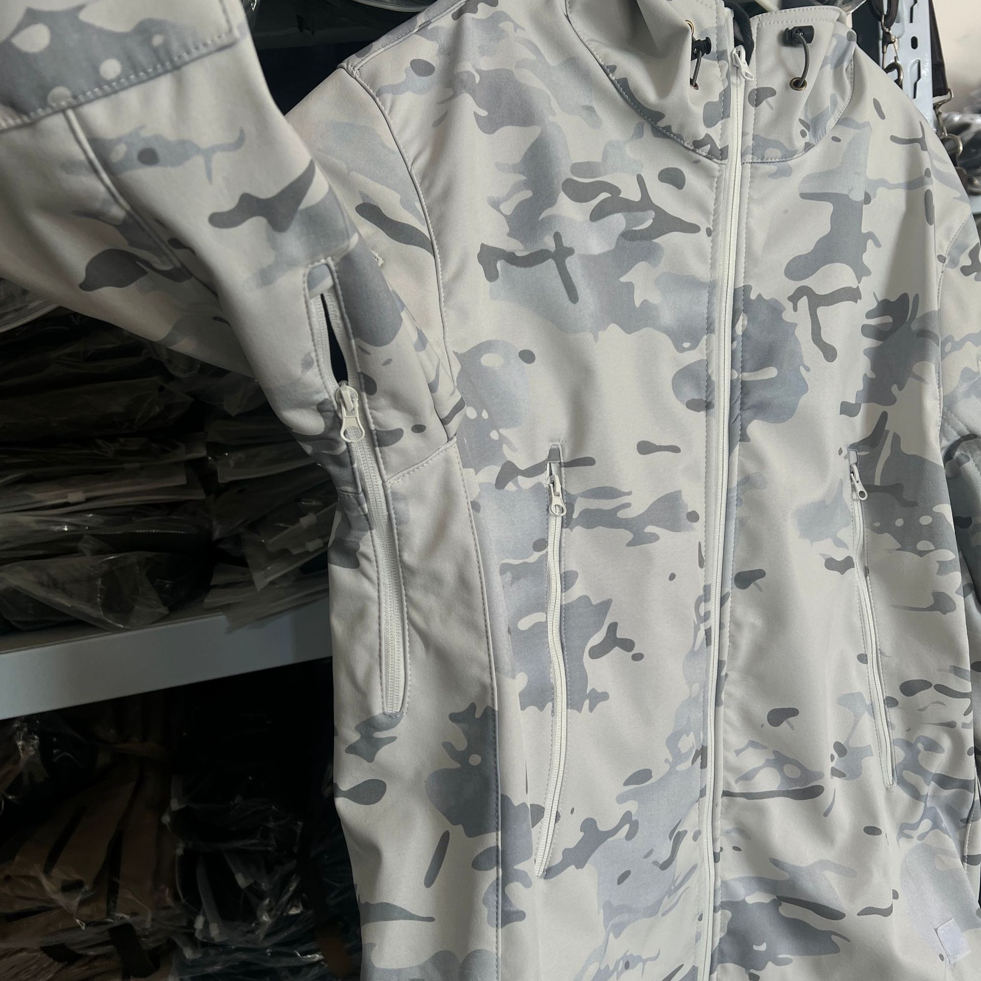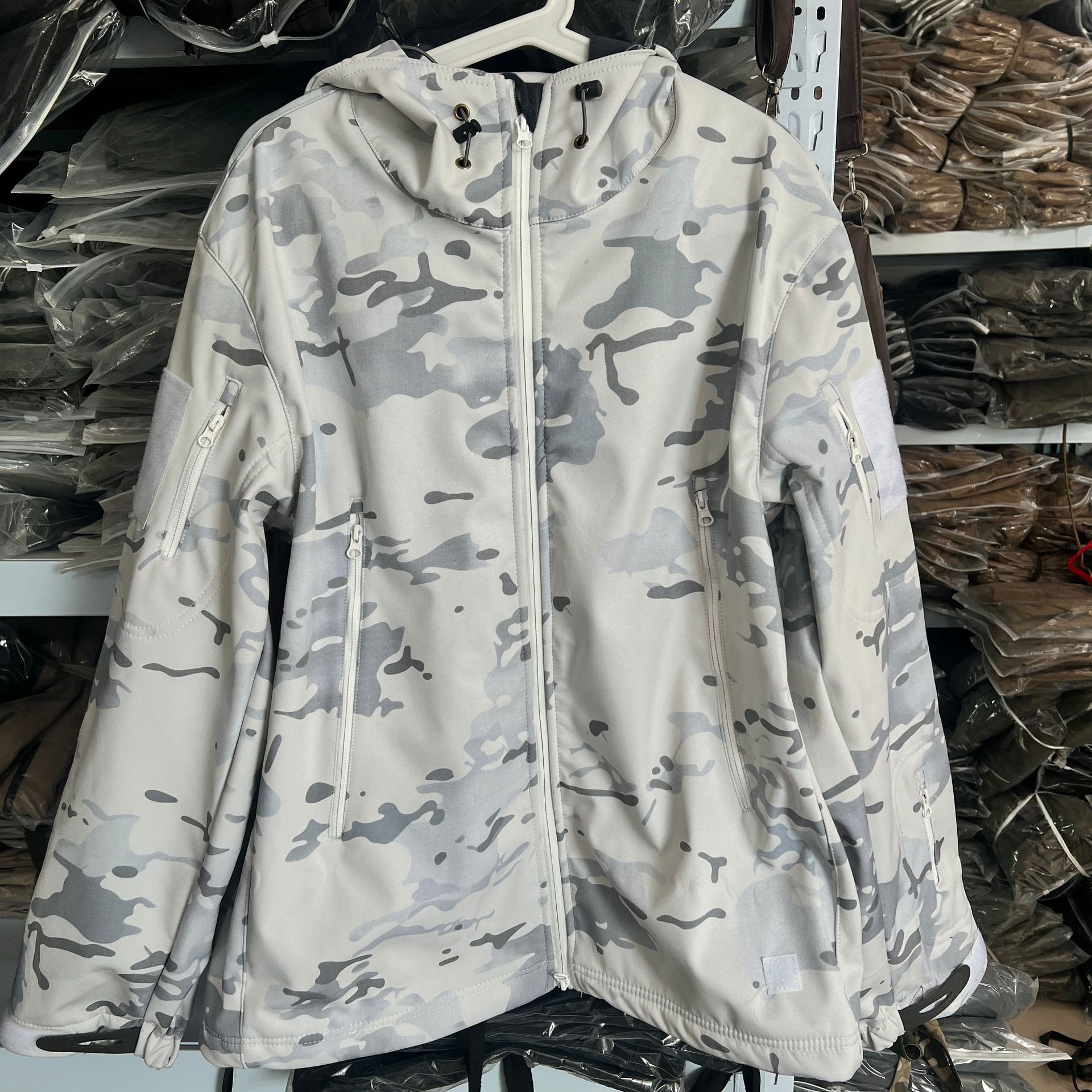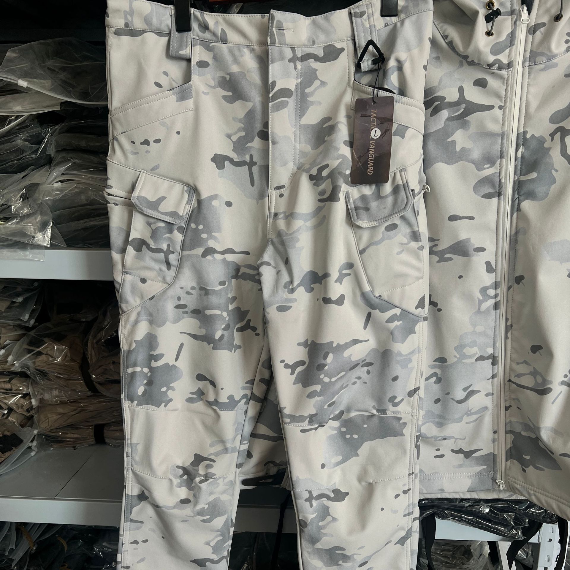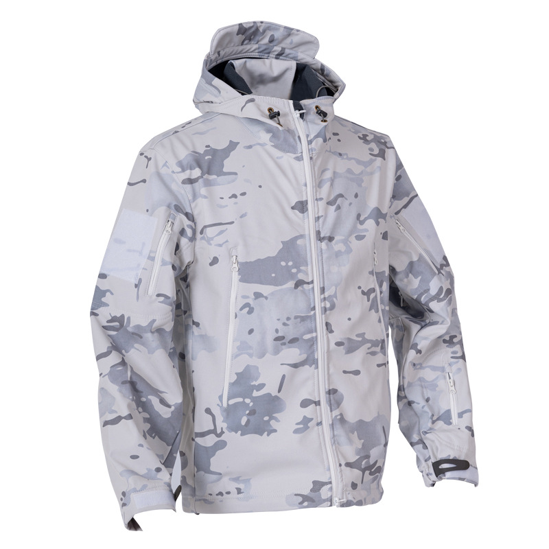 Снежный камуфляж Штурмовые штаны Трансграничная акула шкура тактическая куртка плюс бархат утолщенные подмышки молнии