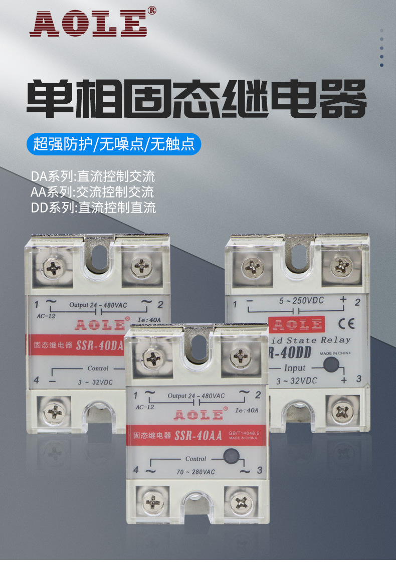 Оптовая продажа Aole SSR полный спектр 2540DA60A80100A однофазное твердотельное реле постоянного тока переменного тока 12 В 24 В