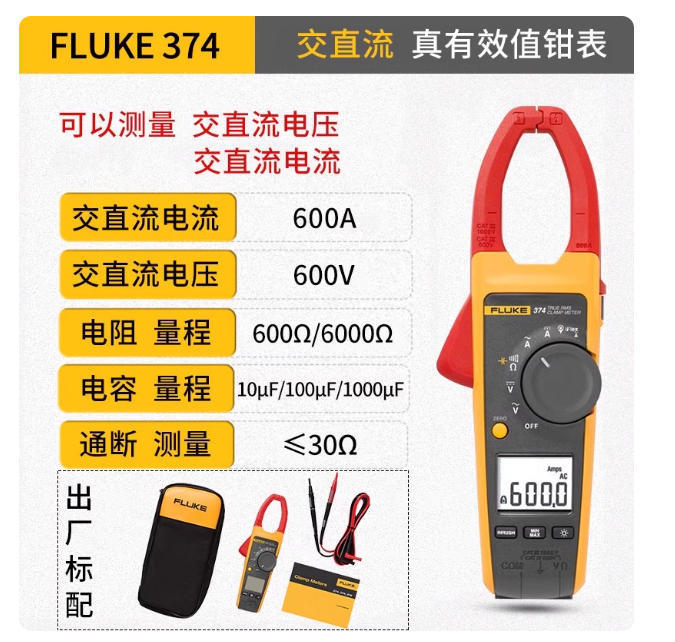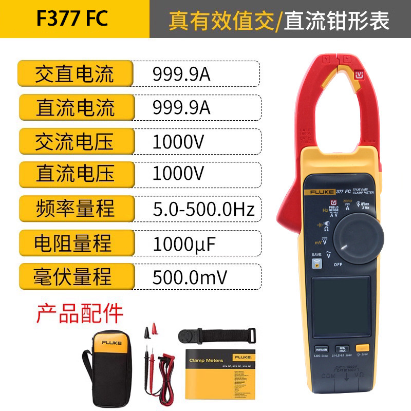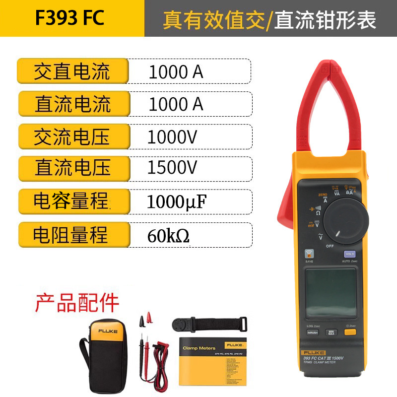Измеритель тока Fluke 393FC (измерение переменного/постоянного тока) для электриков и тестирования фотоэлектрических станций (совместим с 376/375/374FC/381)