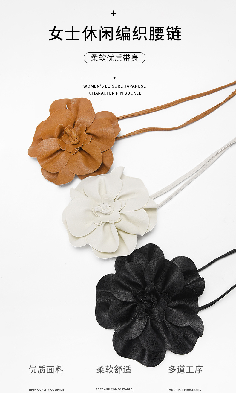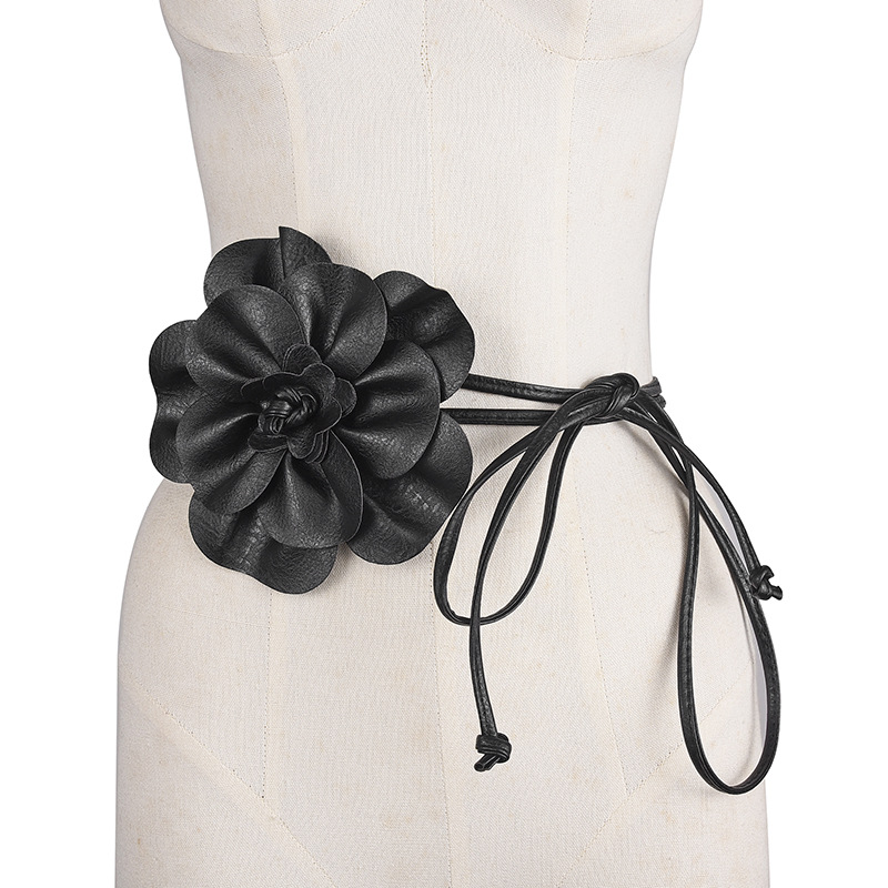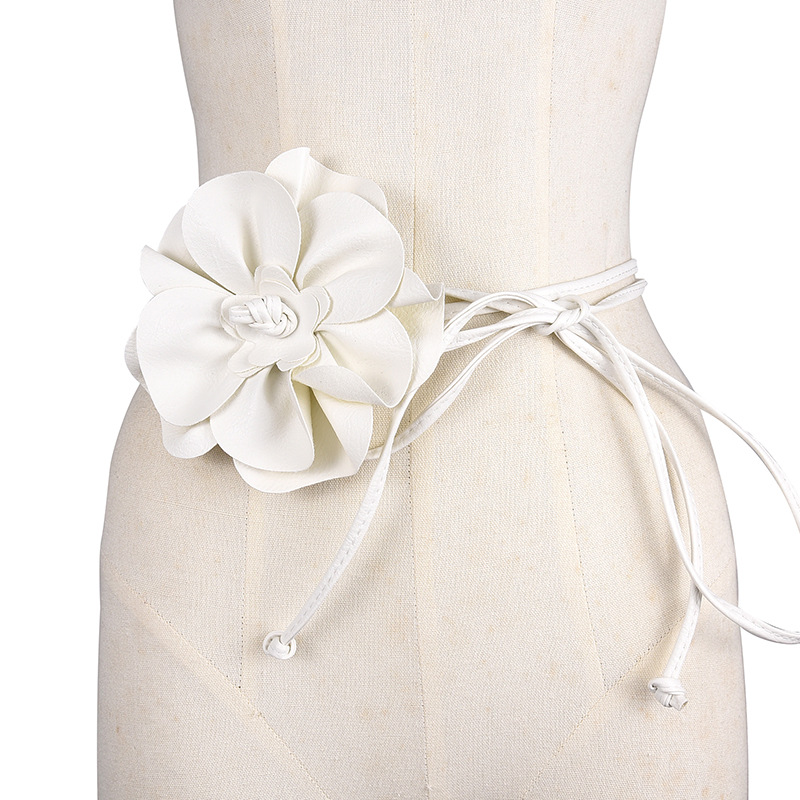 Новый pu кожаный большой цветок талия веревка богемный стиль декоративный ремень с бантом длинная поясная печать