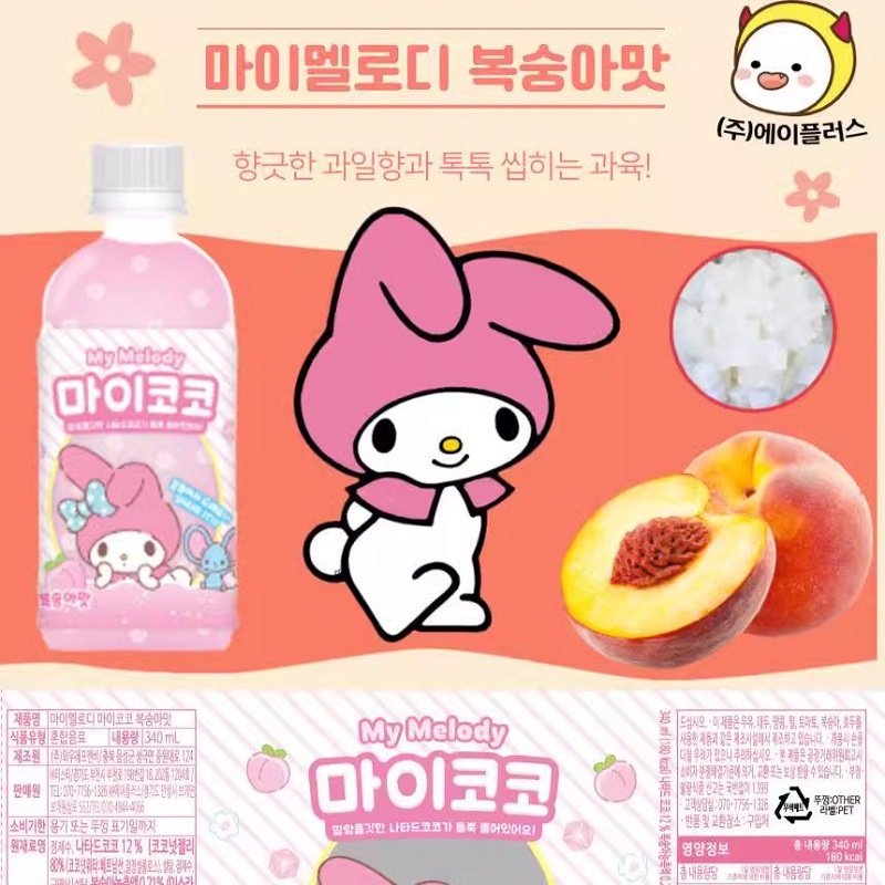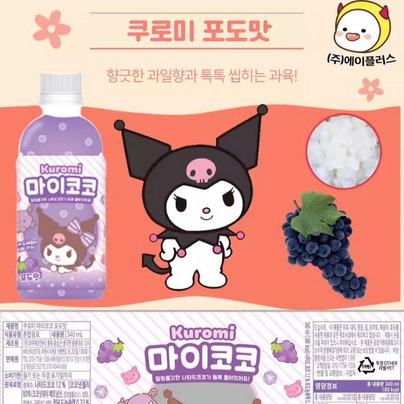 Корейский мини-маркет того же Санрио фруктовый напиток Куломи виноград персик ананас Кокосовая мякоть напиток милый