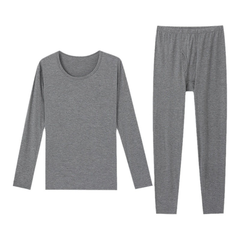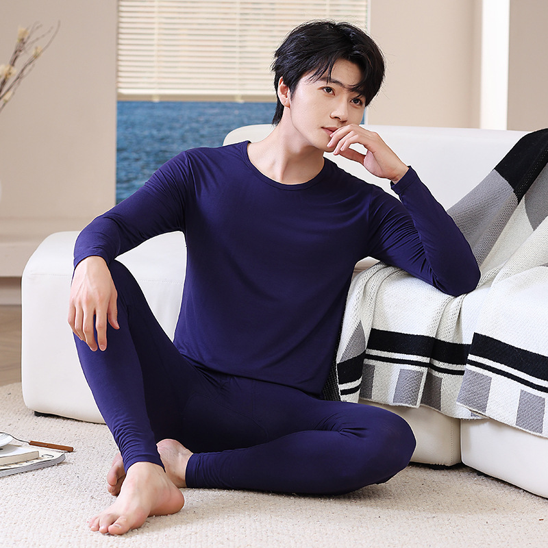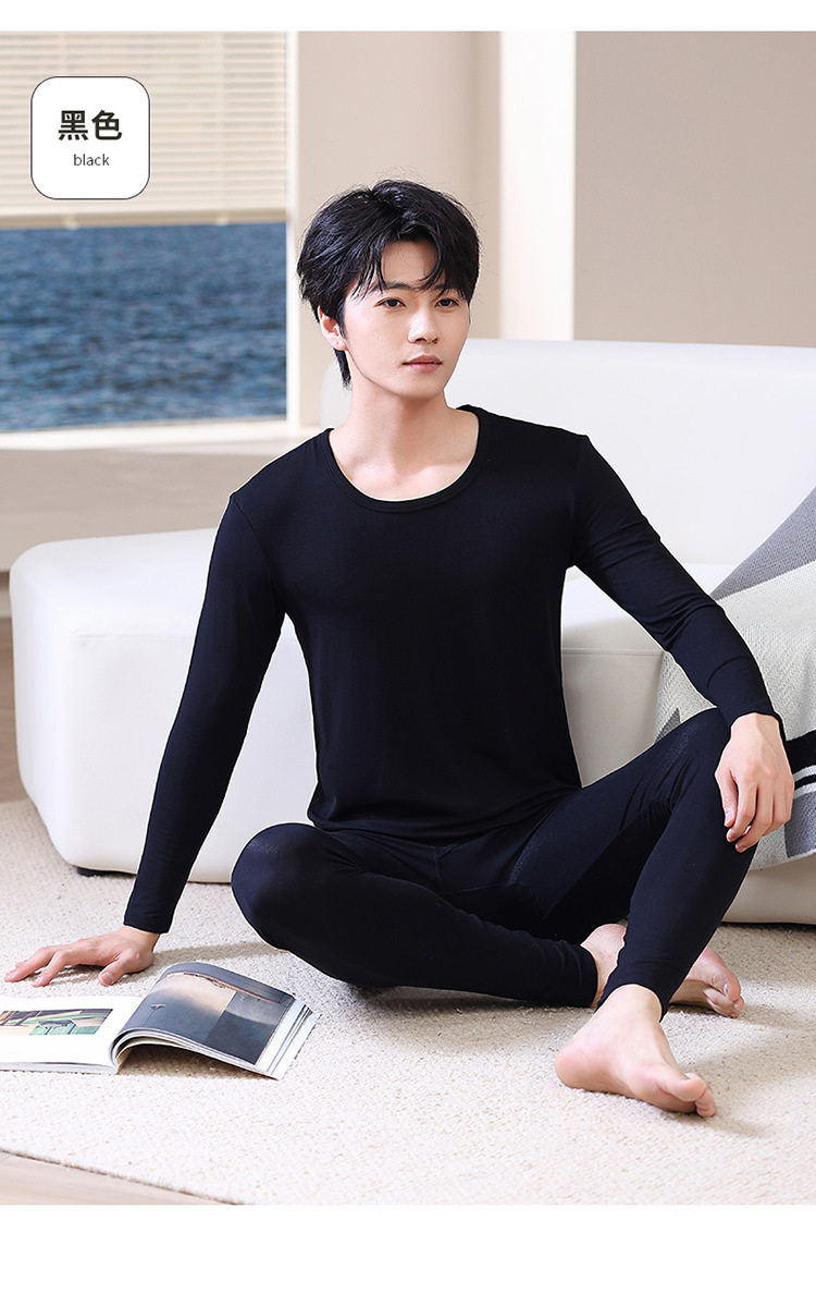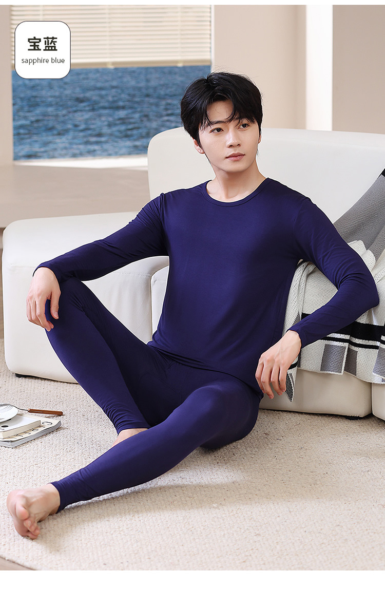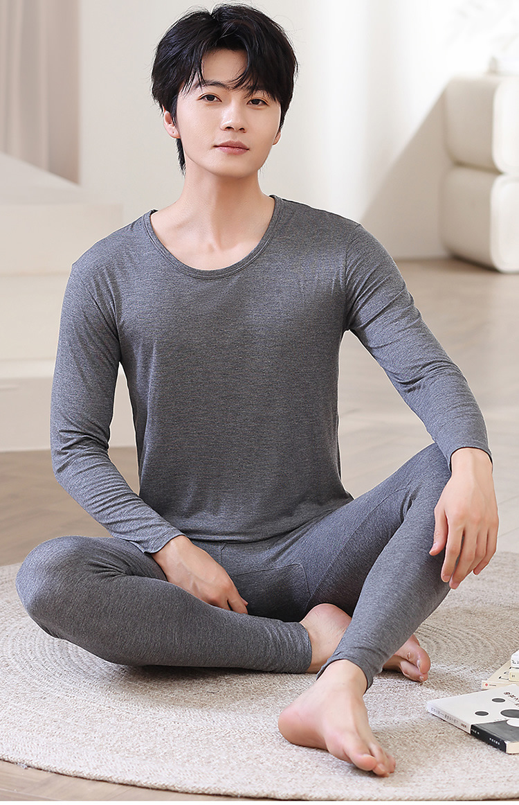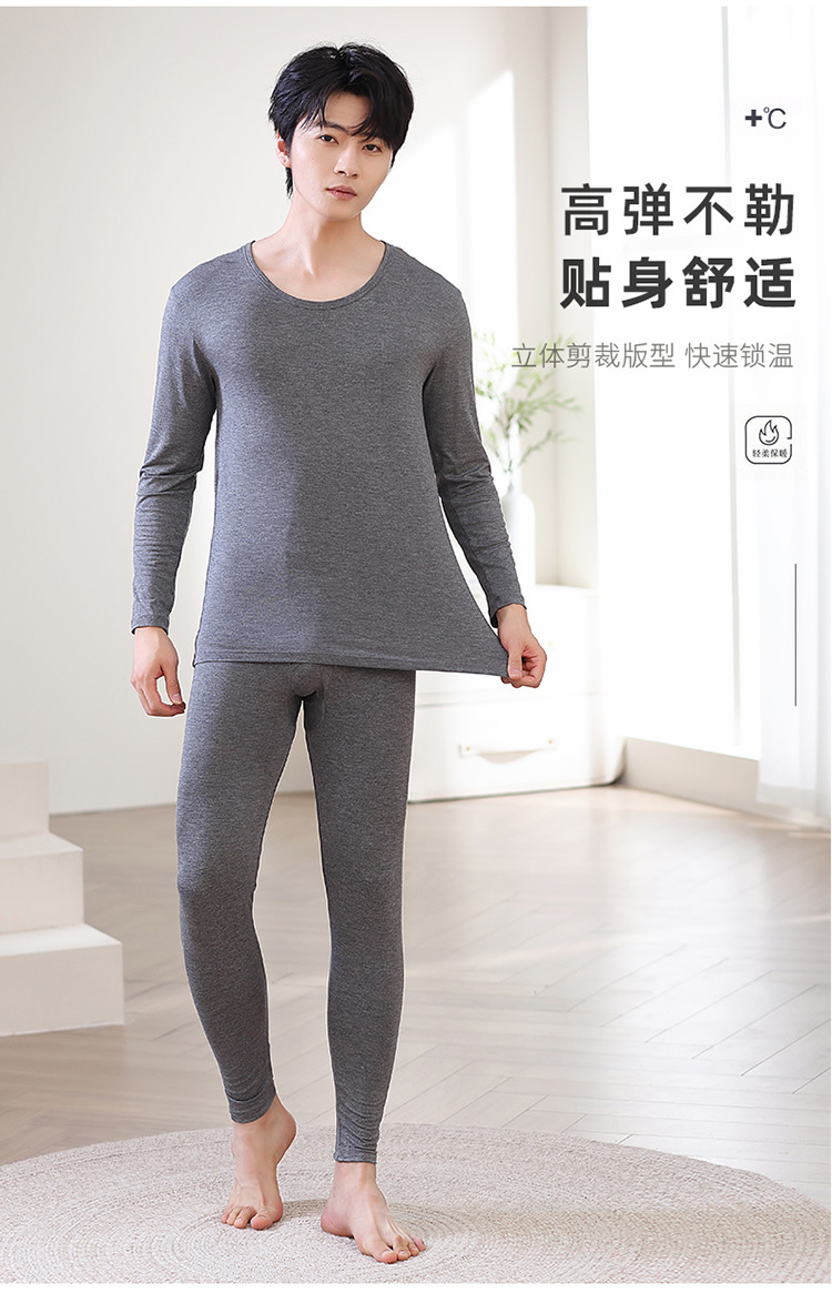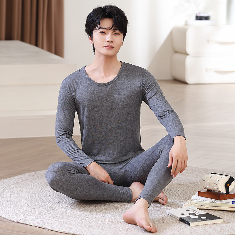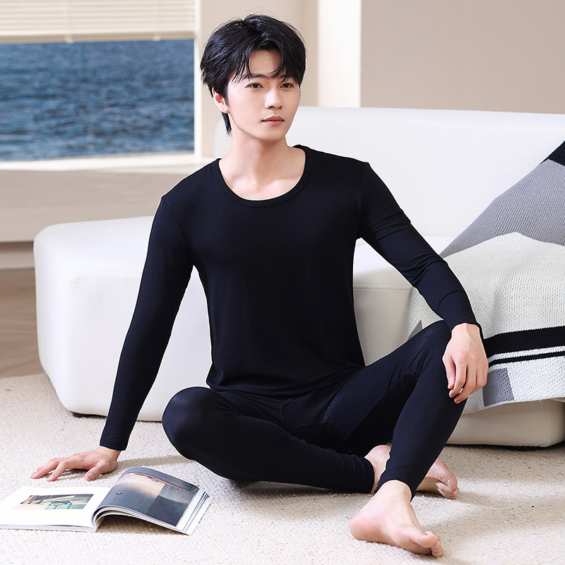 Мужской комплект термобелья из модала, облегающий крой, большой размер, ультратонкий, терморегулирующий, с круглым вырезом.