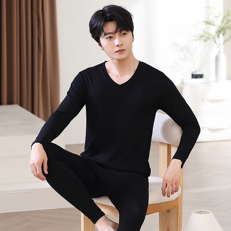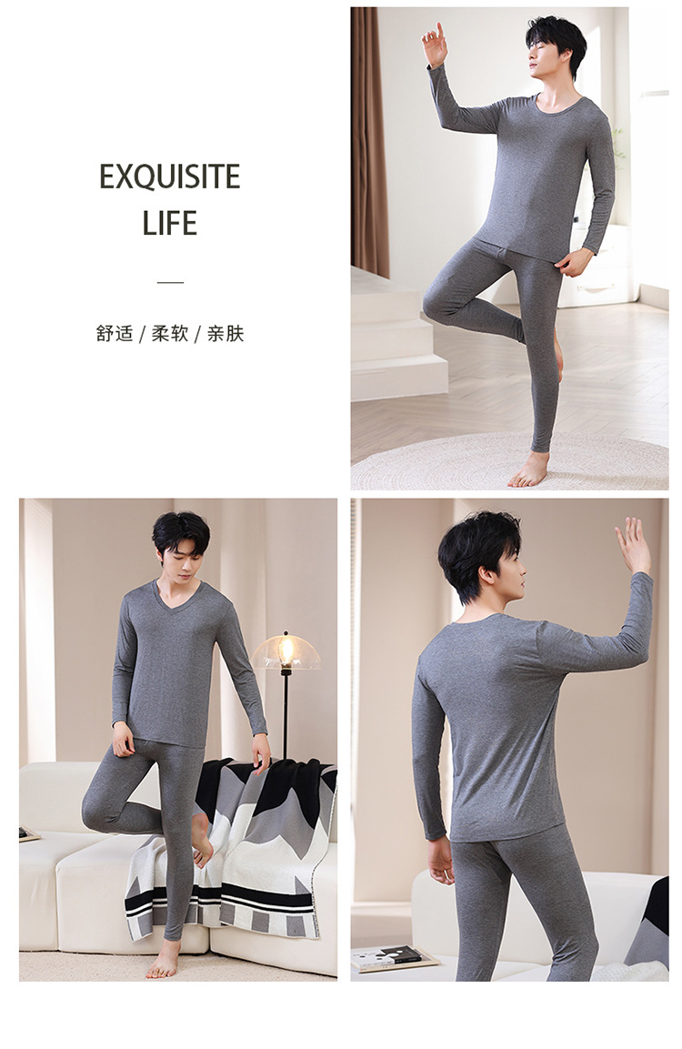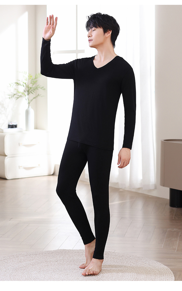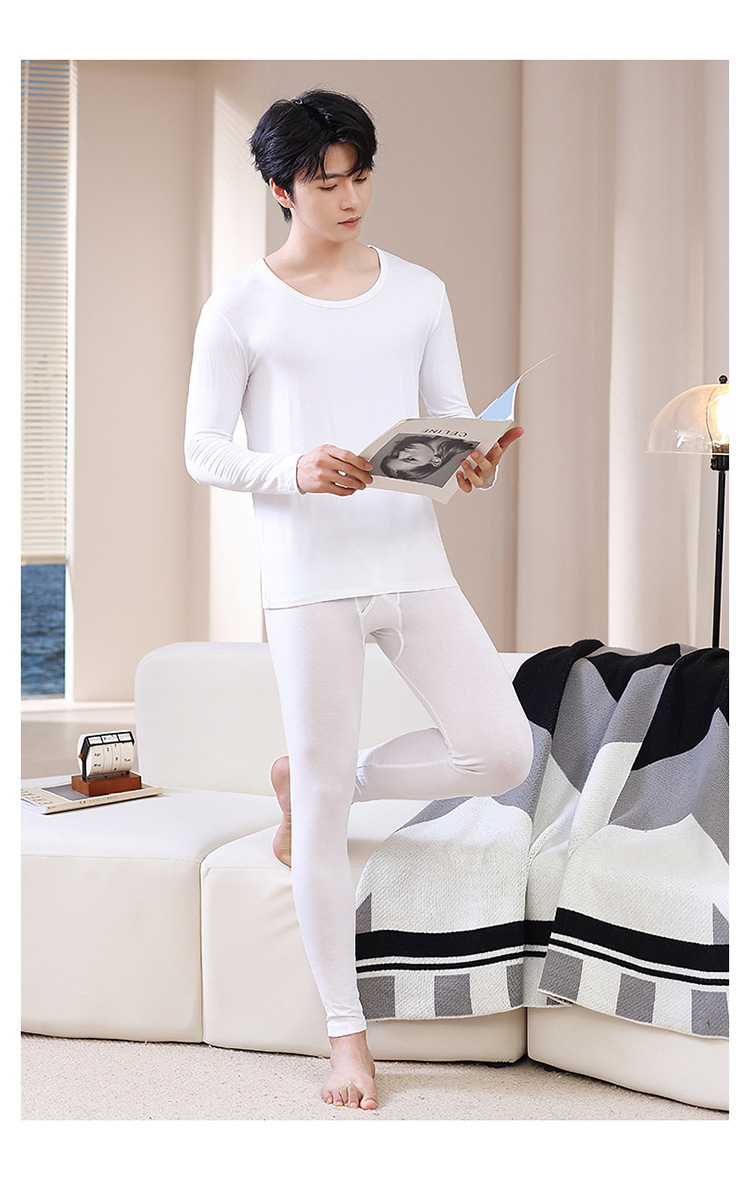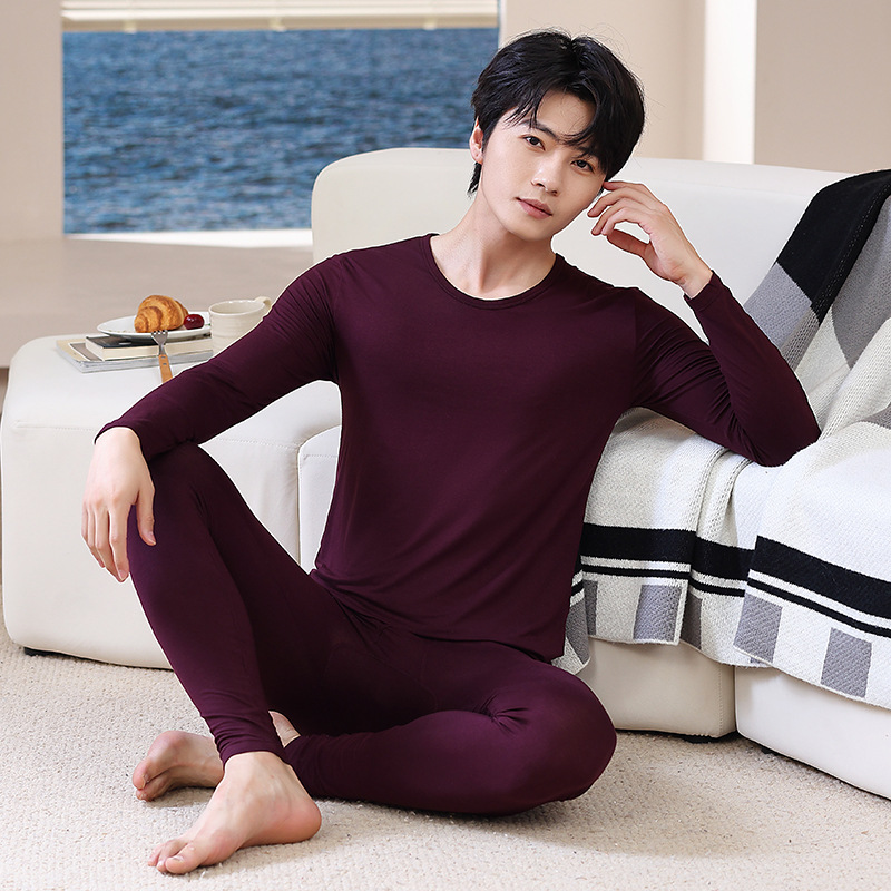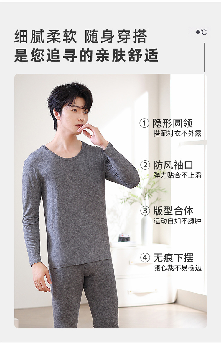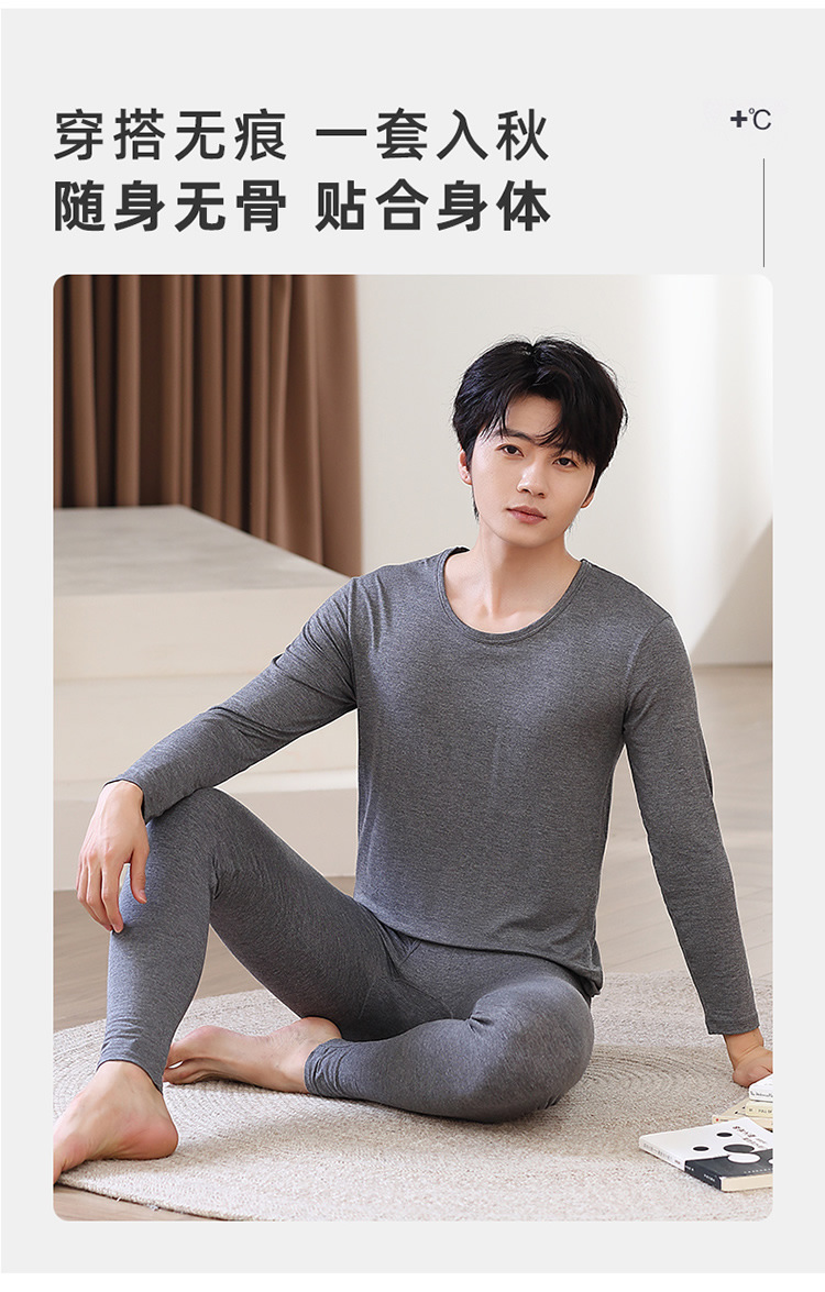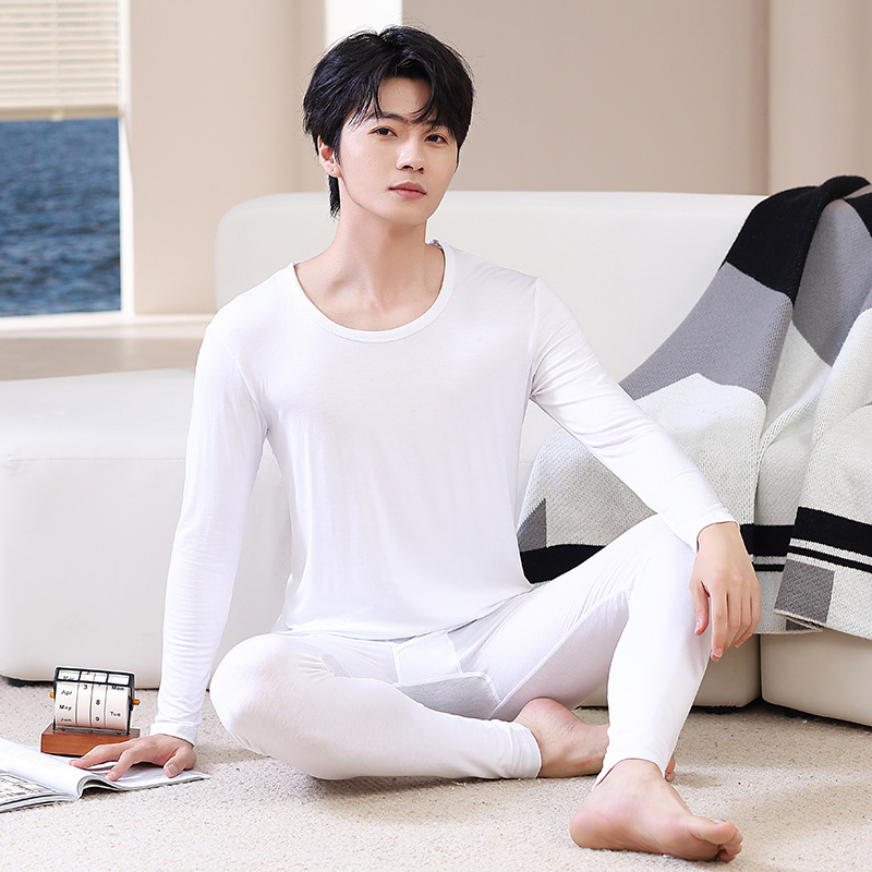 Мужской комплект термобелья из модала, облегающий крой, большой размер, ультратонкий, терморегулирующий, с круглым вырезом.
