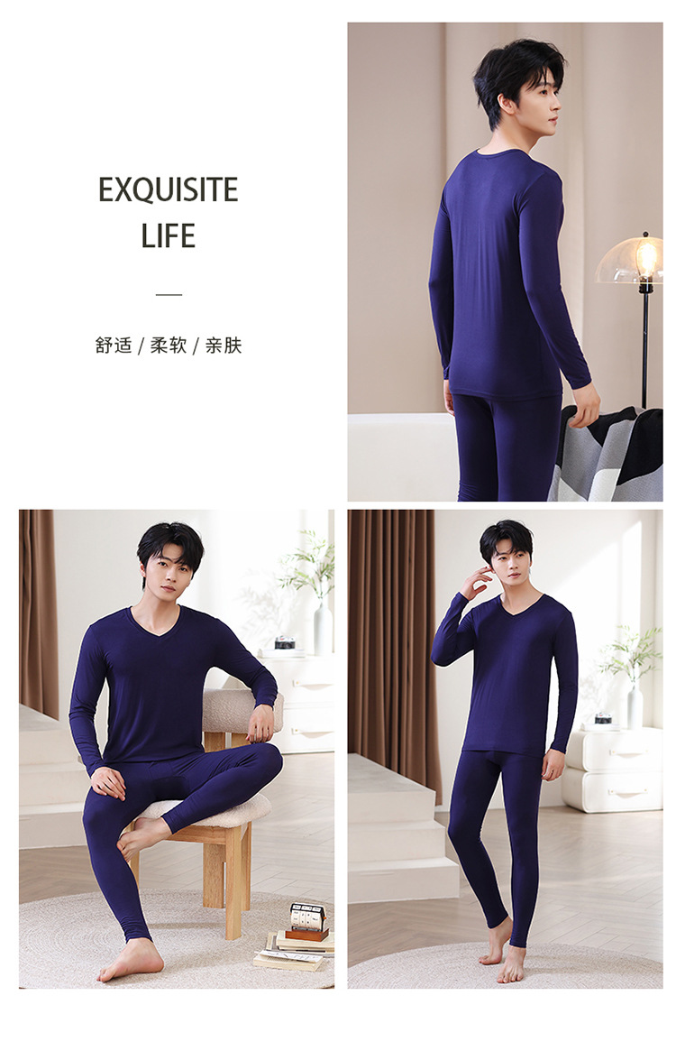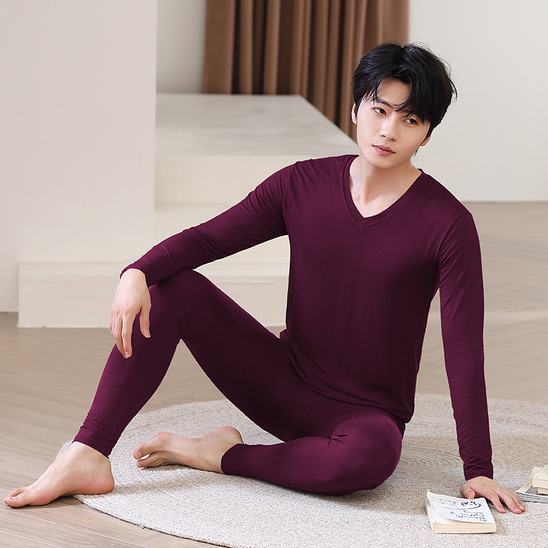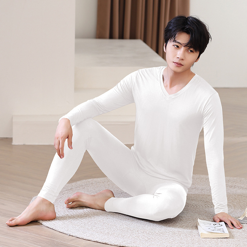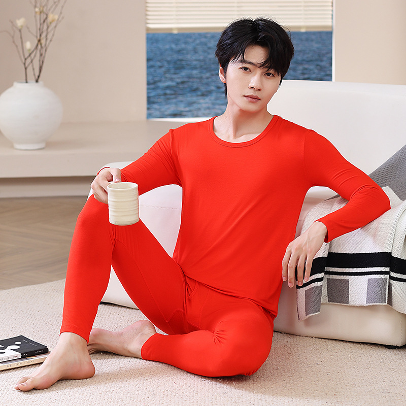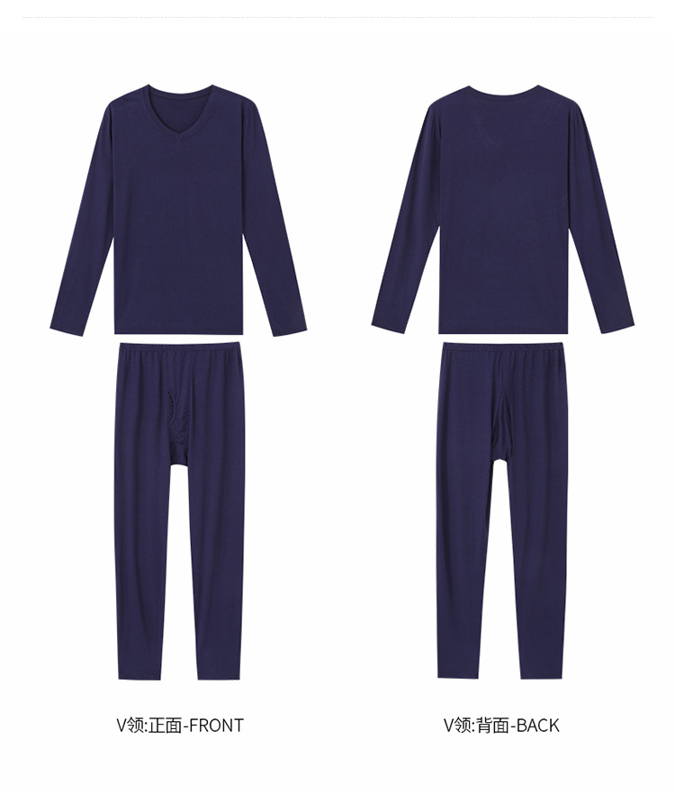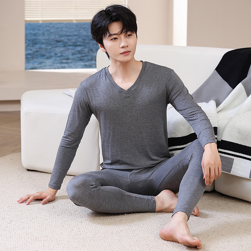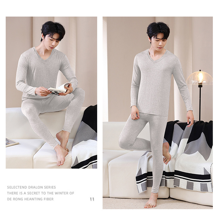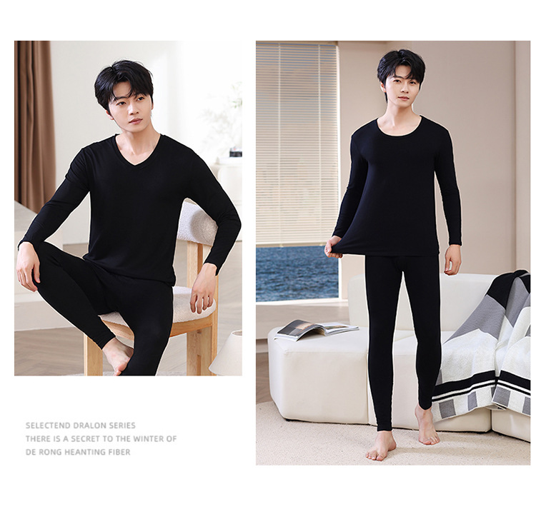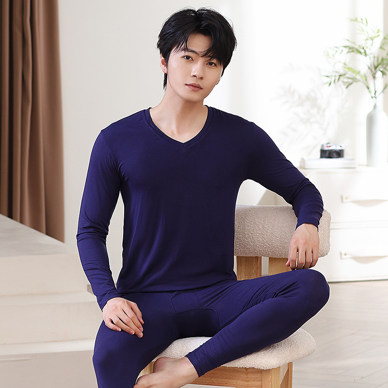 Мужской комплект термобелья из модала, облегающий крой, большой размер, ультратонкий, терморегулирующий, с круглым вырезом.