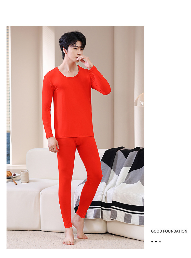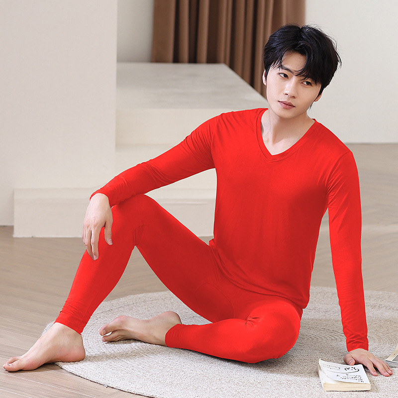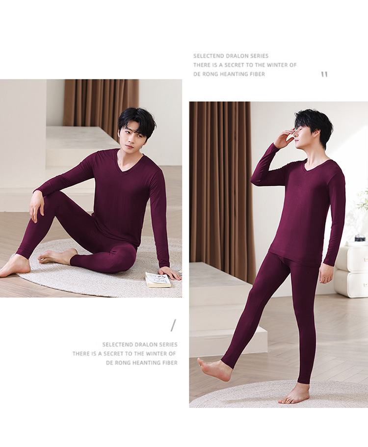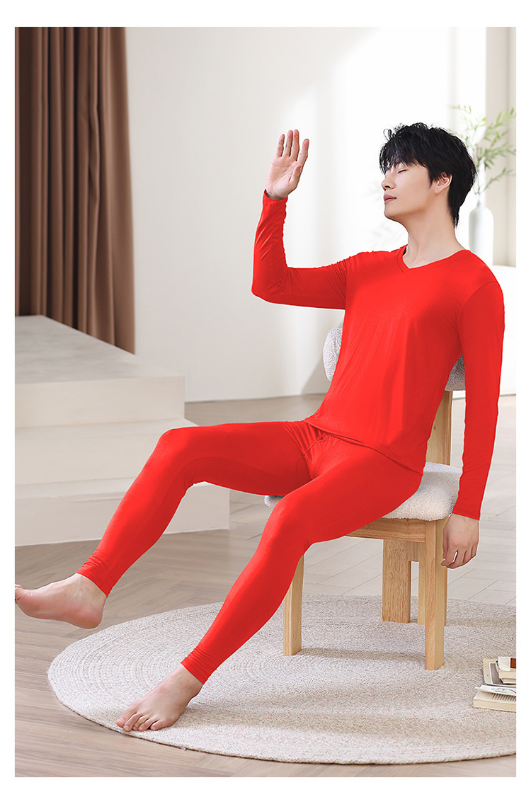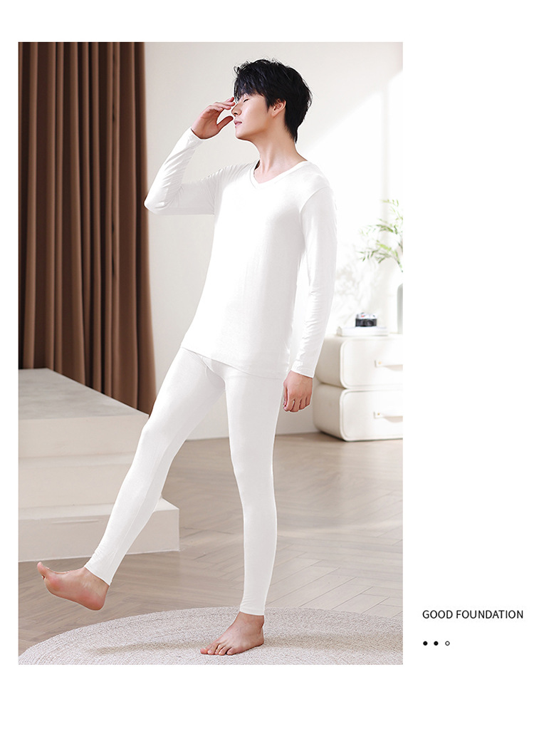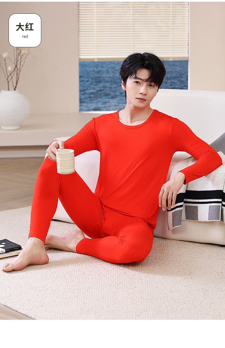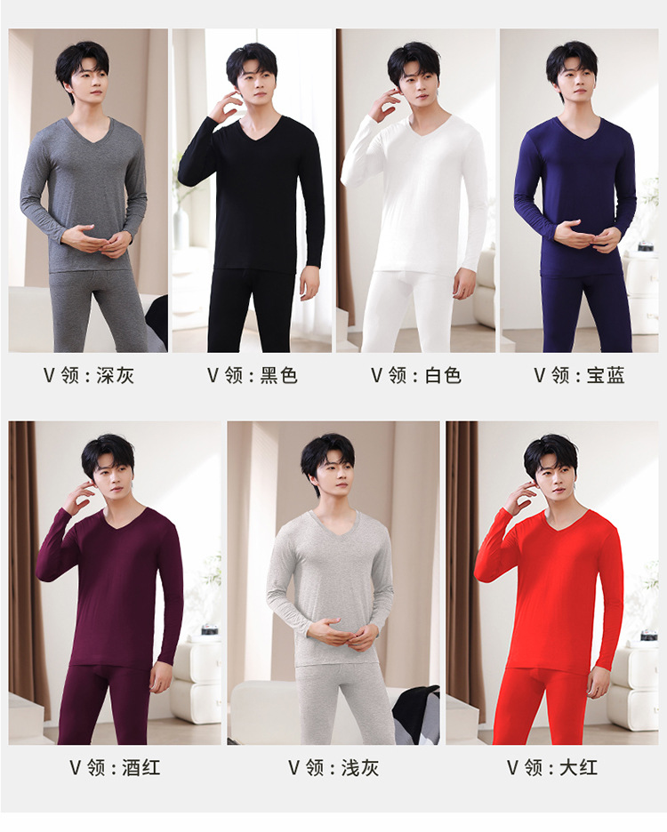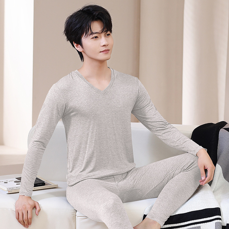 Мужской комплект термобелья из модала, облегающий крой, большой размер, ультратонкий, терморегулирующий, с круглым вырезом.