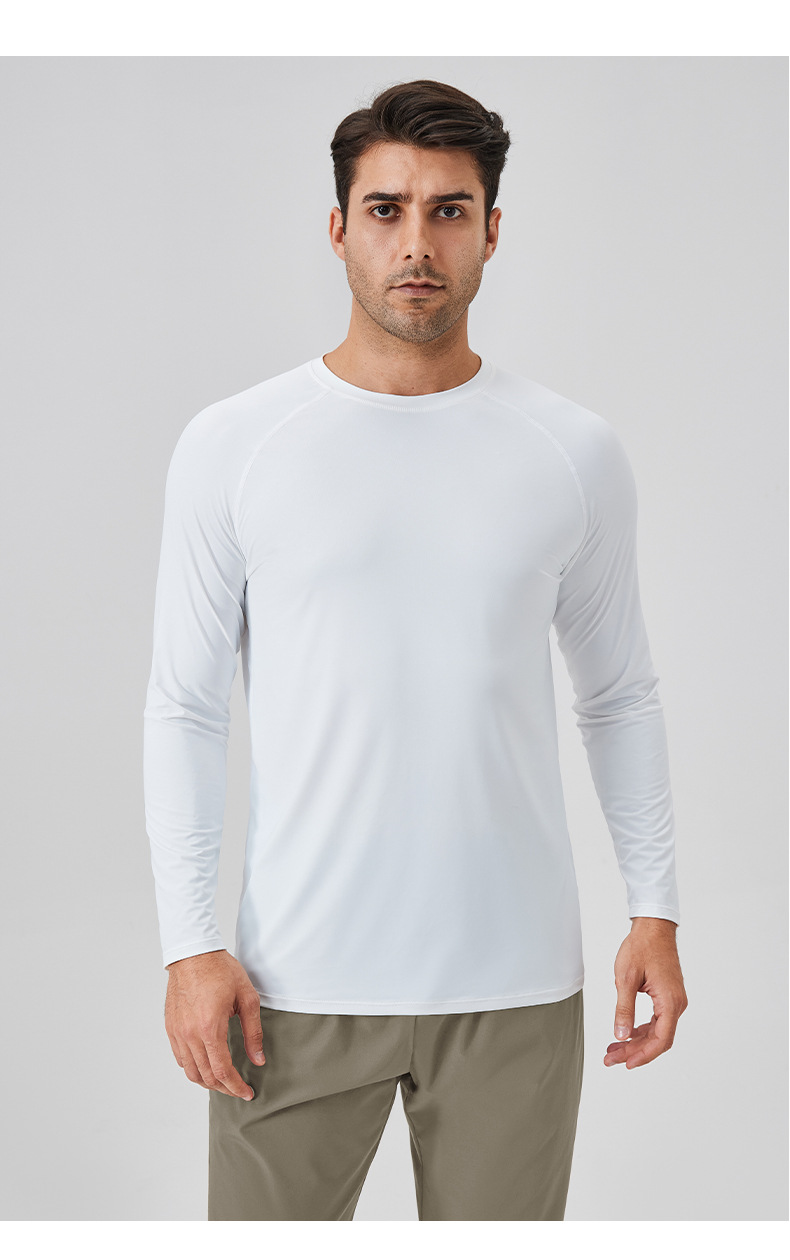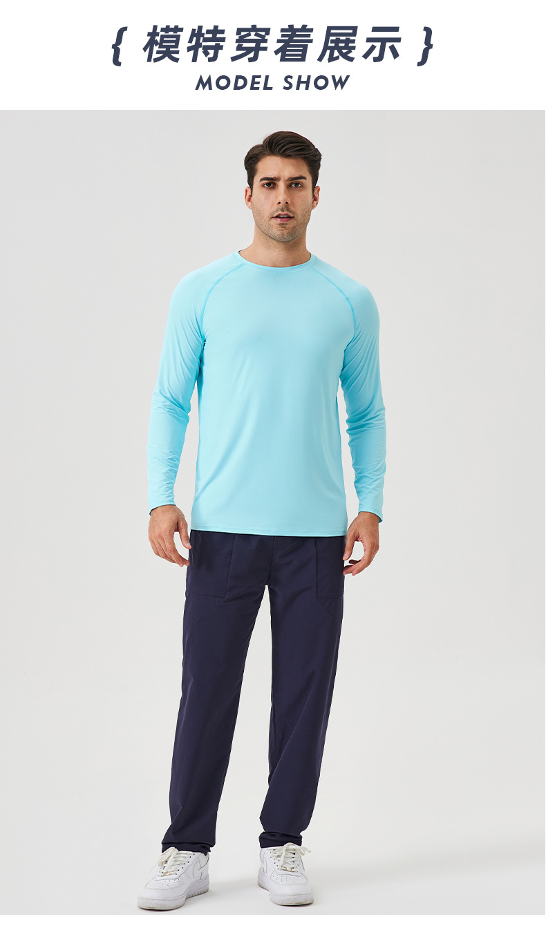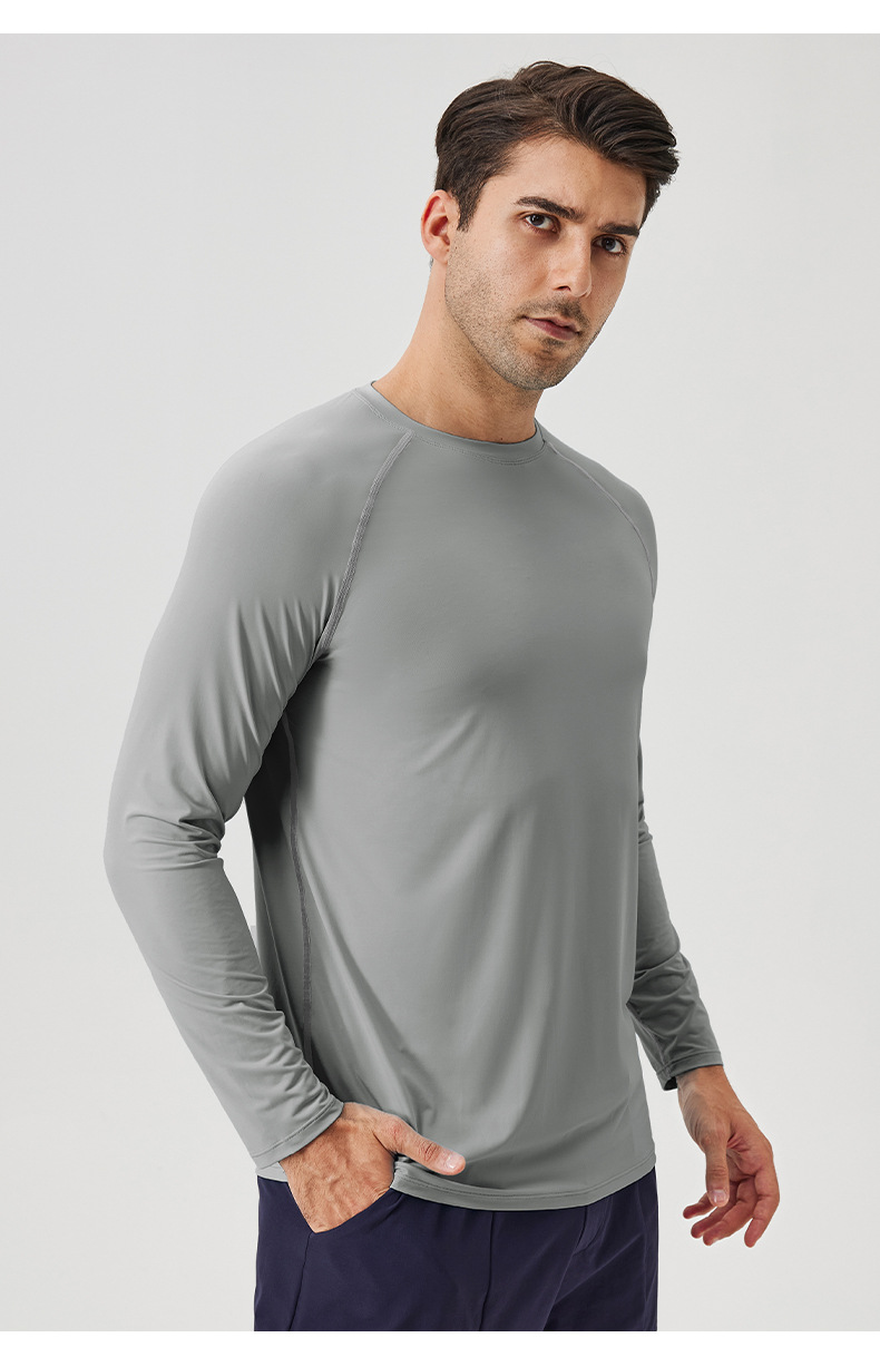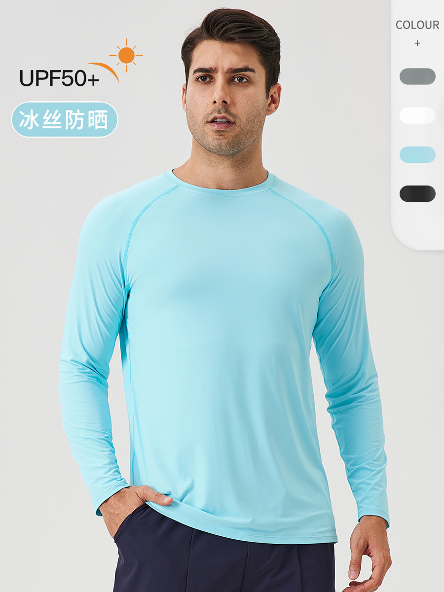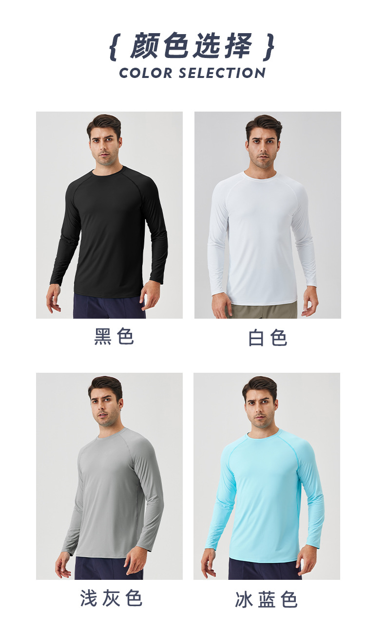 Спортивная футболка с длинными рукавами для мужского ледяного шелка свободная дышащая прохладная на открытом воздухе фитнес-топ с длинными рукавами 41520