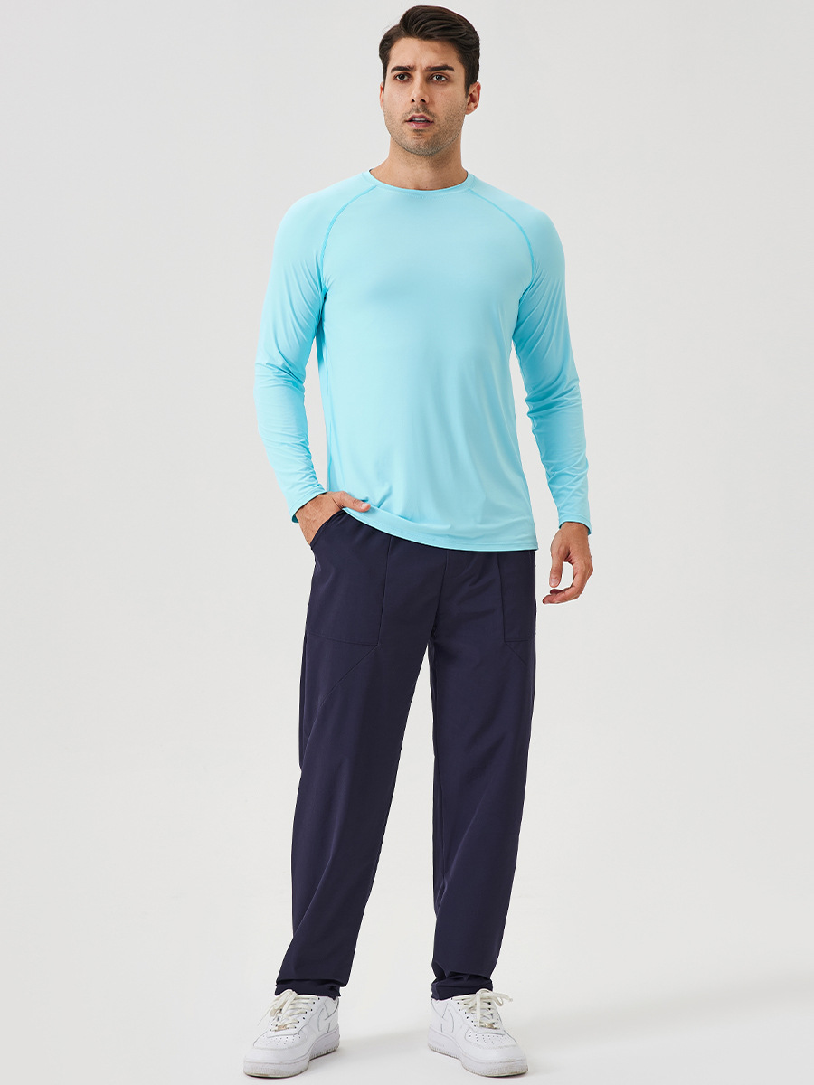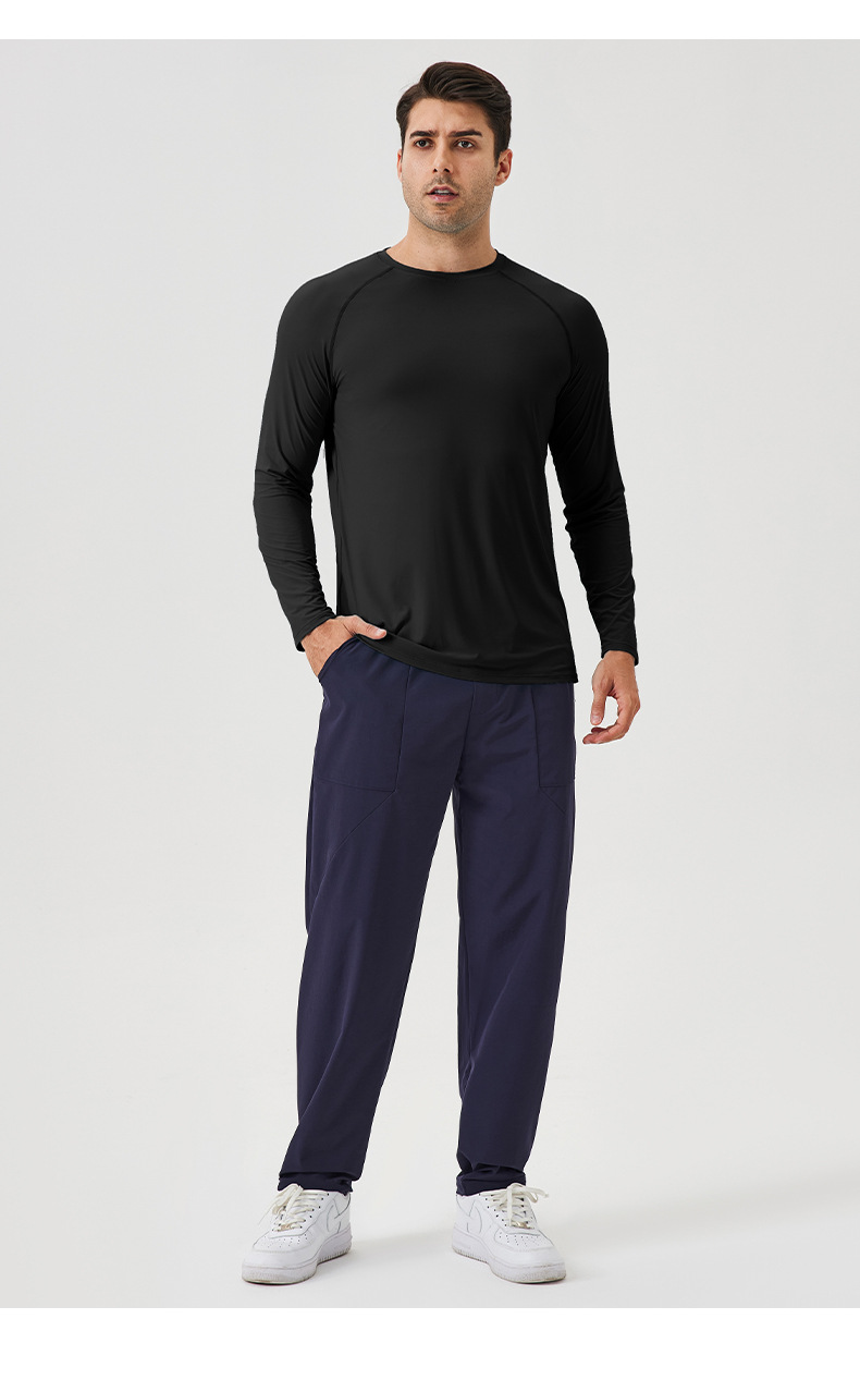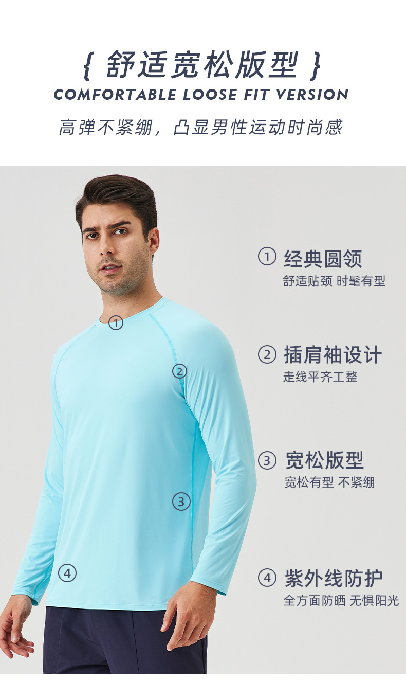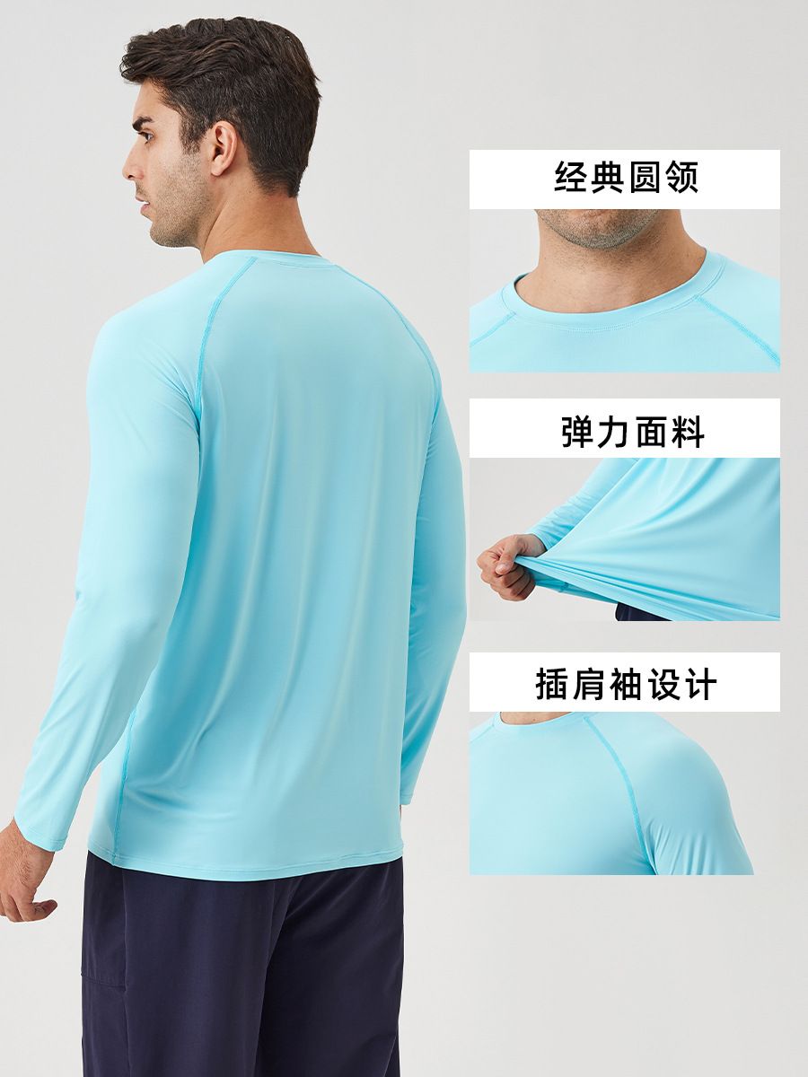 Спортивная футболка с длинными рукавами для мужского ледяного шелка свободная дышащая прохладная на открытом воздухе фитнес-топ с длинными рукавами 41520