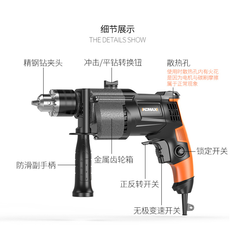 Ударная дрель 220V для домашнего использования большой мощности проводной пистолетный пистолетный сверло многофункциональный электрический дрель электрический инструмент малый электрический поворотный