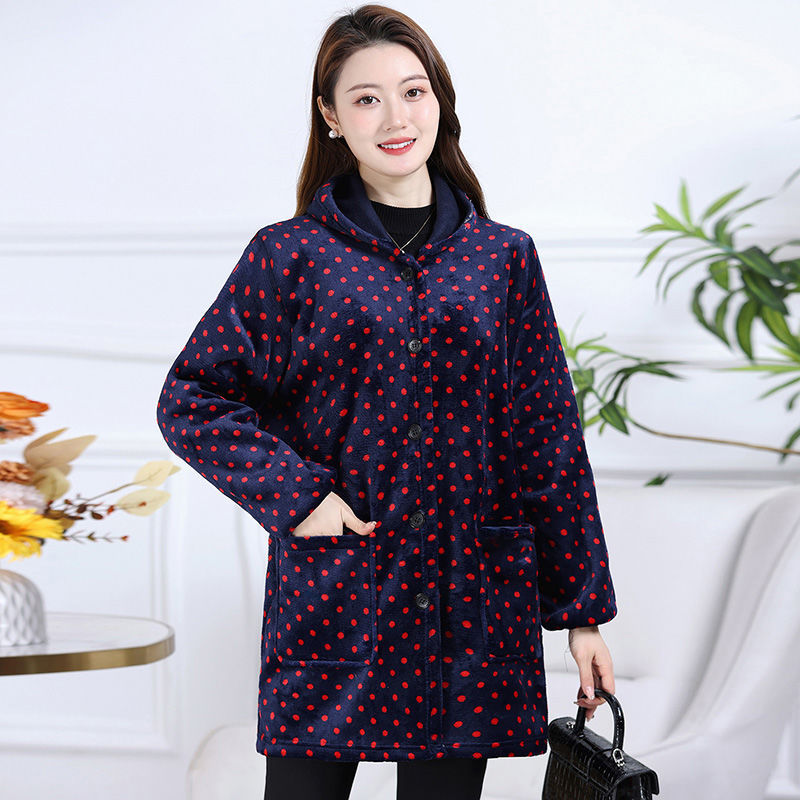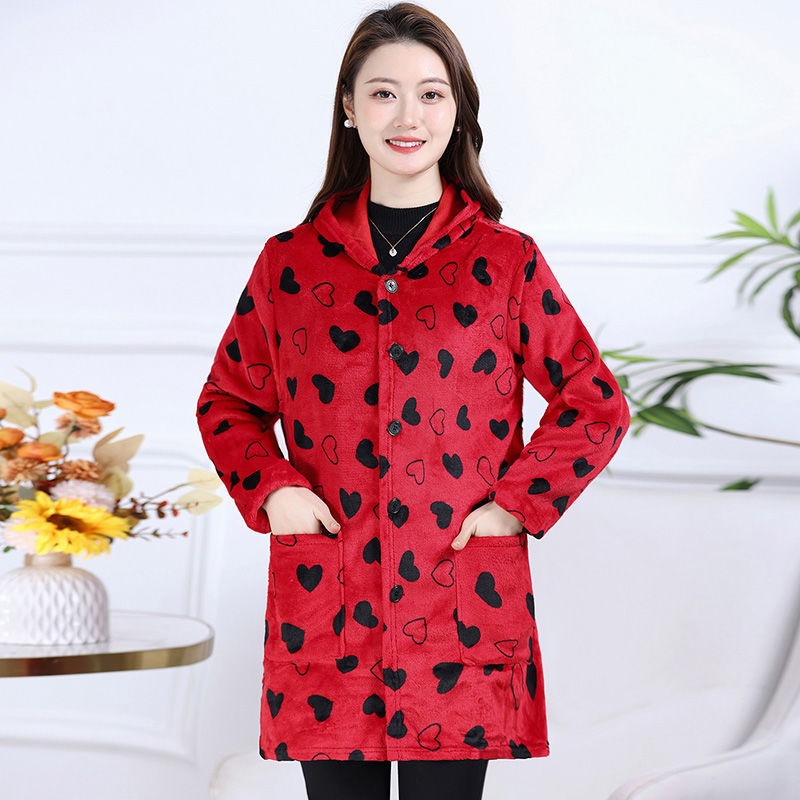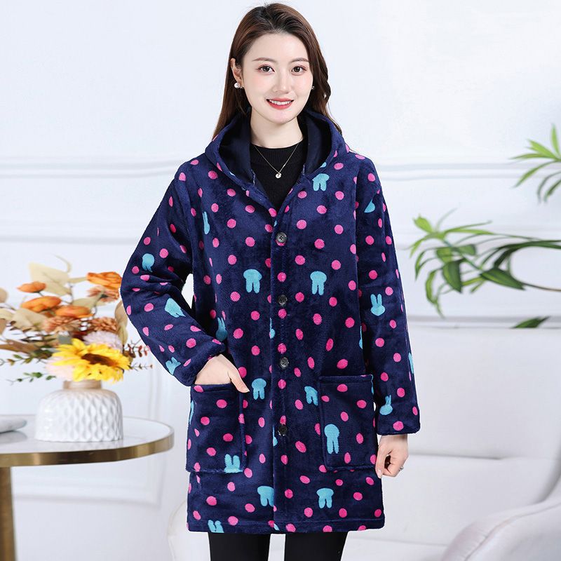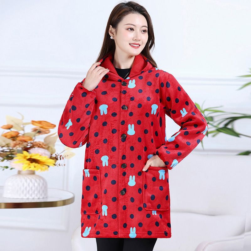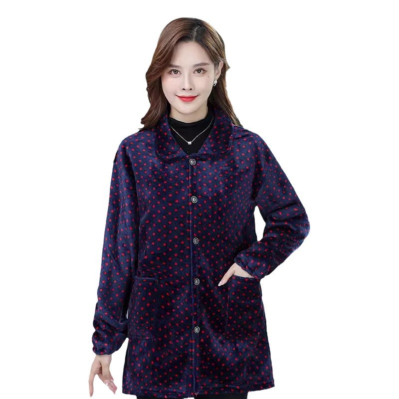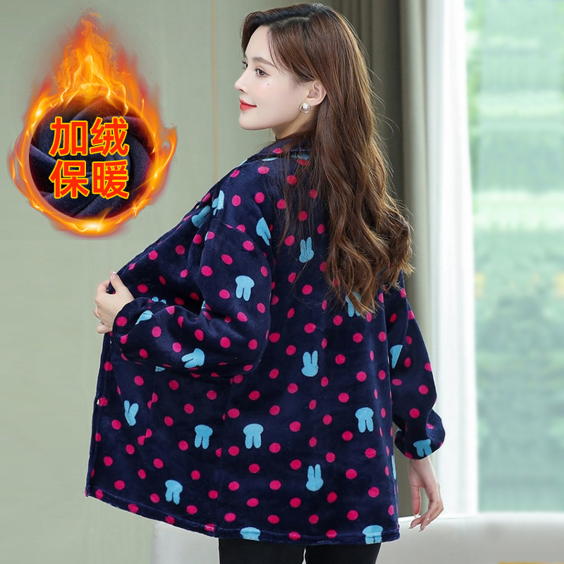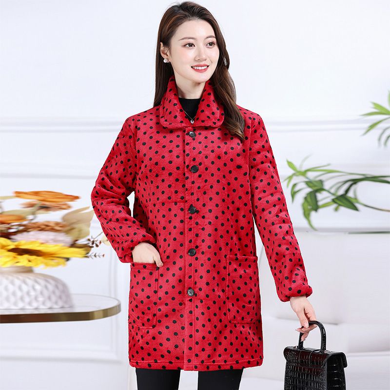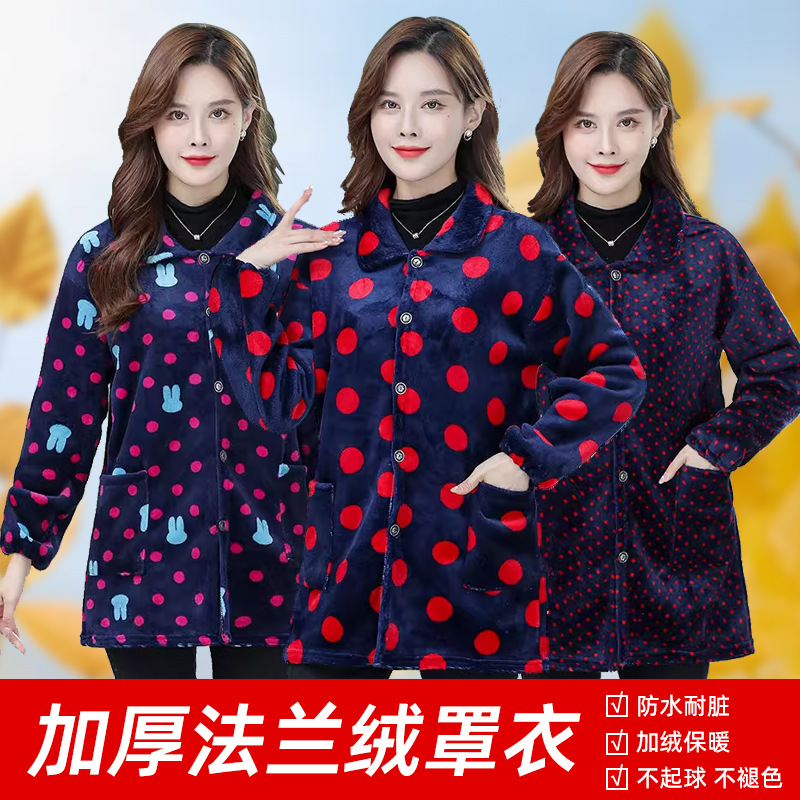 2024 зимний фланелевый плащ женский длинный рукав плюс бархатный толстый халат мама надел кухонный фартук средняя длинная рабочая одежда