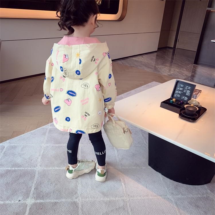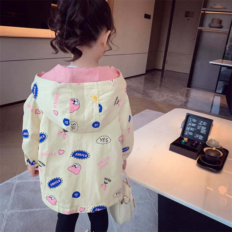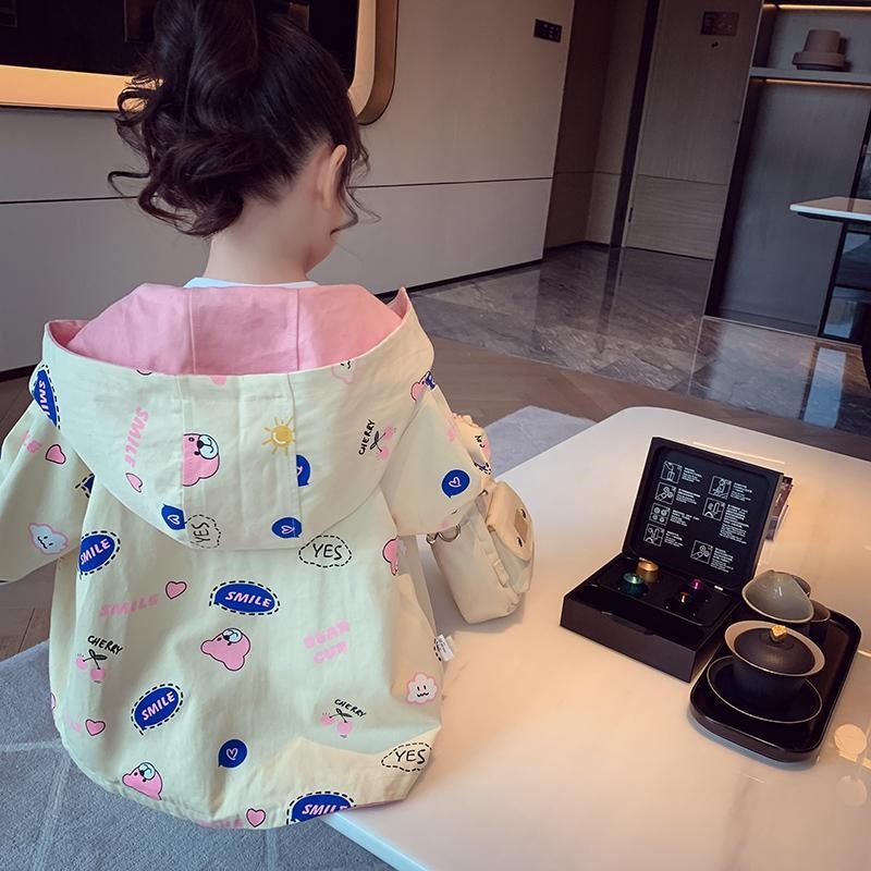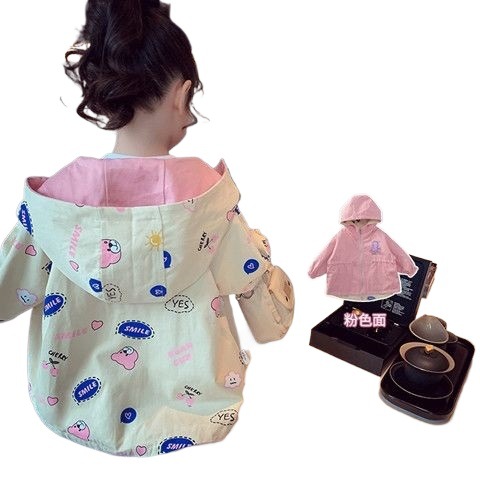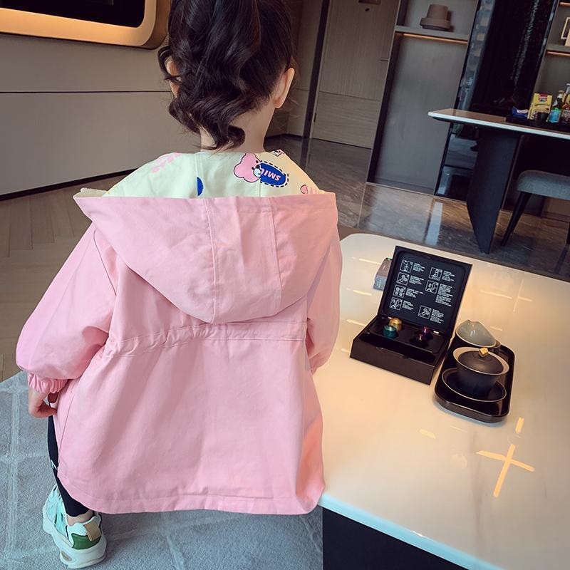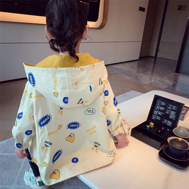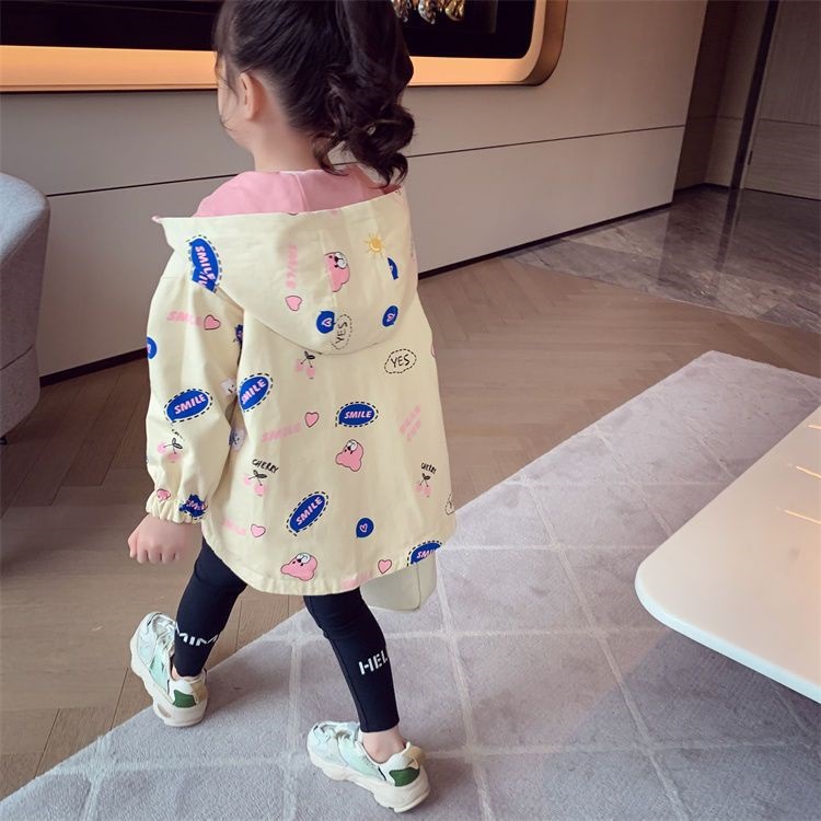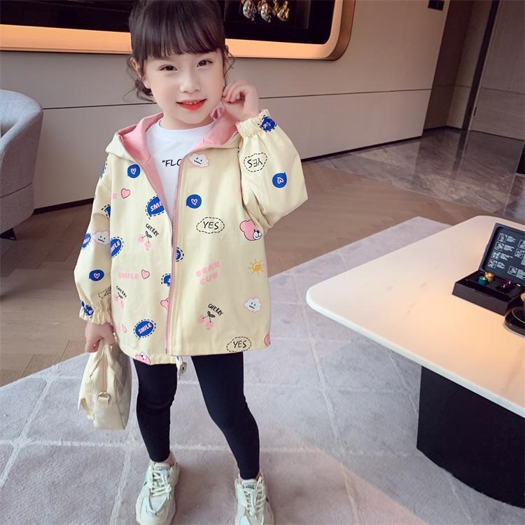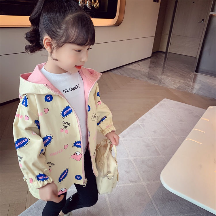 Верхняя одежда для девочек, новинка 2024, детская осенняя одежда, двусторонняя ветровка с героями мультфильмов, модная рубашка средней длины на молнии для маленьких девочек