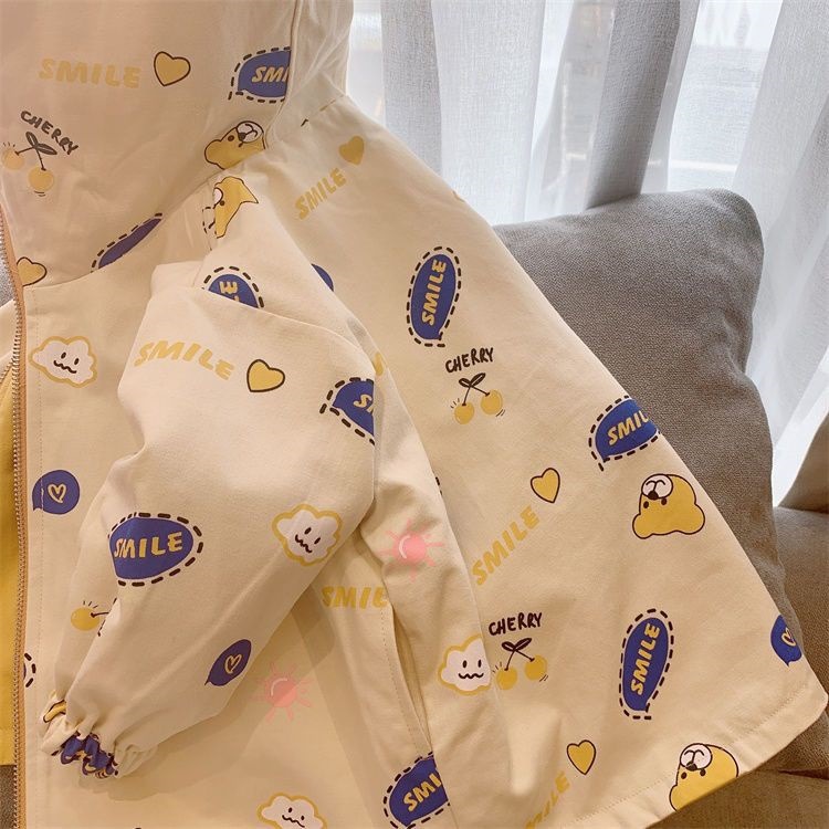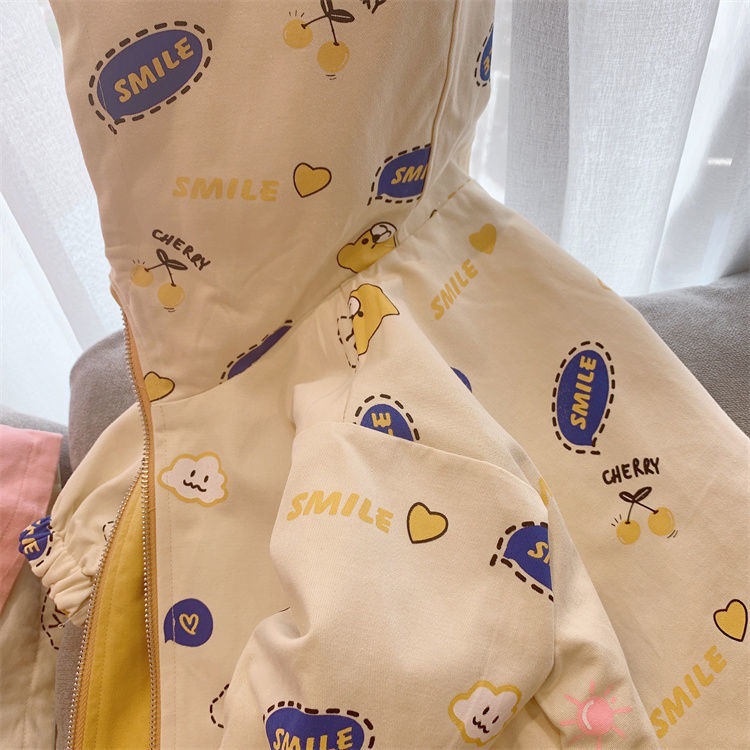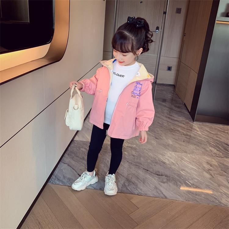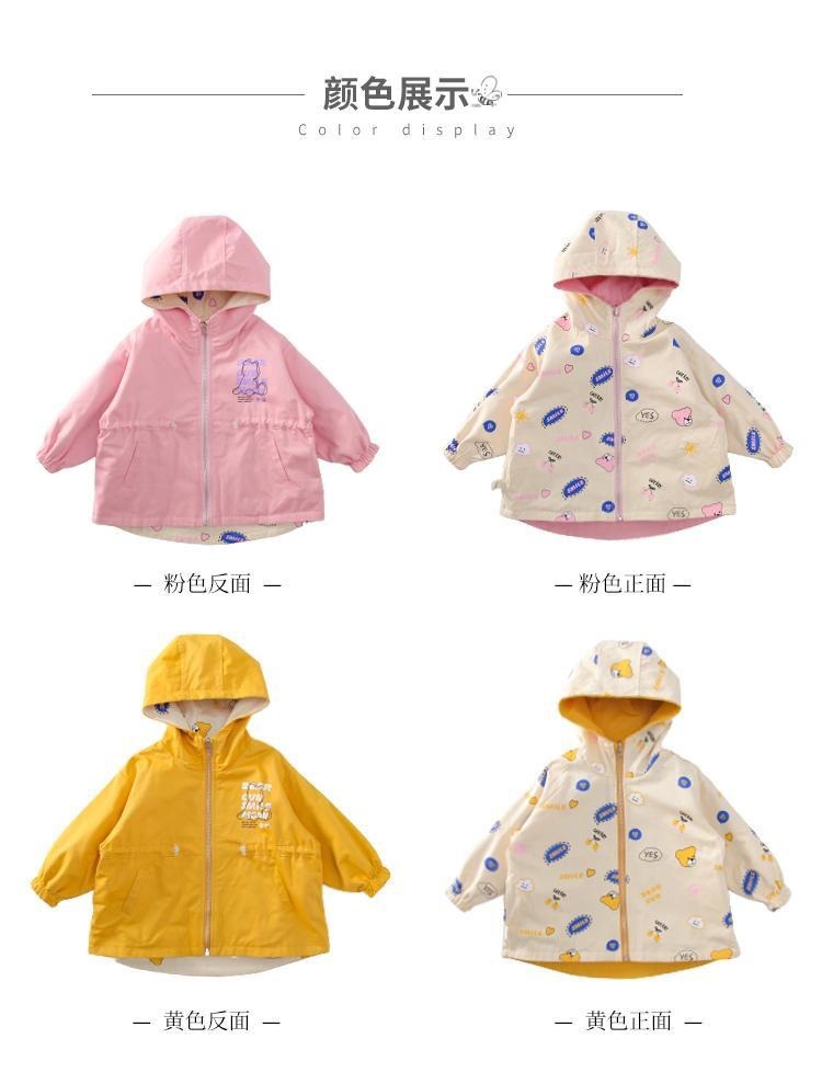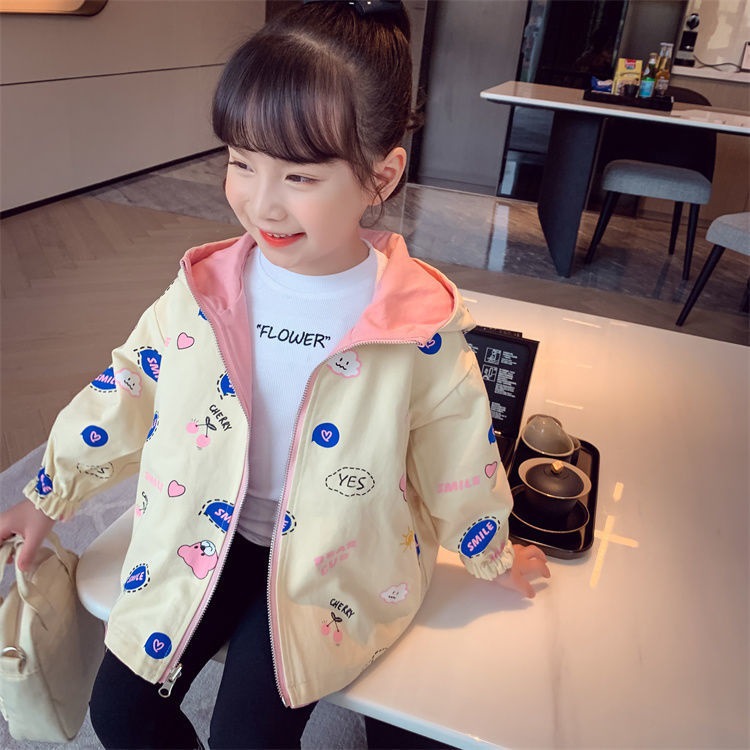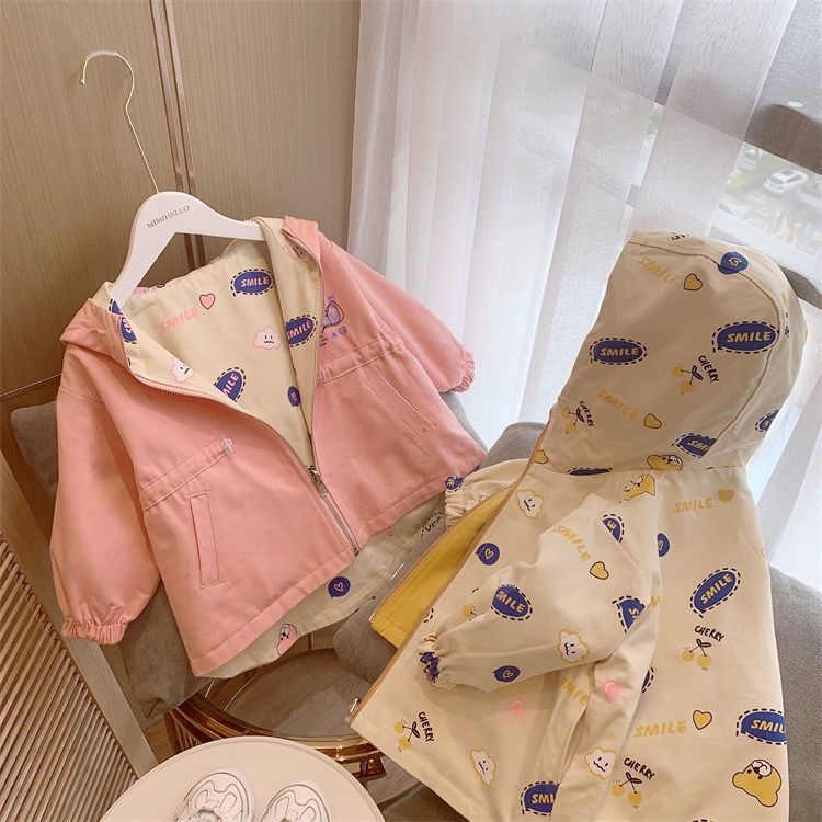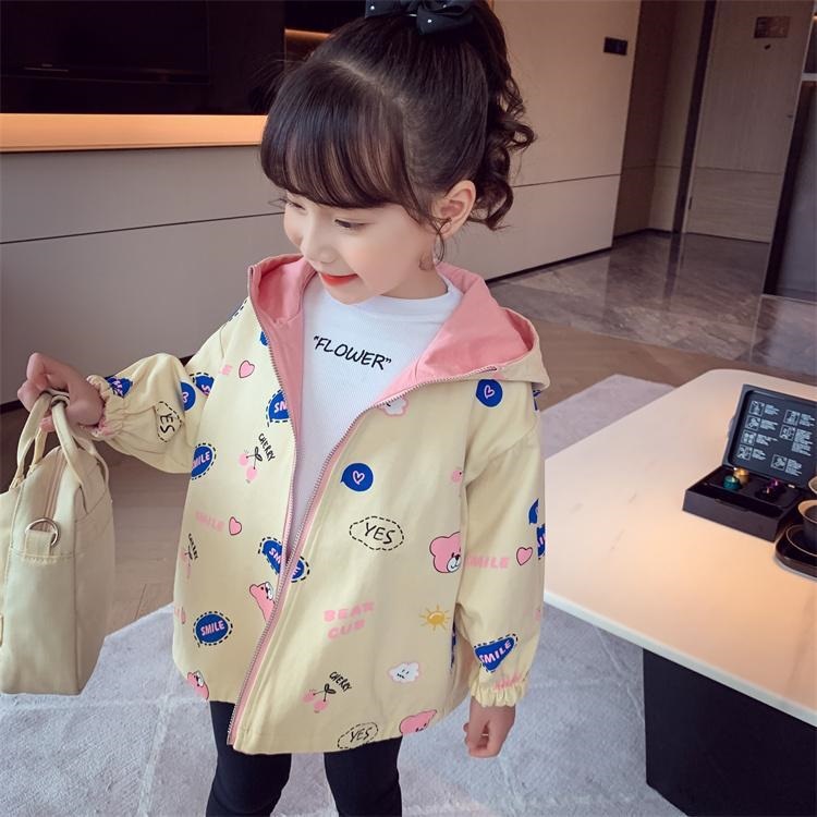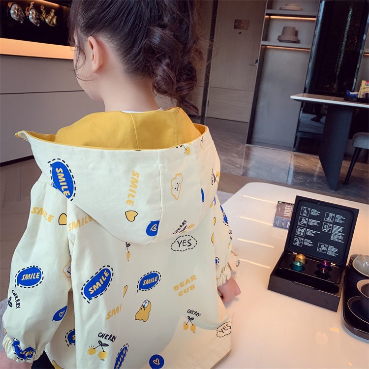 Верхняя одежда для девочек, новинка 2024, детская осенняя одежда, двусторонняя ветровка с героями мультфильмов, модная рубашка средней длины на молнии для маленьких девочек