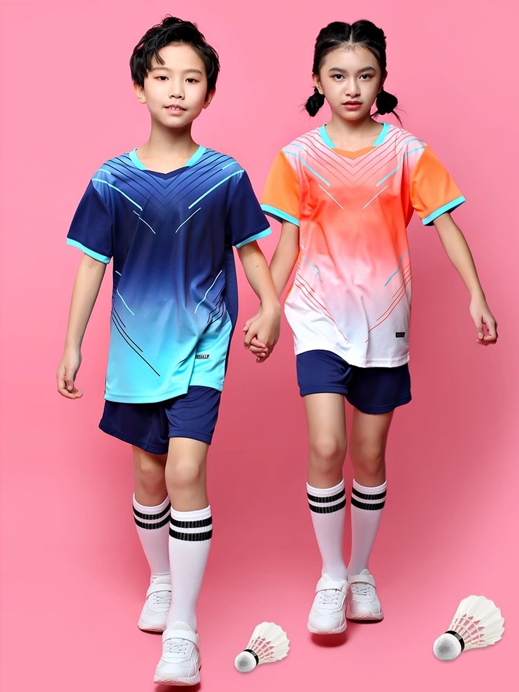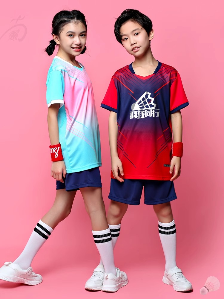 [Бесплатная доставка] Детская форма для бадминтона с короткими рукавами, тренировочный костюм для мальчиков и девочек, конкурс настольного тенниса, быстросохнущий спортивный костюм