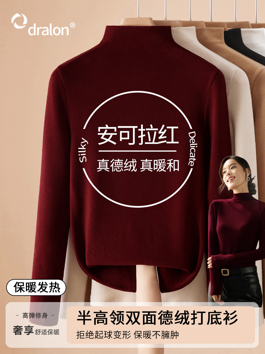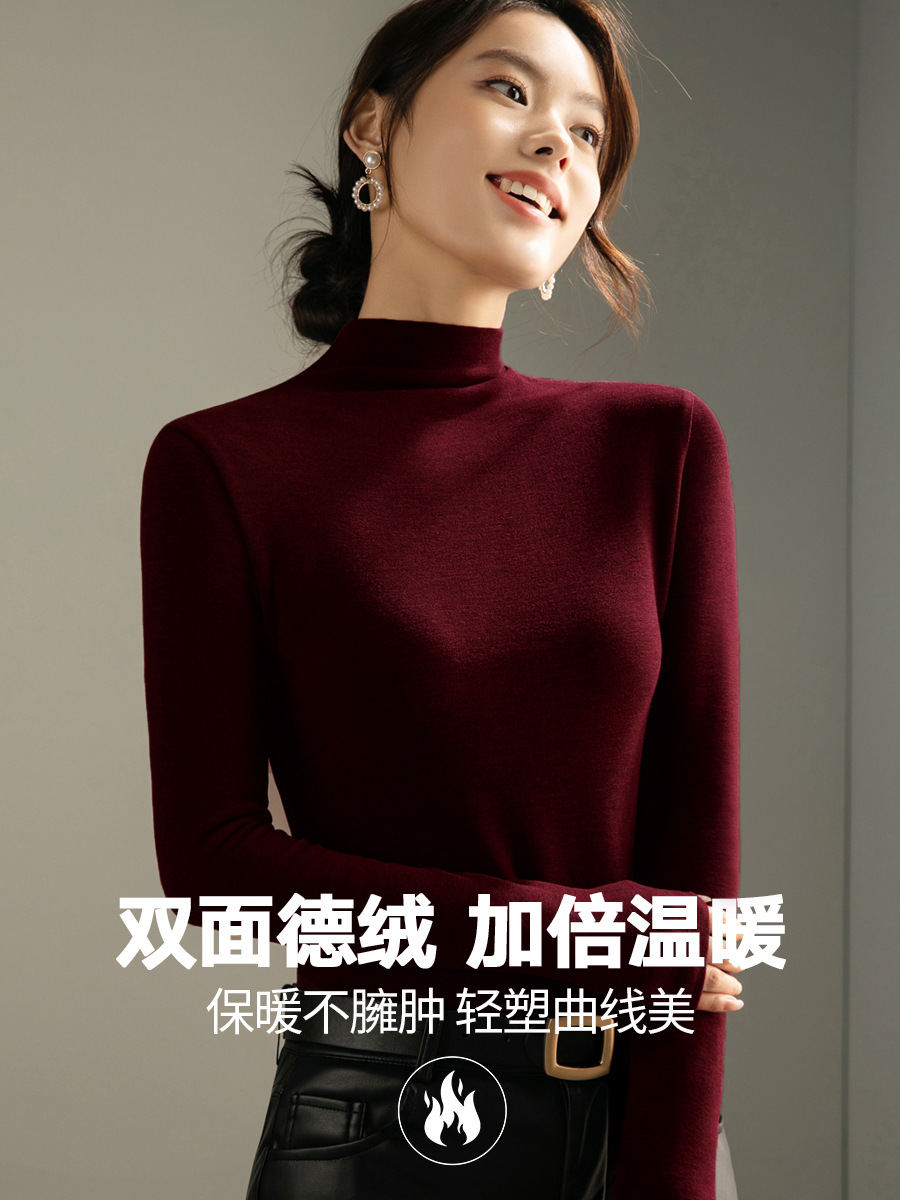 Термобелье женское двустороннее 2025 года, новая осенне-зимняя модель, на флисовой подкладке, утолщенное, модный теплый топ из ангоры красного цвета.