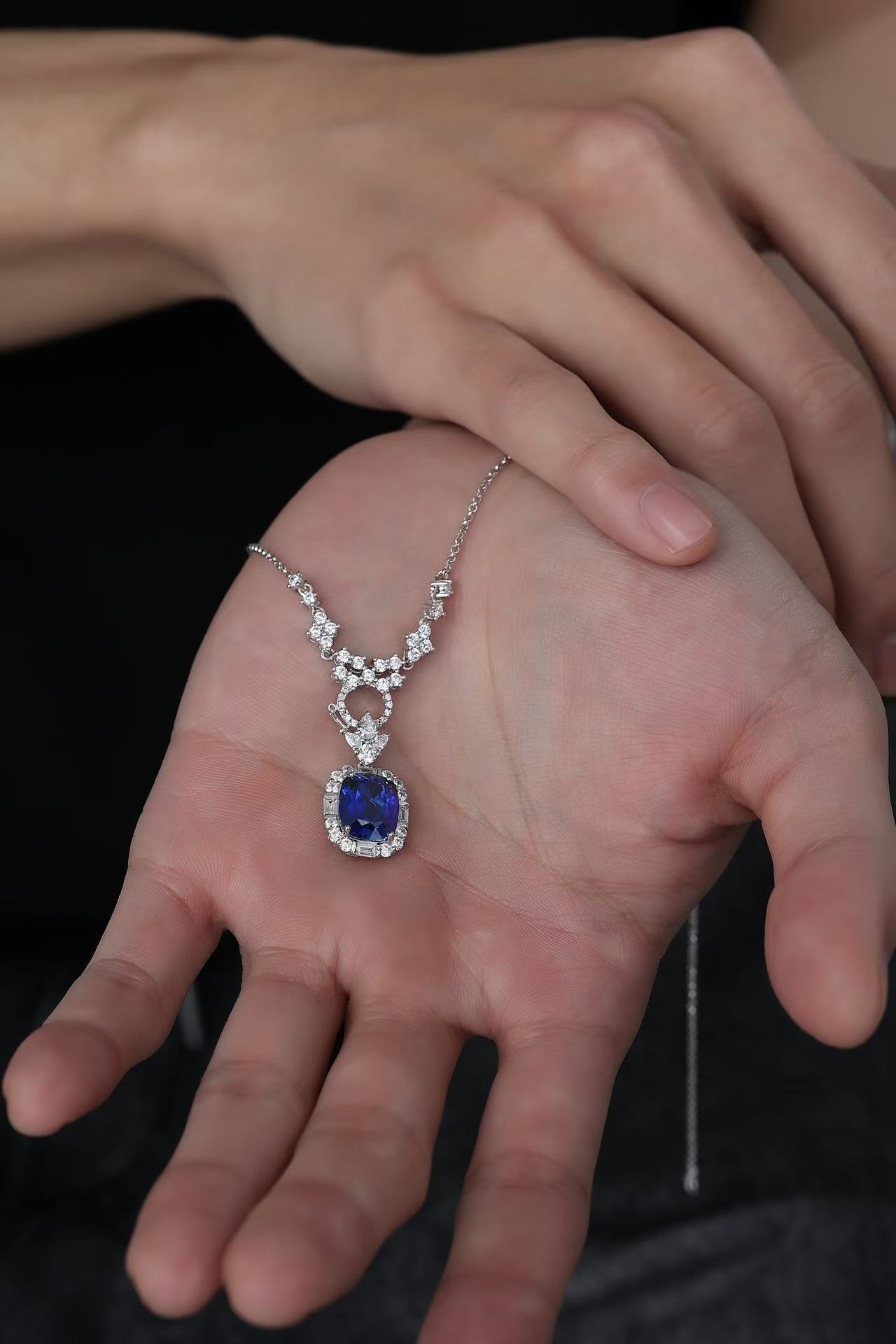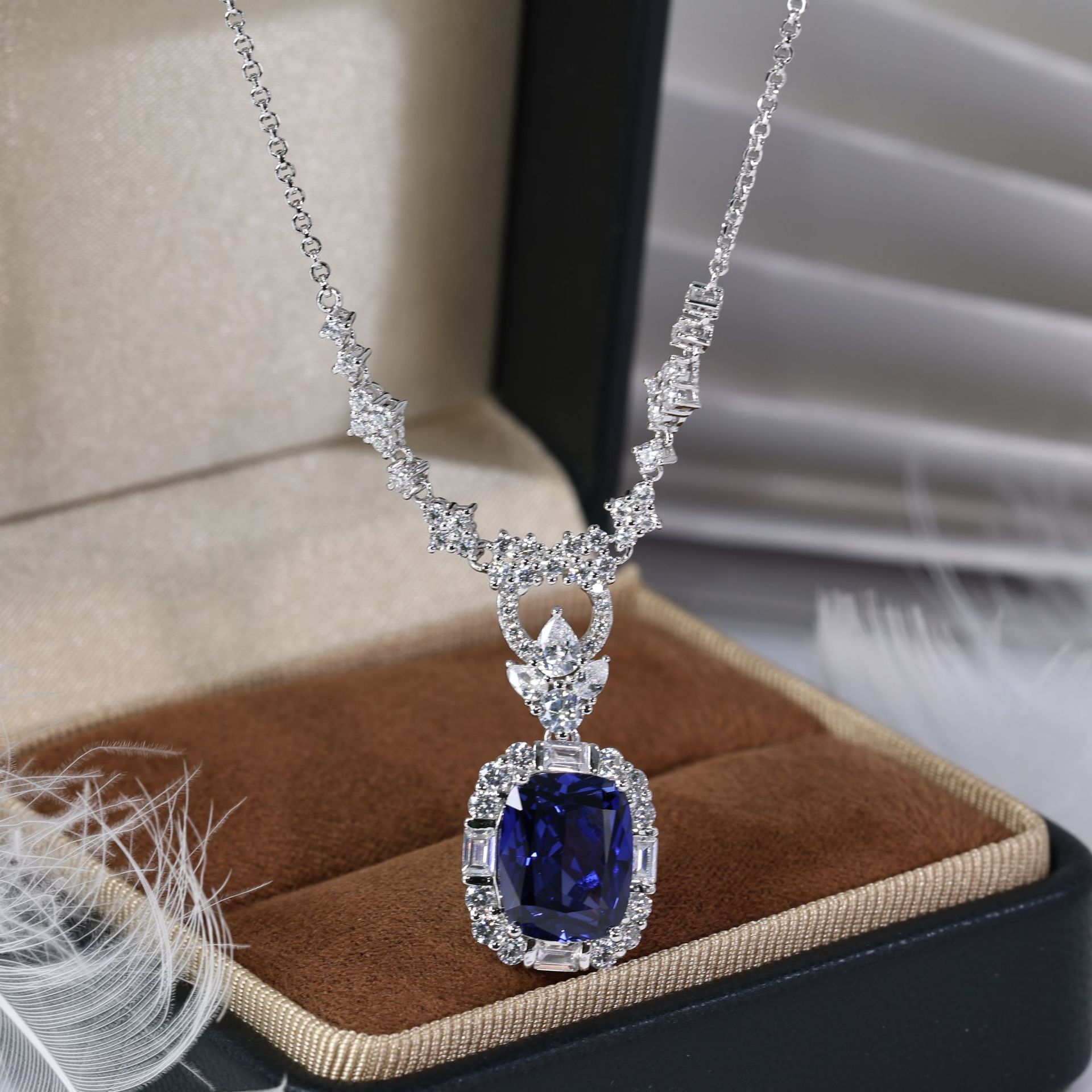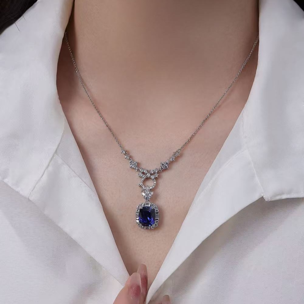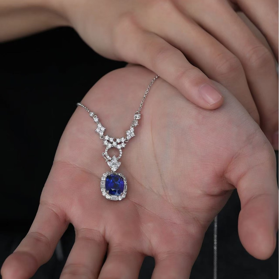 Ожерелье из культивированного сапфира 5,5 карата, королевский синий, роскошное, тяжелое, ручной работы, для вечерних нарядов, цепочка для свитера, серебро S925